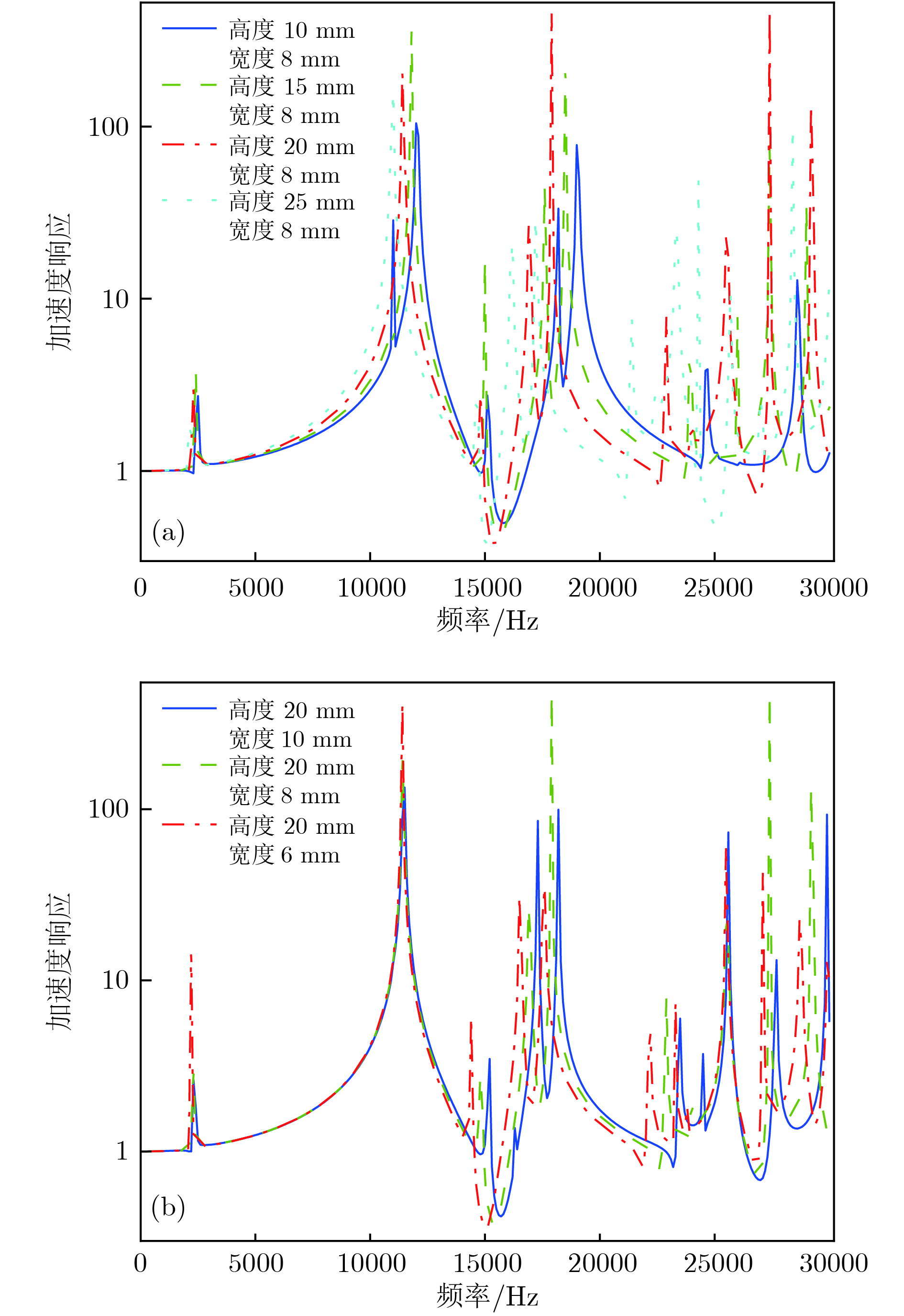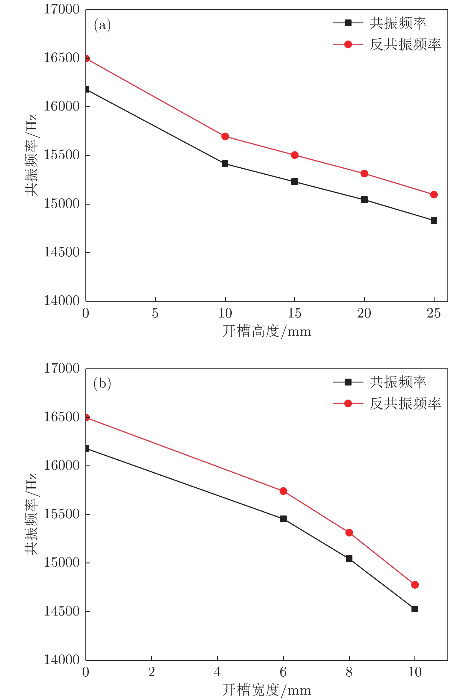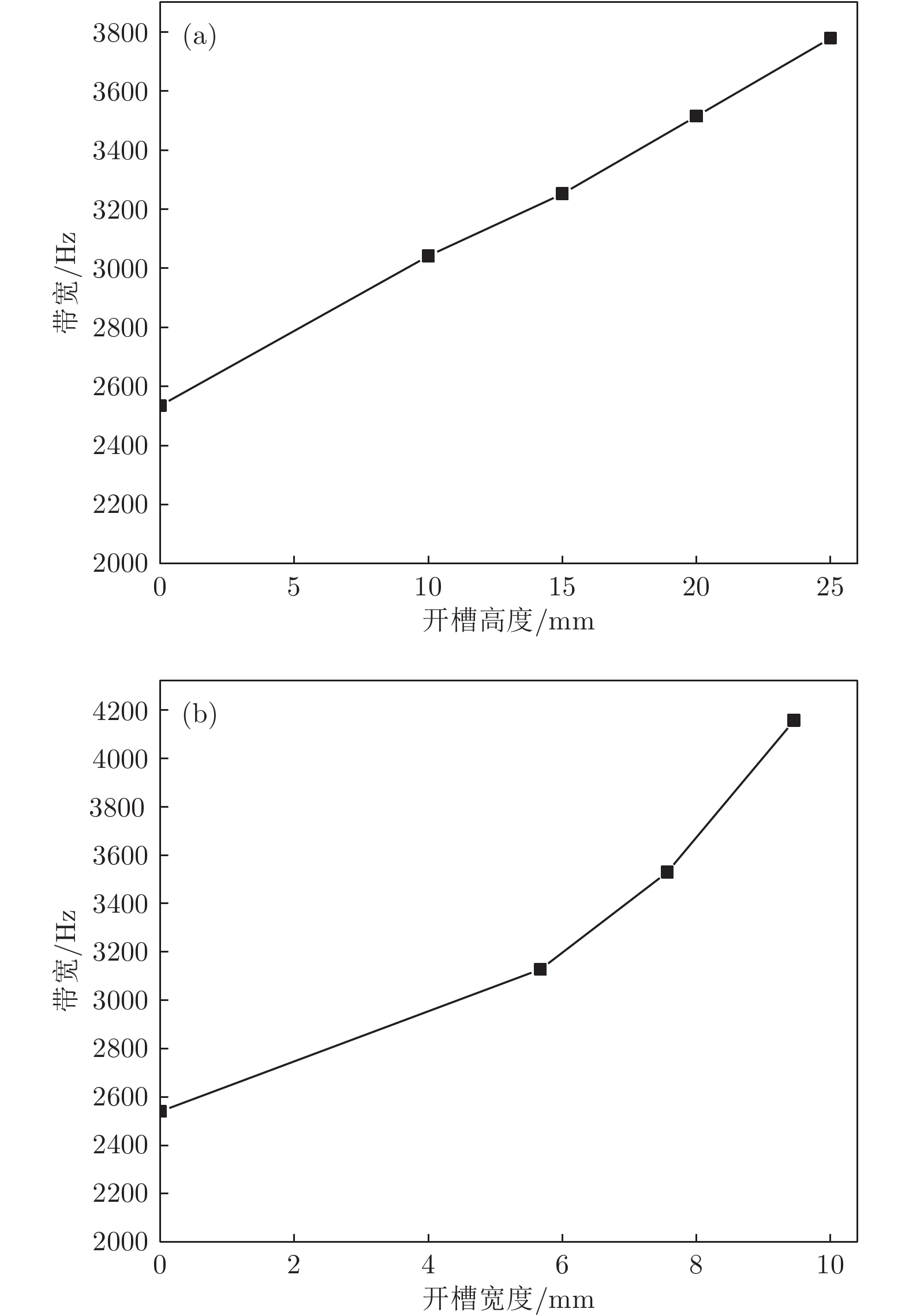 Sandwich transducers are extremely versatile, but when the lateral dimension is too large, the displacement of the radiating surface is uneven due to the coupling vibration. Due to the unique vibrational band gap characteristics of phononic crystal, vibrations in the bandgap range can be prohibited from propagating for infinite periodic structure or suppressed for finite periodic structure, which makes it widely used in the field of vibration suppression. In this paper, a two-dimensional phononic crystal structure is formed by processing periodically aligned grooves in the front cover of a large-sized sandwich transducer. Since the periodic grooves are formed in the radial direction, the radial waves cannot propagate, and thus the lateral vibration is suppressed. Subsequently, the finite element method is used to simulate the vibration transmission characteristic, resonance frequency and emission voltage response of a large-sized sandwich transducer based on two-dimensional phononic crystal. The effects of slot height and slot width on its bandgap, resonance and anti-resonant frequency, bandwidth, and displacement profile of the radiating surface are discussed. The results show that the phonon crystal structure can be optimized by using a large-sized sandwich transducer. The large-sized sandwich transducer based on two-dimensional phononic crystal has a lateral band gap. When the operating frequency of the large-sized sandwich transducer is within the band gap range, the two-dimensional phononic crystal structure can effectively suppress the lateral vibration, and the uniformity of the displacement distribution of the radiating surface of the transducer is improved. In addition, when the slot width is constant, the bandwidth of the large-sized sandwich transducer based on the two-dimensional phononic crystal increases as the slot height increases. Similarly, when the slot height is constant, the bandwidth of the large-sized sandwich transducer based on the two-dimensional phononic crystal increases as the slot width increases. The two-dimensional phononic crystal structure is processed in the front cover of the large-sized sandwich transducer, and the working frequency band of the large-sized sandwich transducer is effectively broadened.