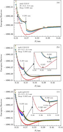 应用完全活动基自洽场方法, 结合 N电子价态微扰近似(NEVPT2), 对TiAl金属二聚体的基态和若干最低电子激发态的势能曲线进行了计算. 完全活动空间由Al的3个价电子(3s 23p 1)轨道和Ti的4个价电子(3d 24s 2)轨道构成, 计算基组选用Karlsruhe group的价分裂全电子基组def2- nZVPP( n= T, Q). 在确认TiAl的基态为四重态的基础上, 在核间距 R= 0.200—0.500 nm范围内, 扫描获得了TiAl基态和最低二个激发态的完整势能曲线, 并对电子态进行了标识, 发现在0.255 nm附近存在电子态结构的“突变”. 在 R> 0.255 nm区域, 基态和两个激发态分别为X 4Δ, A 4Π和B 4Γ; 在 R< 0.255 nm区域, 基态仍为X 4Δ, 但两个激发态变为A' 4Φ和B' 4Π, 且存在激发态简并解除的现象. 基于NEVPT2修正后的势能曲线, 获得了TiAl电子态的平衡核间距、束缚能、激发能、跃迁偶极矩等特征参数, 并解释了实验上观测不到TiAl电子跃迁光谱的原因. 电子激发态存在“突变”的结构特征, 可为分析理解TiAl合金在室温下的脆性问题提供参考.The potential energy curves (PECs) of the low-lying electronic states of TiAl are calculated with the complete active space self-consistent field (CASSCF) method combined with the N-electron valence perturbation theory (NEVPT2) approximation. The complete active space is mainly composed of the (3s 23p 1) valence orbital of Al and (3d 24s 2) valence orbital of Ti. Moreover, the valence splitting all-electron basis set def2- nZVPP ( n= T, Q) proposed by Karlsruhe group is used in the calculation. On the basis of confirming that the ground state of TiAl is a quadruple state, the PECs of the ground state and the lowest two excited states of TiAl are obtained in a range of nuclear distance Rof 0.200–0.500 nm, and the electronic states are identified. It is found that there is a “break” of the electronic structure near R= 0.255 nm. In the R> 0.255 nm region, the ground state and the two excited states are X 4Δ, A 4Π and B 4Γ respectively; in the R< 0.255 nm region, the ground state is still X 4Δ, but the two excited states become A' 4Φ and B' 4Π, and the degeneracy of the excited state tends to be eliminated. Based on the PECs of TiAl obtained by the dynamic correlation correction with NEVPT2, the characteristic parameters of three low-lying quadruple electronic states (such as equilibrium nuclear distance, binding energy, adiabatic excitation energy) and transition dipole moment, are obtained, and these parameters are used to explain the reason why the electronic transition spectrum of TiAl is not observed experimentally. The characteristic of “break” in the electronic state structure also provides a meaningful reference for analyzing and understanding the brittleness of TiAl alloy at room temperature.