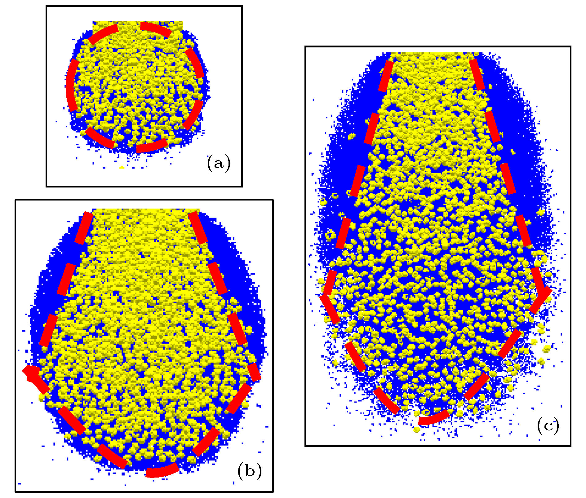 松散体结构松散, 是崩塌、滑坡等地质灾害的主要物源, 其致灾范围受含石量和坡度等因素影响较大. 传统的对松散体滑动堆积特性的研究多为宏观或定性分析, 对细观的内在运动机理研究较少. 本文采用离散元方法定量分析了含石量和坡度变化对松散颗粒滑动后的冲程、堆积宽度、最大厚度、堆积面积、堆积轮廓形状、堆积区体积、静堆积角和累积质量等堆积特征值的影响, 并从颗粒的能量和接触力角度探讨了松散体灾变过程中的运动和堆积特征, 以揭示颗粒之间的相互作用机理. 研究结果表明: 含石量在0—70%范围增加时, 冲程、堆积宽度和堆积面积均先增大后递减, 最终累积质量减小; 坡度在30°—65°范围增大时, 冲程、堆积宽度、堆积面积和累积质量均会增大, 最大厚度近似线性减小, 静堆积角近似二次函数减小. 此外, 粗、细颗粒在堆积区的体积占额存在一个临界距离 L c, 当距坡脚线距离 L< L c时, 细颗粒大于粗颗粒所占体积; 当 L> L c时, 细颗粒小于粗颗粒所占体积.Loose materials has loose structure and is the main source of geological disasters such as collapses and landslides. Its hazard range is greatly affected by factors such as stone content and slope. Traditional studies on the sliding and accumulation characteristics of loose materials were mostly macro or qualitative analysis. There is little research on the micro internal motion mechanism. In the present study, discrete element method was used to quantitatively analyze the influence of stone content and slope variation on the characteristic values of loose particles such as stroke, accumulation width, maximum thickness, accumulation area, accumulation contour shape, accumulation volume, static accumulation angle and the cumulative mass. In the meanwhile, the movement and accumulation characteristics of the loose materials during the catastrophe process were explored from the aspect of energy and contact force of the particles, so as to reveal the interaction mechanism between the particles. The results showed that: When the stone content increased in the range of 0 to 70%, the stroke, accumulation width and accumulation area increased firstly and then decreased, and in the end the cumulative mass decreased. As the slope increased from 30° to 65°, the stroke, accumulation width, accumulation area and accumulation mass increased; the maximum thickness decreased approximately linearly, while the static accumulation angle had a decrease similar to quadratic function. In addition, there was a critical distance L cfor the volume share of coarse and fine particles in the accumulation area. When the distance from the toe line was L< L c, the fine particles were larger than the volume of the coarse particles; when L> L c, the fine particles were smaller than the volume occupied by coarse particles.