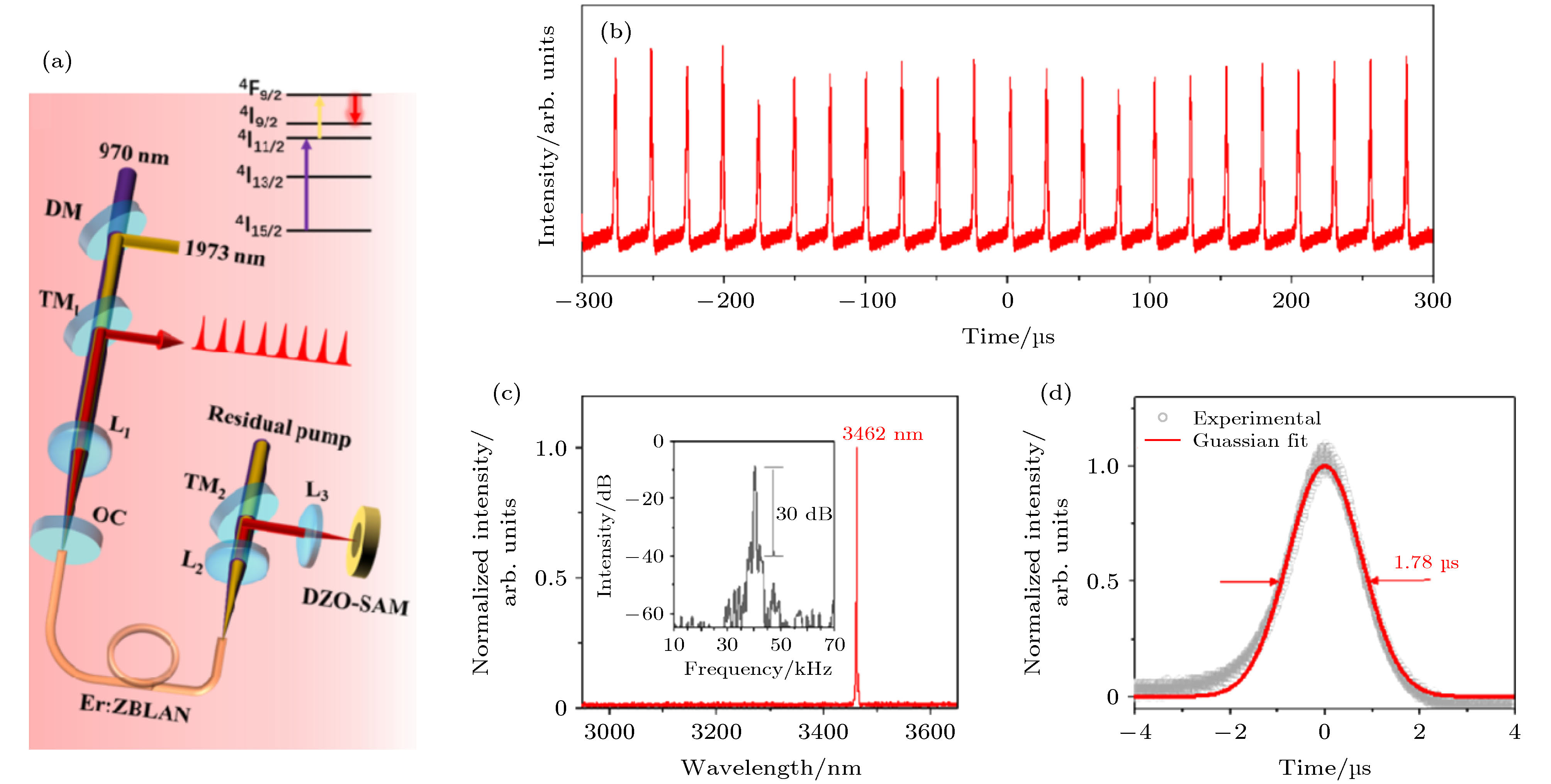 脉宽重频 1.0 μm MoO3–x 光纤(ML) 130 ps 17 MHz[72] Cu2–xS 固体(ML) 7.8 ps 84.17 MHz[67] TiN 固体(QS) 0.25μs 590 kHz[74] Ag 固体(ML) 27 ps 6.5 GHz[64] 1.5 μm Cu2–xS 光纤(ML) 295 fs 7.28 MHz[67] TiN 光纤(ML) 763 fs 8.19 MHz[74] ITO 光纤(ML) 593 fs 16.62 MHz[70] Au 光纤(ML) 12 ps 34.7 MHz[75] Cu-Sn-S 光纤(ML) 923 fs 4.99 MHz[76] 2.0 μm IZO 固体(QS) 3.61 μs 17.32 kHz[71] Au 光纤(QS) 2.4 μs 100.5 kHz[63] 2.8 μm Cu2–xS 光纤(QS) 0.75 μs 90.7 kHz[67] IZO 固体(QS) 0.56 μs 157.63 kHz[71] Au 固体(QS) 533 ns 53.1 kHz[62] 3.6 μm IZO 固体(QS) 1.78 μs 56.2 kHz[71] -