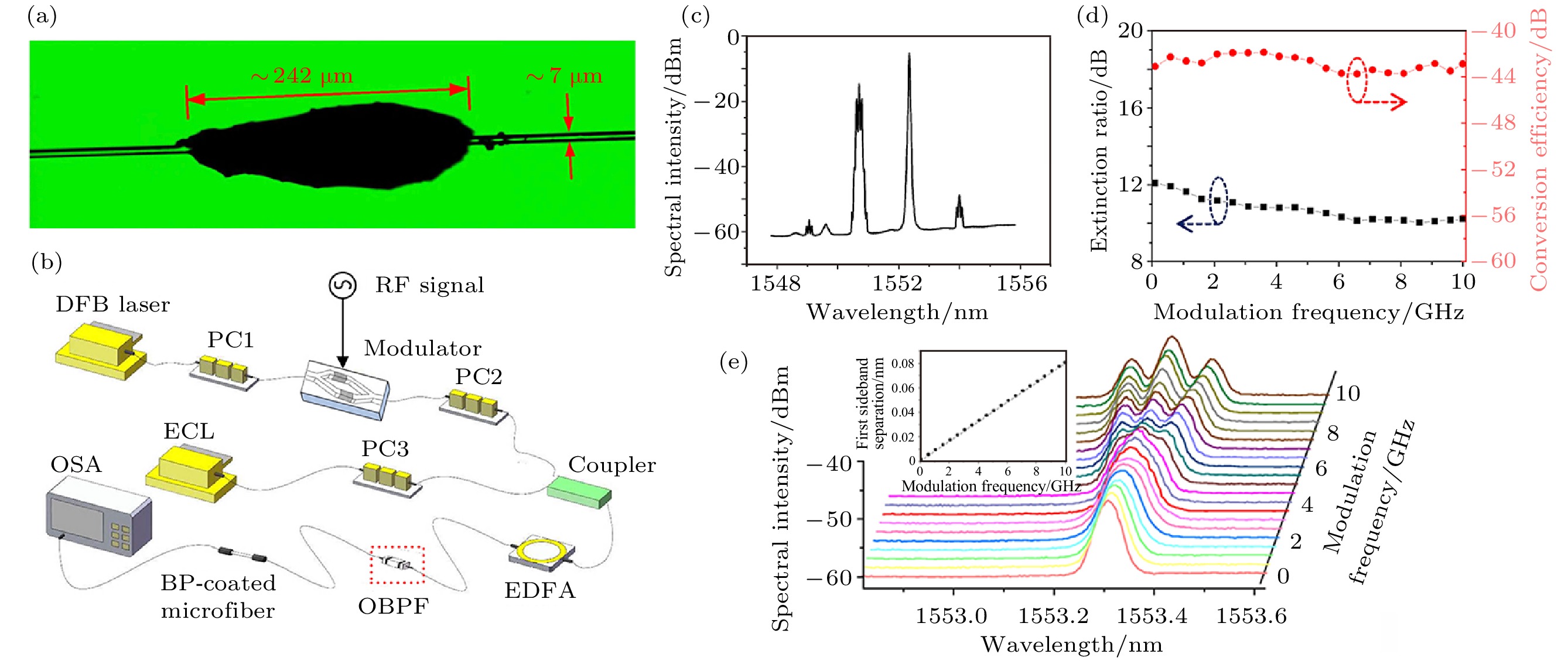 (1310 nm, 1550 nm, 1610 nm)— — — [125] BP MF ~0.2 ns ~0.4 ns — 4.7 — — — [116] Kerr effect graphene MF 3 μs 100 μs — — — — — [118] bismuthine MF — — 22 — — — — [123] Topological insulators MF — — 14 — 0.0125 — — [124] BP MF — — 26 — 0.0081 — — [122] antimonene MF — — 12 — 0.0071 126 FWM bismuthine MF — 17 — — -65 4 [123] Topological insulators MF — — — — — -34 6.4 [124] BP MF — — 10 — — -60 3 [122] antimonene MF — — 13 — — -65 5.5 [126] MXene MF — — 13 — — -59 5 [127] graphene MF — — 13 — — -59 5 [128] 注: MF, microfiber. SA, saturable absorption. FWM, four-wave-mixing. -