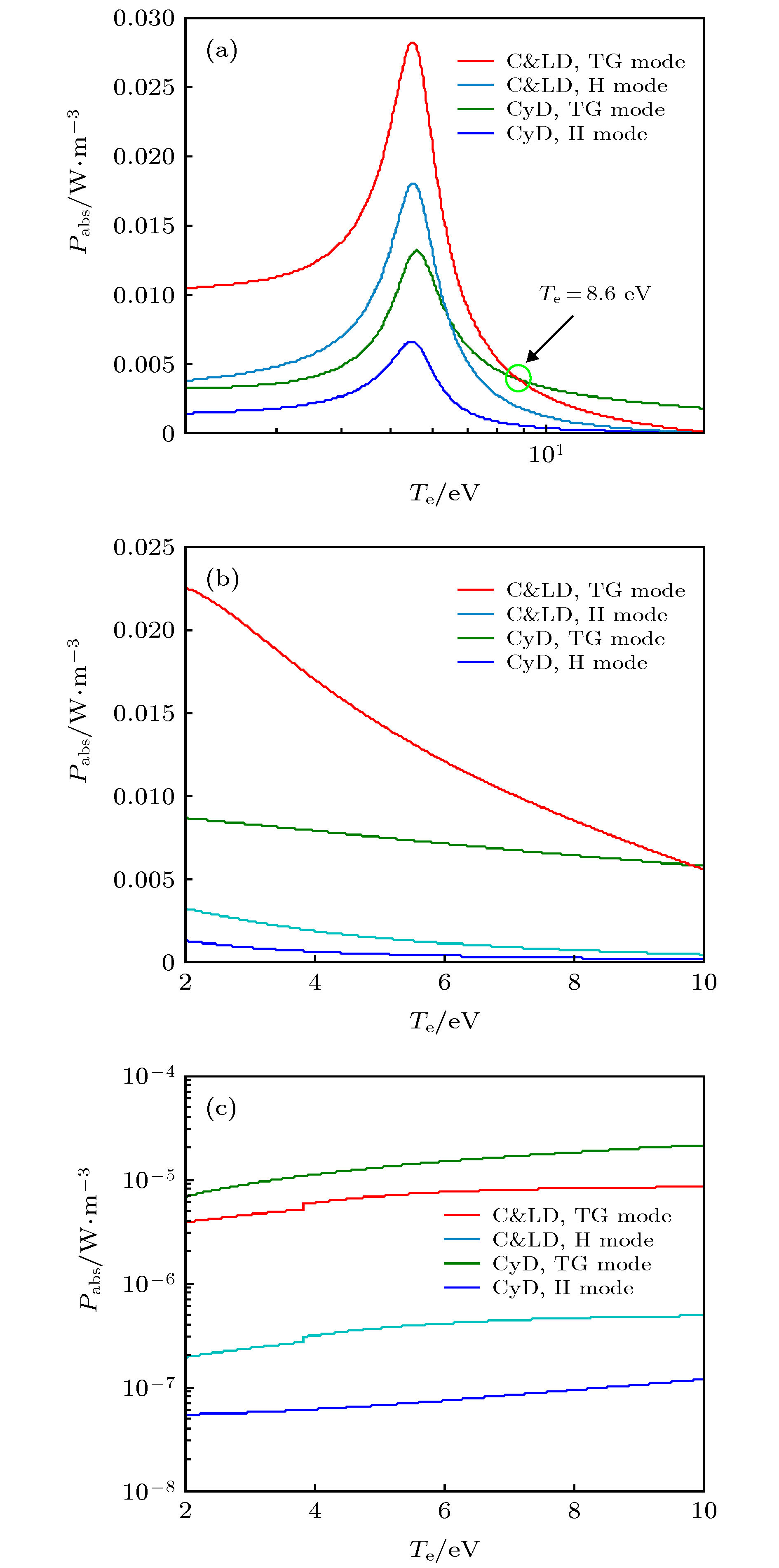 e∈ (3 eV, 5 eV), the energy depositions induced by the collisional damping and Landau damping of the TG wave are dominant for different electron temperature ranges, which implies that different damping mechanisms have different heating intensities for electrons. Under current parameter condition, compared with the