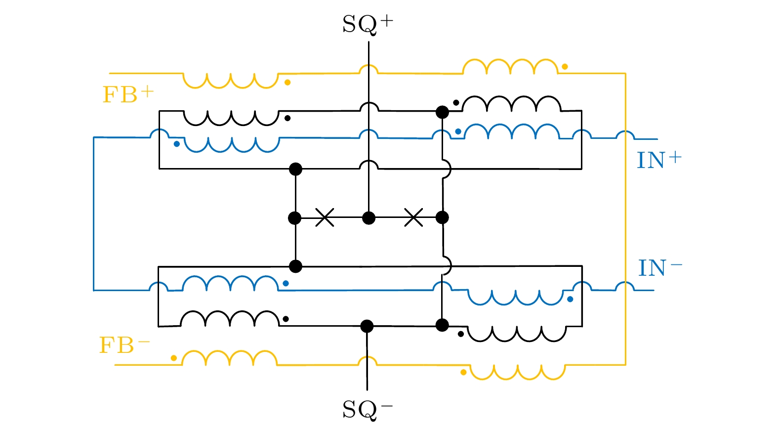 0, the mutual inductance between SQUID loop and feedback coil is 23 pH. The second-order gradiometric cross-coupled SQUID current sensor has a white flux noise of 2 μ
