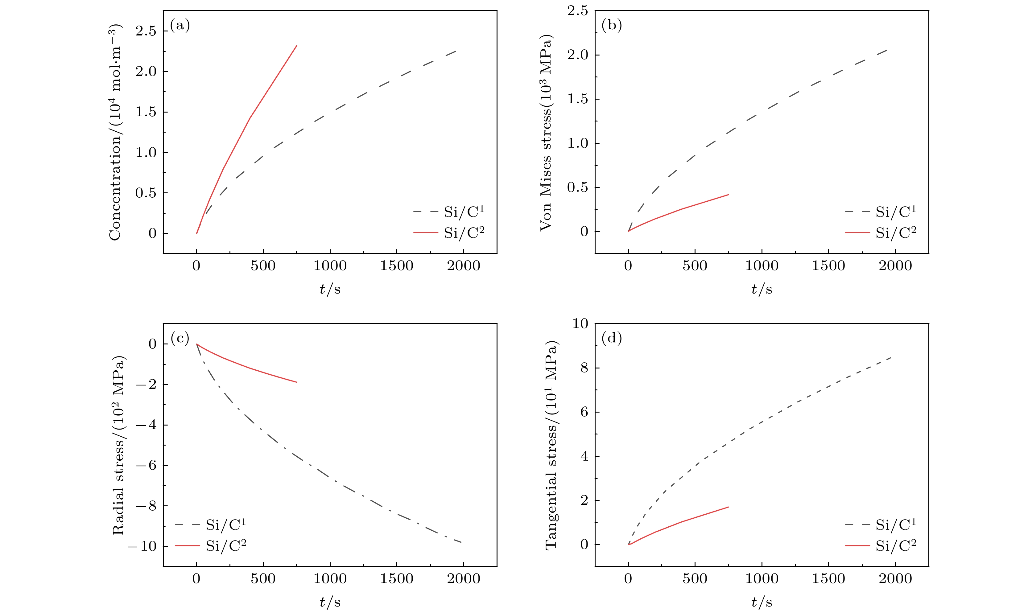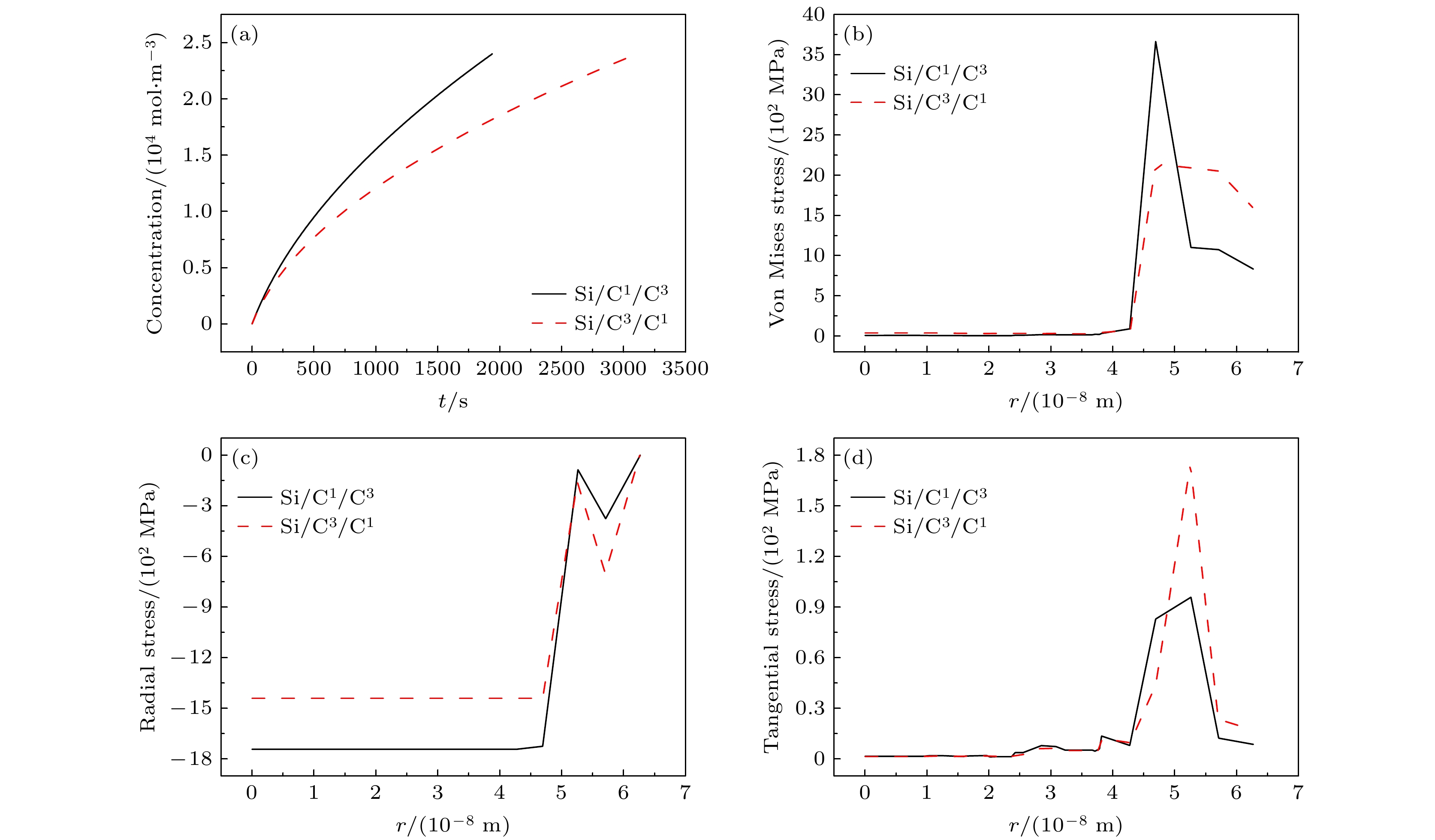 Silicon is considered as a first candidate for ideal anode material of the next-generation lithium-ion battery due to its high theoretical capacity to meet the demand for higher energy density. On the other hand, high theoretical capacity is accompanied by massive volume expansion, which gives arise to high stress and crack and pulverization of anode particles. Finally, the capacity of the battery fades gradually. While some kinds of factors contribute to the failure of silicon-based electrodes, the most important one is the diffusion-induced stress generated in silicon-based electrode particles. The cyclic processes of lithiation and delithiation are accomplished by the intercalation into and deintercalation from the silicon particles of lithium ions. During the cycle, physical processes and chemical processes, such as diffusion of lithium ions, phase transition, and volume expansion, take place simultaneously, making the cyclic process a strong-coupling problem to be addressed. For example, the intercalation of lithium ions into the electrode results in volume expansion and phase transition of anodes, thereby inducing stress; in turn, stress affects the diffusion process of lithium ions. Aiming to probe this problem, with the finite deformation hypothesis, an electrochemical-mechanical coupling model is used to study the variation and distribution of concentration and stress of core-shell structure during lithiation. And more importantly, great emphasis is put on the optimal design of core-shell structure. The numerical results show that the shell is useful in prohibiting the volume expansion of silicon core, but large compressive radial stress in silicon core may cause the core and shell to be detached, while the tangential tensile stress at the core-shell interface leads the shell to fracture. To improve the electrochemical and mechanical performance and hence lengthen the cycle life of lithium-ion batteries, two kinds of optimal designs are considered: 1) single-layered core-shell structure and 2) double-layered core-shell structure. The numerical results suggest that the softer shell material is suitable for a single-layered core-shell structure and the inner-soft & outer-hard design is optimal for the double-layered core-shell structure. Furthermore, the effects of Young's modulus of the inner and outer carbon layer materials on the chemical and mechanical performance of anode are explored. The simulation shows that the optimal Young's modulus of the inner shell is less than 10 GPa, and that of the outer shell is not higher than 70 GPa. This research is helpful in designing and optimizing the silicon-based anode electrodes of lithium-ion batteries.