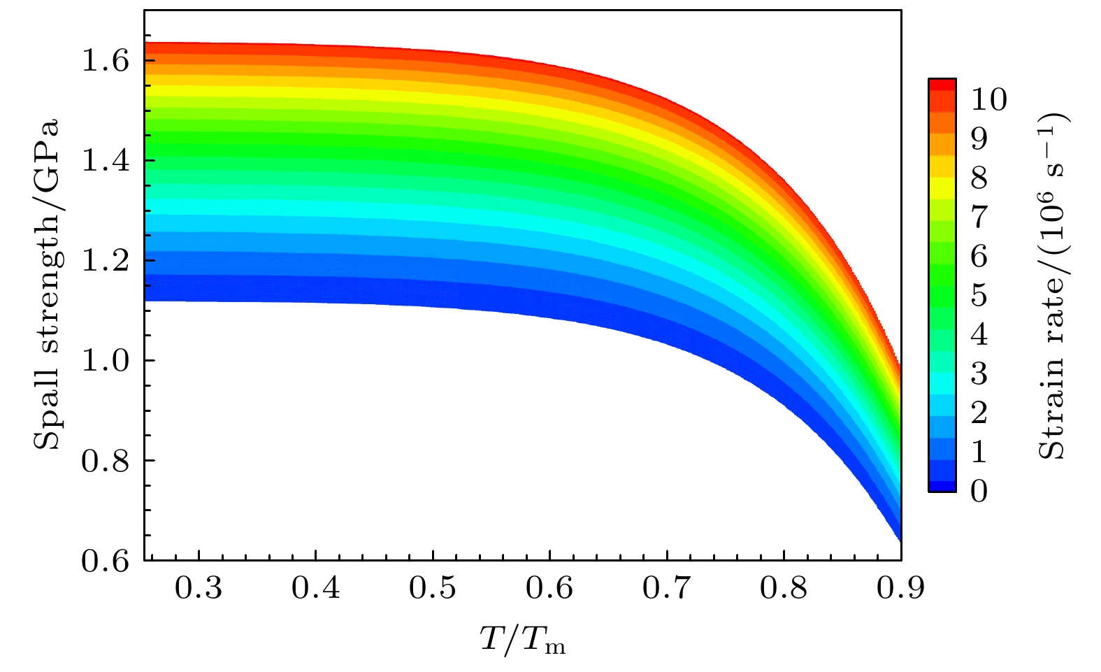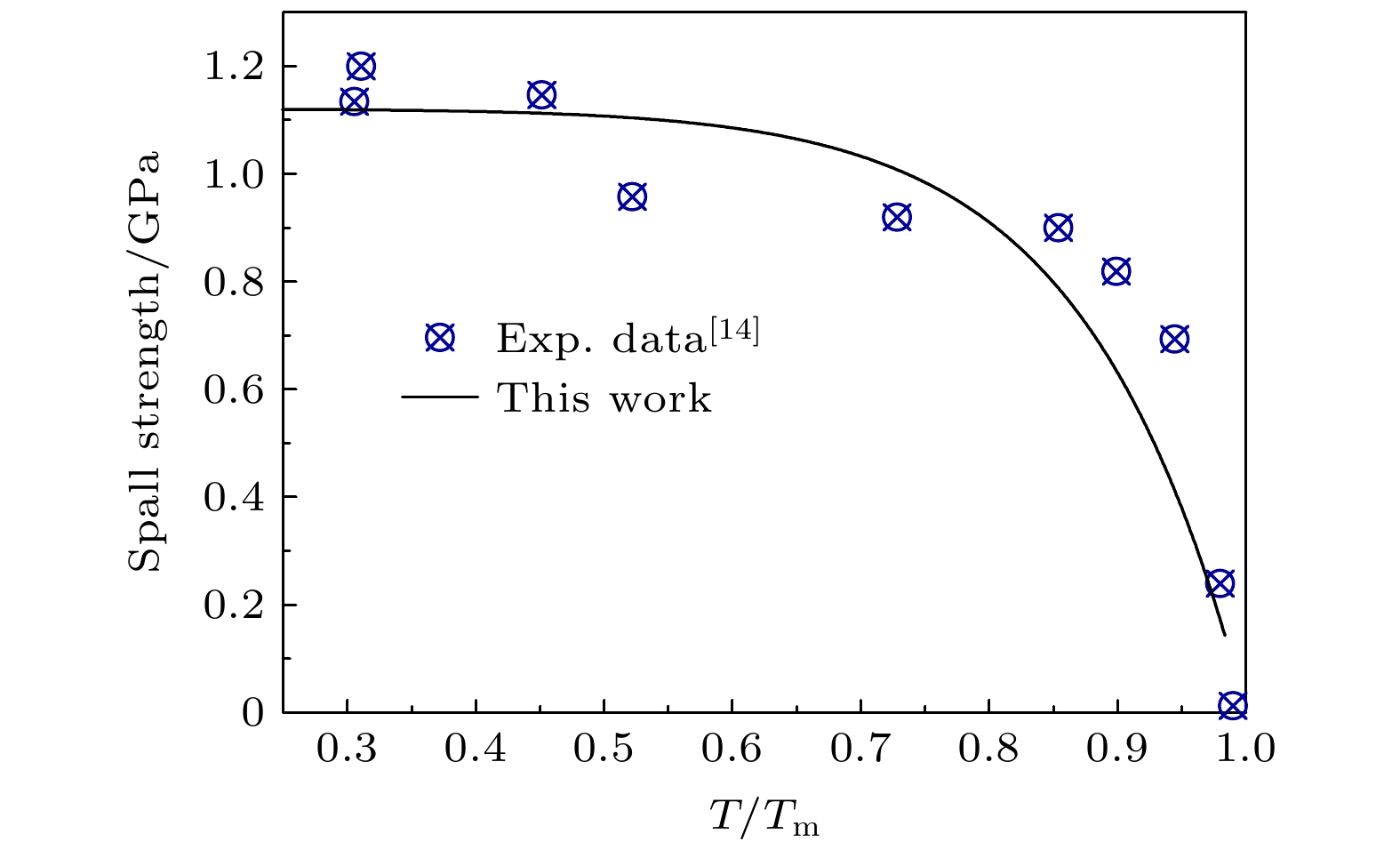 When a shockwave, which can be generated by high velocity impact or explosive detonation, reflects from the free surface of a metal, it usually creates tensile stress inside the metal. While the tensile stress is large enough, voids nucleation, growth and coalescence happen inside the metal, causing the metal to spall. As one of the main contents of the spallation damage research, the spallation strength, which is often characterized by features of the free surface velocity history measured in spallation experiments, represents the maximum tensile stress that the material can withstand, and is actually a complex interaction among several competing mechanisms. Optimizing the spallation strengths of metals is important for their applications in the aerospace, automotive, and defense industries, and can be achieved by using the advanced manufacturing strategies, if we can know better the meaning and present analytic model of the spallation strength of metal. A large number of experiments show that the spallation strength of ductile metal is strongly dependent on the tensile strain rate, grain size and temperature of material. Based on the analysis of early spallation evolution and influence of grain size and temperature on the material, a simple analytic model of spallation strength is presented in this paper, which takes into account the effects of strain rate, grain size and temperature in materials. The applicability of this model is verified by comparing the calculated results from the model with the experimental results of spall strength of typical ductile metals such as high purity aluminum, copper, and tantalum.