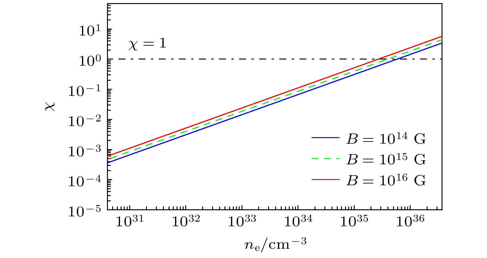 • 当前脉冲星领域一个重要的研究热点是磁星. 本文在朱翠等(Zhu C, Gao Z F, Li X D, Wang N, Yuan J P, Peng Q H 2016 Mod. Phys. Lett. A 311650070 )工作的基础上, 重新研究了磁星超强磁场下( $B\gg B$ cr, B cr是电子的量子临界磁场)电子朗道能级的稳定性及其对电子压强的影响. 首先, 对弱磁场极限下( $B\ll B$ cr) 中子星内部电子压强进行必要的回顾; 然后, 通过引入电子朗道能级稳定性系数 g ν和Dirac- δ函数, 推导出在超强磁场下修正的相对论电子压强 P e的表达式, 给出表达式适用条件: 物质密度 ρ≥ 10 7g·cm –3B crB< 10 17G (1 G = 10 –4T). 超强磁场通过修正相对论电子的相空间, 提高了电子数密度 n e, 而 n e的增加意味着 P e的增加. 利用修正的电子压强表达式, 讨论了超强磁场下费米子自旋极化现象、电子磁化现象以及超强磁场对物态方程的修正. 最后, 本文的结果与其他类似工作进行对比, 并对未来的工作进行展望. 本文的研究将为磁星以及强磁化白矮星的物态方程和热演化的探索提供极有价值的参考, 将为普通射电脉冲星等离子磁层数值模拟、高磁场脉冲星辐射机制等相关研究提供有用的信息.