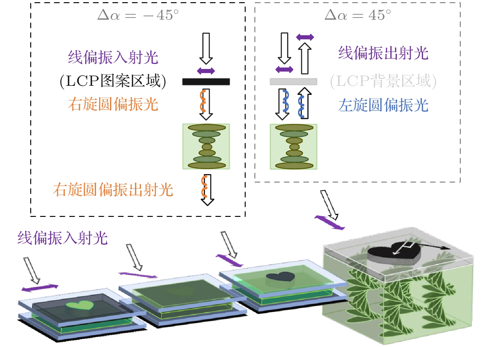 Modern anti-counterfeiting technology can effectively suppress and combat forgery and counterfeiting behaviors, which is of great significance in information security, national defense and economy. However, the realization of multi-dimensional, integrated, difficult-to-copy and easy-to-detect optical anti-counterfeiting devices is still a challenge. In this paper, a multi-dimensional and polarization-dependent anti-counterfeiting device with structure color is designed, which is composed of patterned liquid crystal polymer (LCP) nematic layer and thermotropic cholesteric liquid crystal (TLC) layer. It has the advantages of displaying and hiding polarization states, wide color tuning range, convenient operation, high integration and security. For incident light with a specific polarization state, the patterned nematic phase LCP layer can carry out regionalized phase editing and polarization state modulation, while the TLC layer can selectively reflect the incident light. Therefore, a patterned structural color security label is subtly realized. The anti-counterfeiting device can realize the display, hiding, color adjustment and image/background conversion of patterns by adjusting the polarization direction of incident light. In addition, the TLC layer in the device can meet the application requirements of the anti-counterfeit device at different environmental temperatures through the flexible design of the system weight ratio. Furthermore, the device can be easily heated by body temperature, realize dynamic real-time wide-spectrum color modulation and reversible pattern erasure, and further enhance its security dimension and security. The multi-polarization-type anti-counterfeiting device has three-dimensional anti-counterfeiting efficacy. The first dimensional anti-counterfeiting efficacy is achieved by the thermochromic liquid crystal layer. The thermochromic liquid crystal layer has no reflection color outside the operating temperature range of TLC material, and the entire device displays black background. The second and the third dimensional anti-counterfeiting efficacy are related to the polarization state of the incident light and the linear polarization direction, respectively. Only when the incident light is linearly polarized light and its polarization direction makes an angle of 45° or –45° with respect to the optical axis of the liquid crystal, will the device show the designed pattern. Consequently, our proposed anti-counterfeiting device is expected to provide a new idea for developing the anti-counterfeiting field.