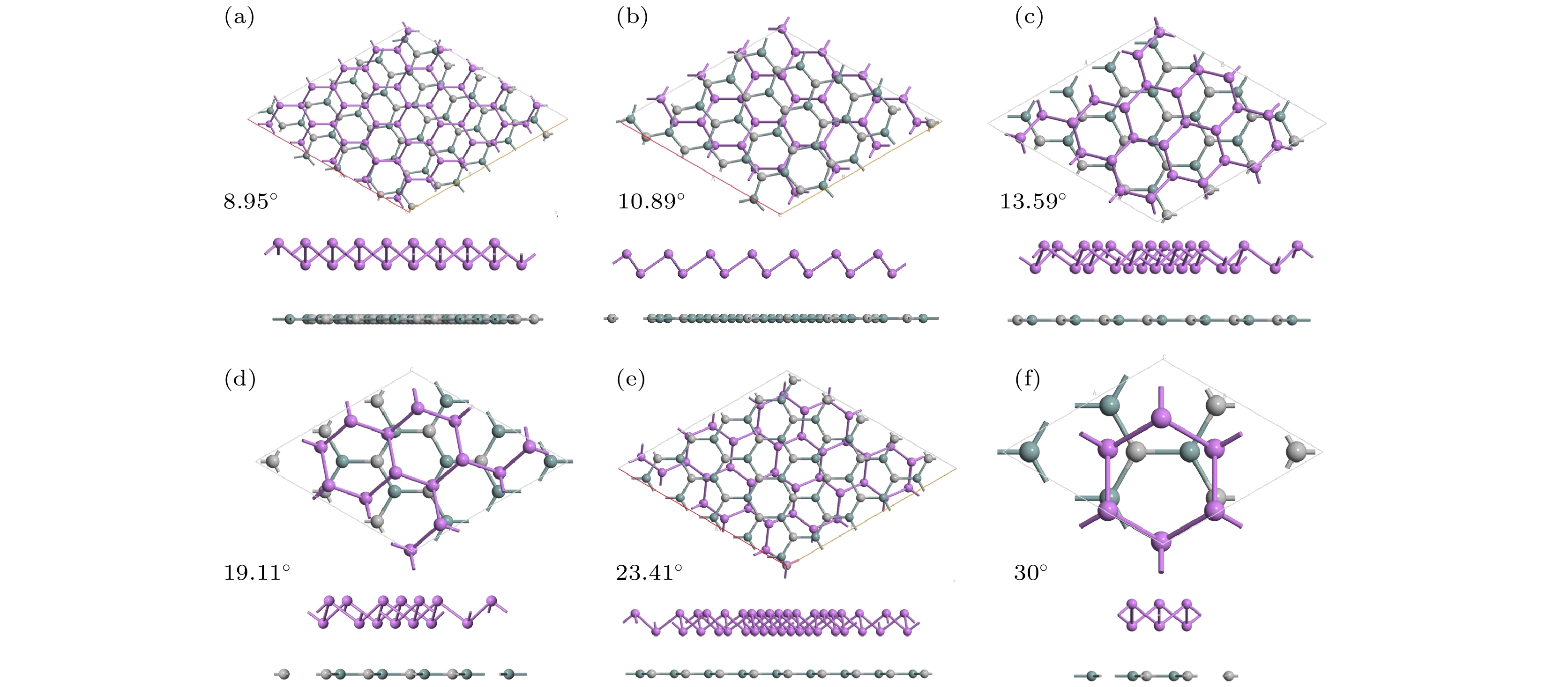 The discovery of novel properties in twisted bilayer graphene has opened up new avenues of research in physics and materials science, making the twistronics a new research hotspot. In this paper, based on two-dimensional tin-based materials and antimonene monolayers, six types of Sb/SnC two-dimensional van der Waals heterostructures (vdWH) with different interlayer twist angles are constructed, and their optoelectronic properties and applications are studied by first-principles calculations. All modeling and calculations are performed using the density functional theory (DFT) software Quantum-ATK. The results show that the Sb/SnC vdWHs with six different interlayer twist angles have various band gaps, and when the interlayer twist angles are 10.89°, 19.11°, 23.41°, and 30°, the Sb/SnC vdWH exhibit a type-I band edge alignment, while at 8.95° and 13.59°, they present a type-II band structure. The results of the orbital-projected band structures of the Sb/SnC vdWHs reveal that the variation in interlayer twist angles changes the atomic stacking in the heterostructures, thereby modifying orbital coupling and further tuning the electronic structure of the heterostructures. Additionally, the calculated absorption spectra indicate that comparing individual Sb and SnC monolayers with Sb/SnC vdWHs, the latter’s absorption coefficient r is significantly enhanced in the visible light region, and the optical absorption characteristics of the heterostructures with different interlayer twist angles vary markedly. In terms of applications, as materials for solar cells, the Sb/SnC vdWHs with interlayer twist angles of 8.95° and 13.59° exhibit photovoltaic conversion efficiencies of 17.48% and 18.59%, respectively; as photocatalysts for the complete water splitting, the Sb/SnC vdWH with an interlayer twist angle of 8.95° can catalytically decompose water across a pH range of 0–2, while a twist angle of 13.59° confines its catalytic activity to a pH value between 0 and 1. Therefore, Sb/SnC van der Waals heterostructures have special rotation angles and have multifunctional application prospects in the fields of solar energy and photocatalysis. More importantly, our research demonstrates that in addition to traditional methods such as strain, doping, and defects, adjusting the interlayer twist angle provides a new degree of freedom for manipulating the optoelectronic properties of materials.