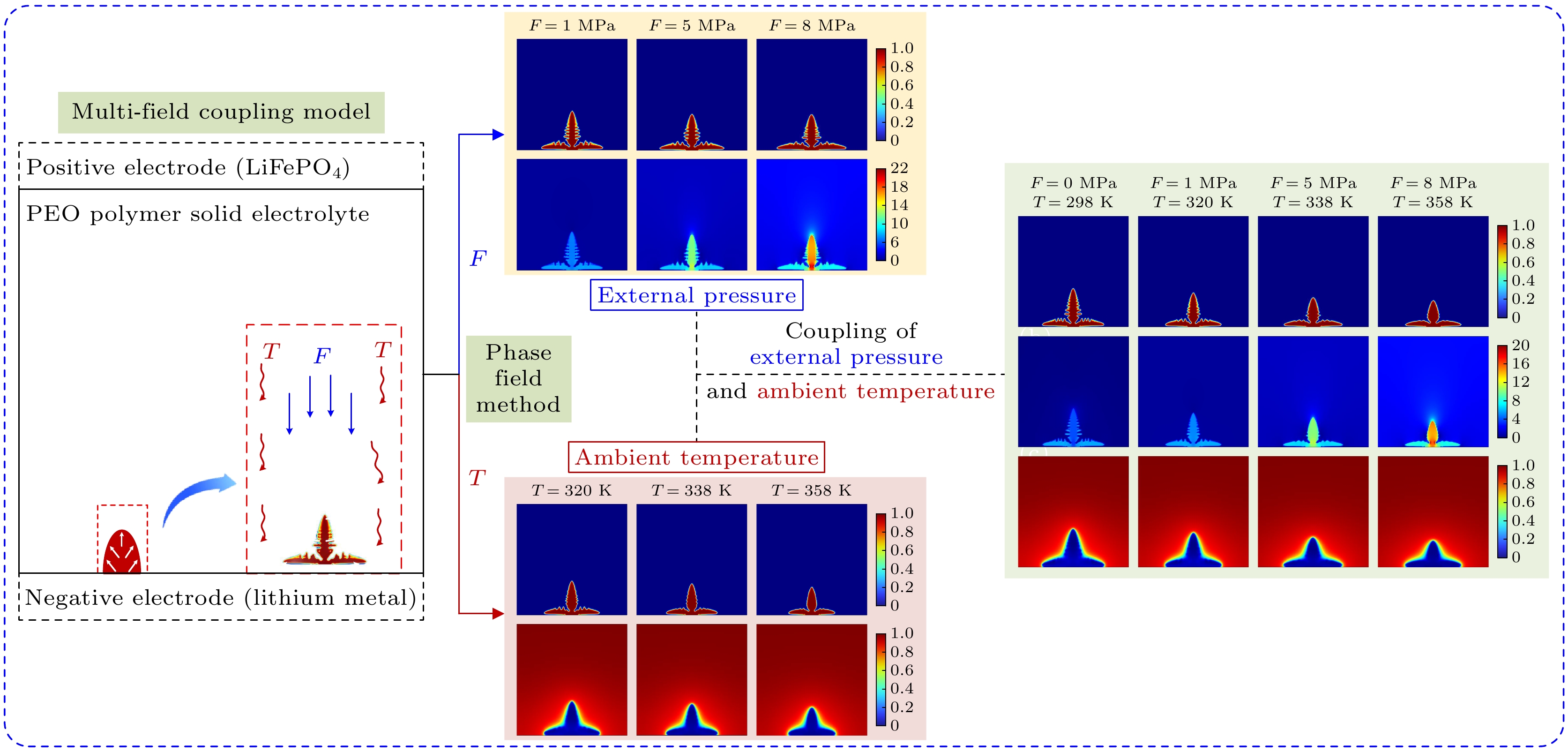 Phase field simulation of dendrite growth in solid-state lithium batteries based on mechaincal-thermo-electrochemical coupling