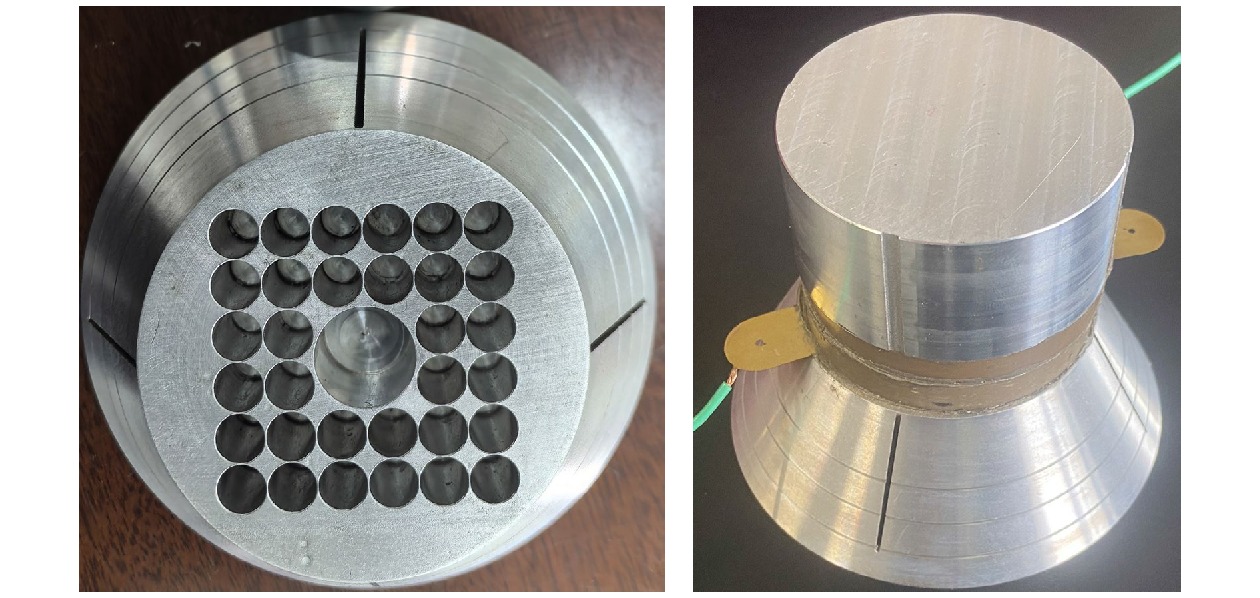 在大功率压电超声换能器中设计合理的声子晶体缺陷结构, 可以实现对杂散振动模态的有效抑制. 但当换能器尺寸较大时, 声子晶体缺陷结构对换能器设备辐射面的位移振幅改善情况仍不理想. 如何既能有效抑制有害振动, 又能保证换能器的工作效率, 提高换能器辐射面的位移振幅, 一直都是功率超声领域亟待解决的难题. 研究发现, 声学表面结构可以实现能量的单向传输, 更好地降低能量损耗, 提高能量传输的效率. 基于此, 本文提出了的研究. 通过在换能器中设计合理的缺陷和声表面结构, 激发声波的强局域化效应, 实现声学反常透射, 大幅提高换能器纵向辐射声功率. 同时利用数据分析技术, 对声学表面结构和缺陷结构的材料成分、几何结构参数对换能器性能的影响进行分析, 建立大功率压电超声换能器的性能预测模型, 实现换能器的优化设计. 从定量研究的角度出发, 系统性地提出一种大功率压电超声换能器优化设计的新理论和新方法. 仿真和实验证明, 本研究可以提高大功率压电超声换能器的创新设计能力和设计的智能化水平, 使得换能器在大功率应用环境中振动模态更加单一, 大幅提高了辐射面的位移振幅和振幅分布均匀度.