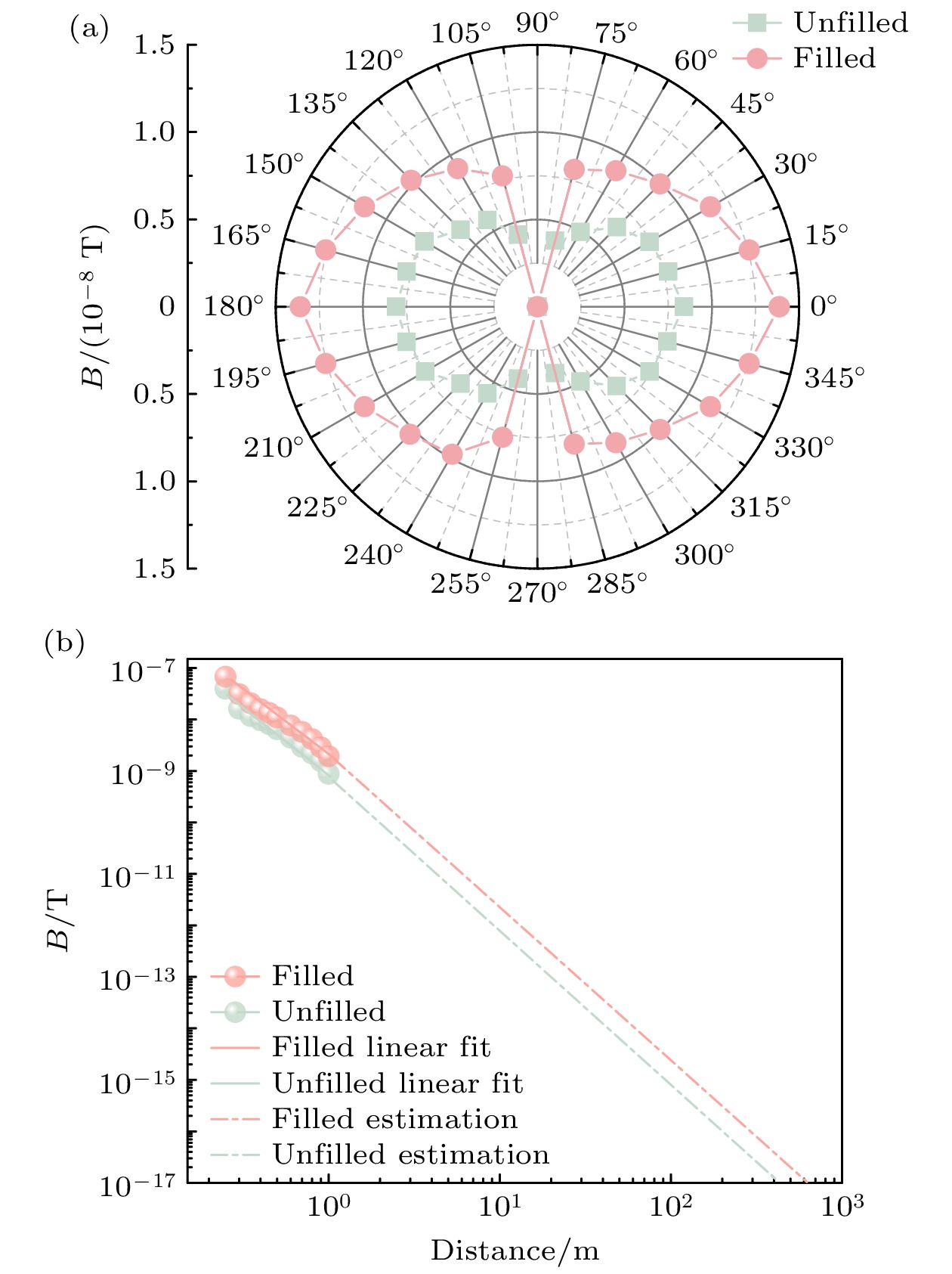 /MRaylsT epoxy 1.26 3.01 1.95 0.077 0.5% 1.29 4.36 2.38 0.107 1% 1.32 5.56 2.70 0.132 1.5% 1.34 4.12 2.34 0.101 2% 1.35 2.70 1.90 0.074 PZT-5H 7.61 56 20.63 Metglas 7.82 100 27.93 年份 材料体系 发射器体积/cm3 工作频率/kHz 辐射能力 单位体积辐射能力 2020[23] PZT 50.3 33.23 40 fT at 6 m 0.8 fT/cm3 @6 m 2022[24] PZT/Metglas 0.45 6.3 1 nT at 0.4 m 2.2 nT/cm3 @0.4 m 2023[25] PZT/Metglas 69 22.23 6 pT at 5.5 m 0.09 pT/cm3 @5.5 m 2020[14] PZT/Metglas 0.33 23.95 10 fT at 120 m 30 fT/cm3 @120 m 2023[26] PZT/Metglas 0.56 17.9 1 nT at 1.4 m 1.79 nT/cm3 @1.4 m 2024[27] PZT/Ni/Metglas 0.16 24.47 2.4 pT at 3 m 15 pT/cm3@3 m 本工作 PZT-5H/Metglas 0.07 12.51 2.7 nT at 1 m 38.6 nT/cm3 @1 m -