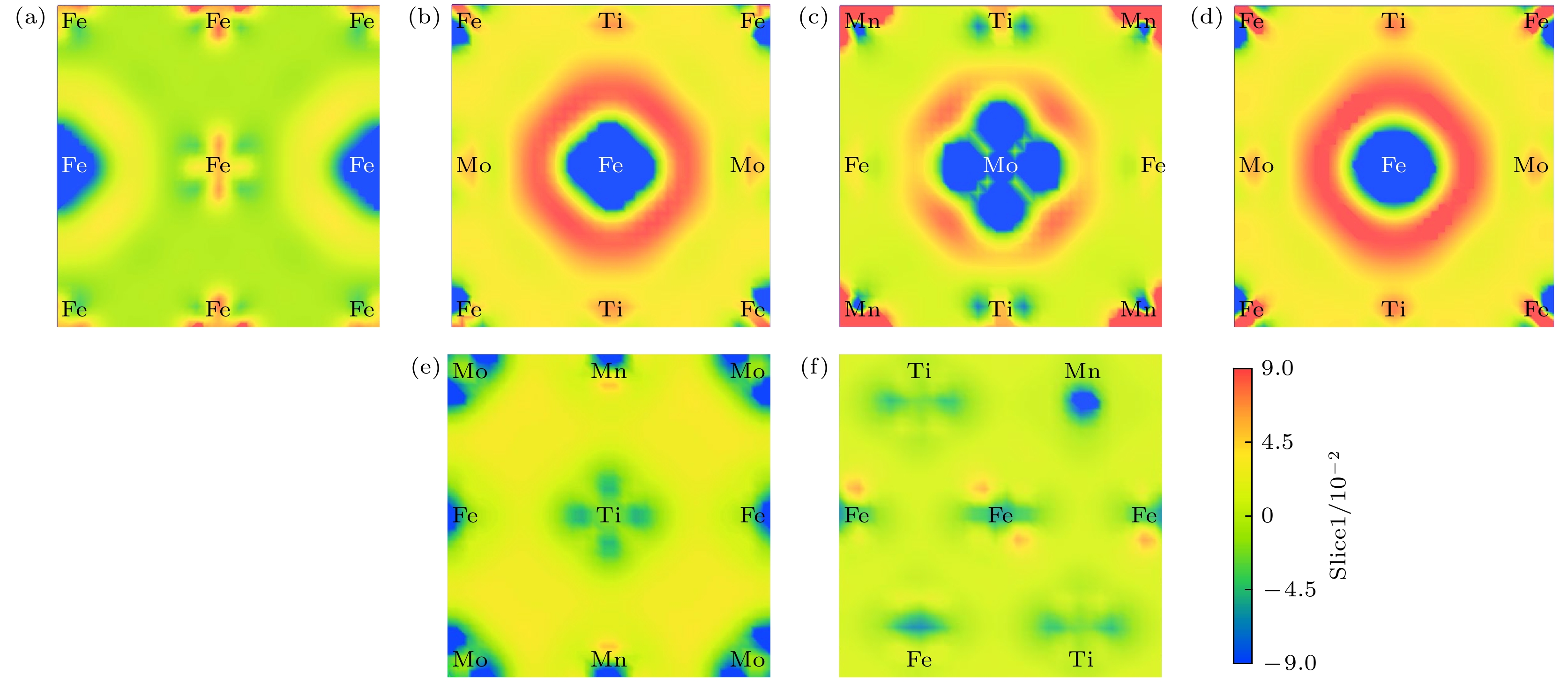 Ferrite (α-Fe), as a fundamental phase of steel materials, plays a decisive role in determining their macroscopic mechanical behaviors through its microscopic properties, particularly in engineering applications involving resistance to plastic deformation and fracture, fatigue resistance, wear resistance, and low-temperature toughness. Therefore, alloying elements are commonly introduced to improve the performance of steel via mechanisms such as grain refinement strengthening and precipitation strengthening. However, in these strengthening mechanisms, the effects of doped alloying elements on the stability, electronic structure, and mechanical properties of ferrite itself have not been thoroughly investigated. In this study, orthogonal experimental design and first-principles calculations are employed to investigate the effects of ternary alloy doping with M (Mn, Ti, Mo) on the stabilities, electronic structures, and mechanical properties of a ferrite-based supercell model Fe16-x-y-zMnxTiyMoz (x, y, or z = 0, 1, or 2), aiming to provide both theoretical insight and experimental reference for improving the comprehensive performance of ferrite-based steels by modifying the properties of the matrix phase. The results of the formation enthalpy (Hform) calculations indicate that all solid solutions have negative formation enthalpies, suggesting that they can form spontaneously. Among them, Ti doping is the most favorable for solid solution formation, followed by Mn, with Mo being the least favorable. The Fe13Ti1Mo2 configuration is the easiest to form spontaneously. The cohesive energy (Ecoh) results demonstrate that all solid solutions exhibit structural stabilities. Fe13Ti1Mo2 has the largest (most negative) cohesive energy of –477.96 eV, indicating that it possesses the highest structural stability. The contribution of Mo doping to stability enhancement is the greatest, followed by Ti, while the influence of Mn is the smallest. Electronic structure calculations reveal that M doping consistently reduces the density of states (DOS) at the Fermi level for Fe16-x-y-zMnxTiyMoz. The lowest DOS at the Fermi level is found to be 4.294 in Fe13Ti1Mo2, indicating enhanced hybridization and overlap between Mn 3d, Ti 3d, Mo 4d, and Fe 3d states. This strong hybridization leads to a decrease in the Fermi level and contributes to the high stability of the Fe13Ti1Mo2 phase. Mechanical property calculations indicate that M doping reduces the Young’s modulus (E) and Vickers hardness (HV) of the solid solutions. However, the K values (K = GH/BH) are all greater than 1.75, and Poisson’s ratios (ν) exceed 0.26, implying that while stiffness and hardness decrease, the ductility of the materials is improved. This study provides valuable guidance for designing ductile and tough ferrite-based steel materials.