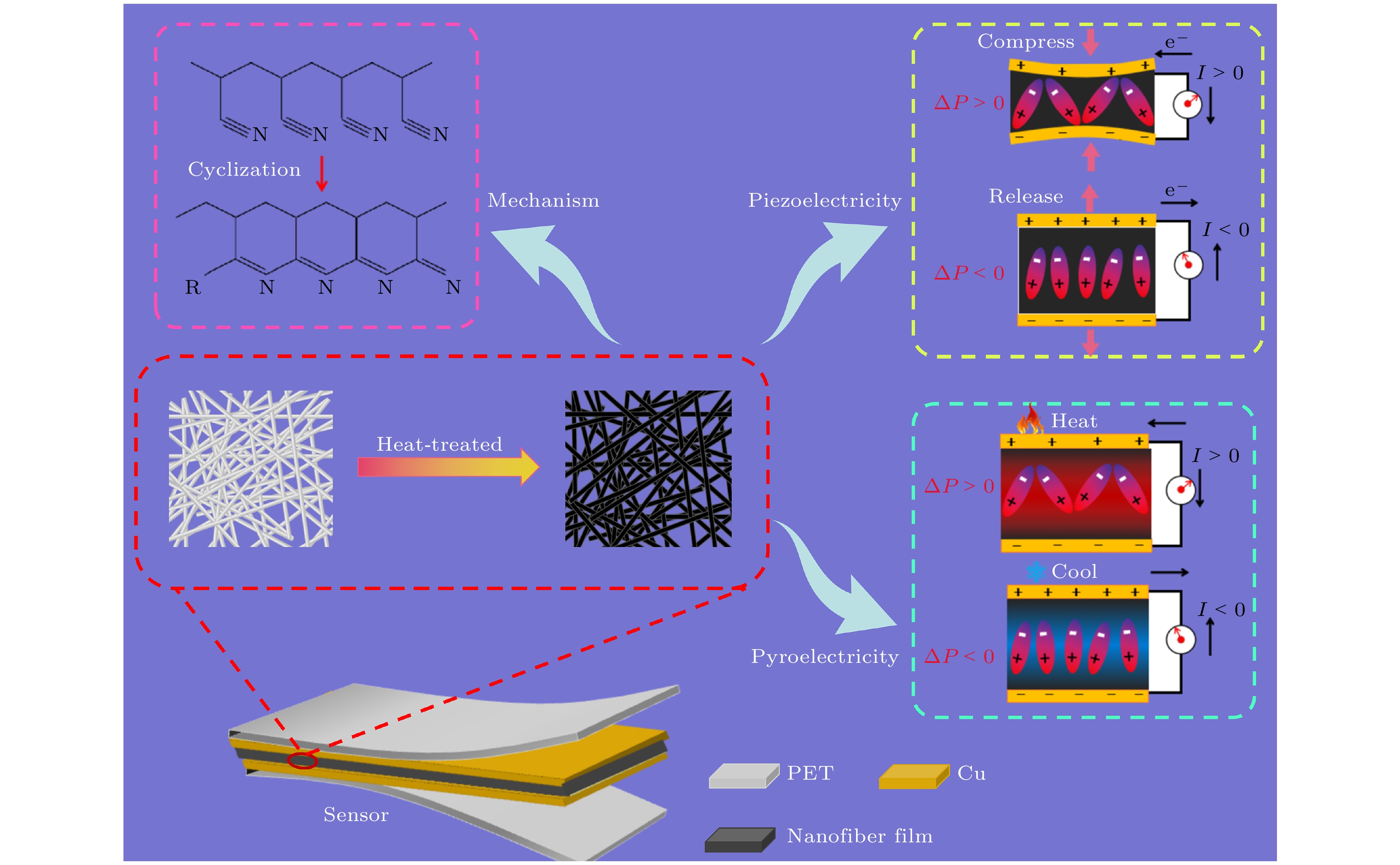 A flexible piezoelectric/pyroelectric dual-function sensor with high temperature resistance
