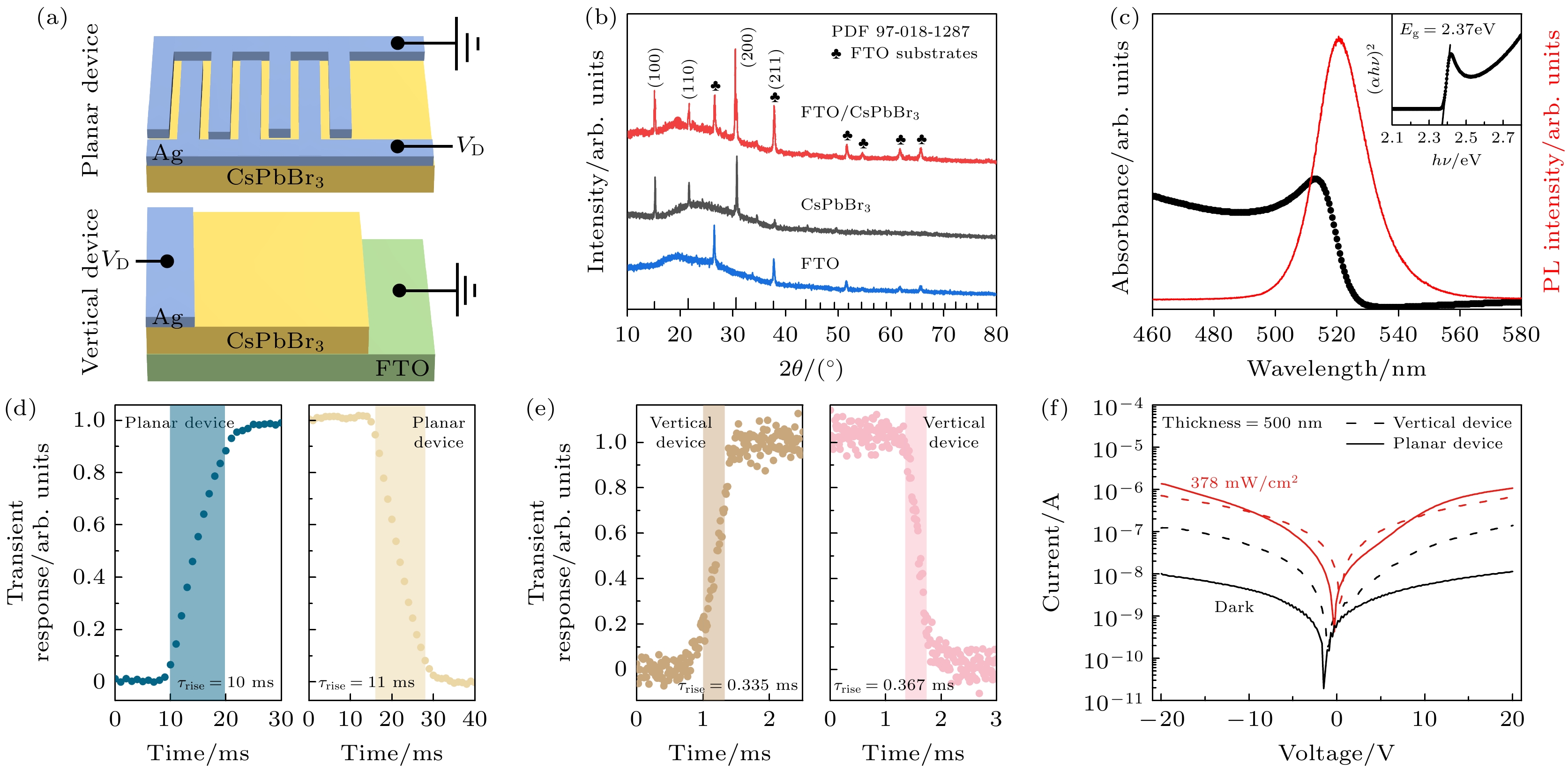 Vertical MSM-type CsPbBr3thin film photodetectors with fast response speed and low dark current