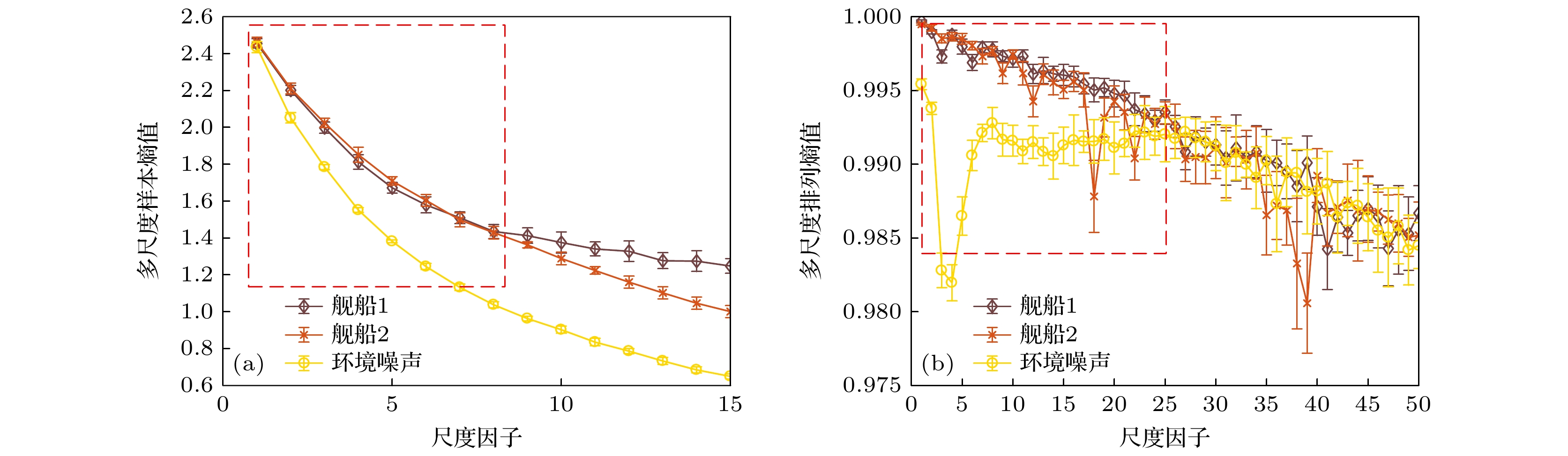 复杂系统的非线性动力学研究一直是物理学领域的重点, 因为其有助于提高系统建模的精度, 从而实现更准确的系统分析与预测. 非线性特征参数, 如熵和李雅普诺夫指数, 能够有效揭示复杂系统中隐含的动力学特性. 与传统的一维时间序列数据相比, 多通道阵列数据包含更多关于非线性系统动力学的信息, 相空间重构后的数据矩阵在结构上也与多通道阵列数据展现出相似的特性. 然而, 现有的非线性特征参数计算方法仅适用于一维时间序列. 仅选取多通道数据中的一个通道来计算非线性特征参数, 会导致大量系统信息的浪费, 从而降低了非线性特征参数的性能与精度. 本文针对含有相空间重构的多尺度样本熵与多尺度排列熵两种经典非线性特征参数, 利用阵列多通道数据代替算法中的相空间重构以提升算法性能. 通过分析相空间重构参数与实际阵列结构参数之间的关系, 给出嵌入维数、时间延迟与阵元个数、阵元间距之间的关系. 通过构造多组仿真阵列数据, 分别计算其多尺度样本熵和多尺度排列熵. 结果表明, 使用阵列数据代替相空间重构可以有效地提升两种熵算法的性能. 其中, 使用阵列数据的多尺度样本熵算法可以在低信噪比下对含噪目标信号与背景噪声进行有效地区分, 而使用阵列数据的多尺度排列熵算法可以更准确地揭示信号在不同时间尺度上的复杂度. 进一步地, 实测阵列数据分析也与仿真结果一致, 证明了阵列数据含有更丰富的系统信息. 而其隐含的更多信息可以有效地提升非线性特征参数的性能, 实现对不同类型系统的准确区分.Phase space reconstruction plays a pivotal role in calculating features of nonlinear systems. By mapping one-dimensional time series onto a high-dimensional phase space using phase space reconstruction techniques, the dynamical characteristics of nonlinear systems can be revealed. However, existing nonlinear analysis methods are primarily based on phase space reconstruction of single-channel data and cannot directly utilize the rich information contained in multi-channel array data. The reconstructed data matrix shows the structural similarities with multi-channel array data. The relationship between phase space reconstruction and array data structure, as well as the gain in nonlinear features brought by array data, has not been sufficiently studied. In this paper, two classical nonlinear features: multiscale sample entropy and multiscale permutation entropy are adopted. The array multi-channel data are used to replace the phase space reconstruction step in algorithms so as to enhance the algorithmic performance. Initially, the relationship between phase space reconstruction parameters and actual array structures is analyzed, and conversion relationships are established. Then, multiple sets of simulated and real-world array data are used to evaluate the performances of the two entropy algorithms. The results show that substituting array data for phase space reconstruction effectively improves the performances of both entropy algorithms. Specifically, the multiscale sample entropy algorithm, when applied to array data, allows for distinguishing between noisy target signals from background noise at low signal-to-noise ratios. At the same time, the multiscale permutation entropy algorithm using array data reveals the complex structure of signals on different time scales more accurately.