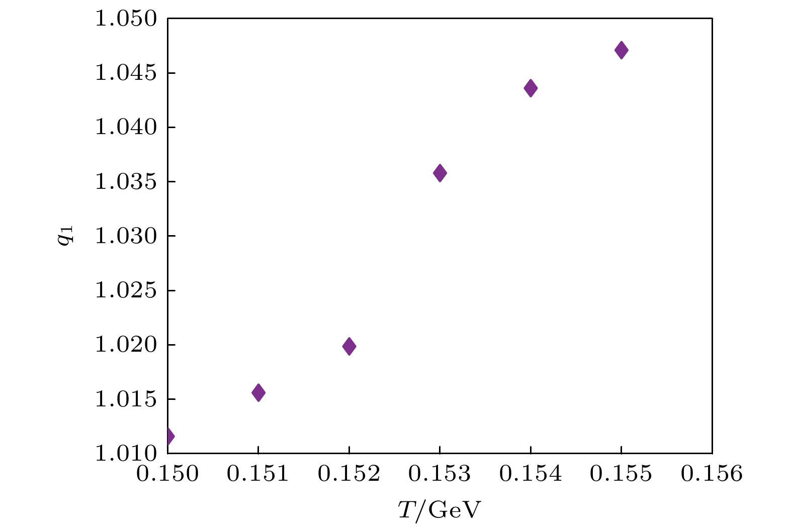 $ \sqrt{s_{\text{NN}}}/\text{GeV} $ $ T / \text{GeV} $ $ \mu_{\text{B}} / \text{GeV} $ $ r_{\text{min}}/\text{fm} $ $ r_{0}/\text{fm} $ $ q_{1} $ $ q_{2} $ 7.7 0.1424 $ \pm $ 0.00137 0.42 0.11 6.3 1.04222 $ \pm $ 0.003525 1.13941 $ \pm $ 0.010415 11.5 0.1483 $ \pm $ 0.00142 0.316 0.11 6.5 1.04204 $ \pm $ 0.004635 1.12682 $ \pm $ 0.01063 19.6 0.1527 $ \pm $ 0.00147 0.206 0.09 6.75 1.04129 $ \pm $ 0.002445 1.14432 $ \pm $ 0.005105 27 0.1541 $ \pm $ 0.00148 0.156 0.1 6.8 1.04470 $ \pm $ 0.001435 1.12251 $ \pm $ 0.00039 39 0.155 $ \pm $ 0.00149 0.112 0.1 6.85 1.04710 $ \pm $ 0.001615 1.11388 $ \pm $ 0.00012 -