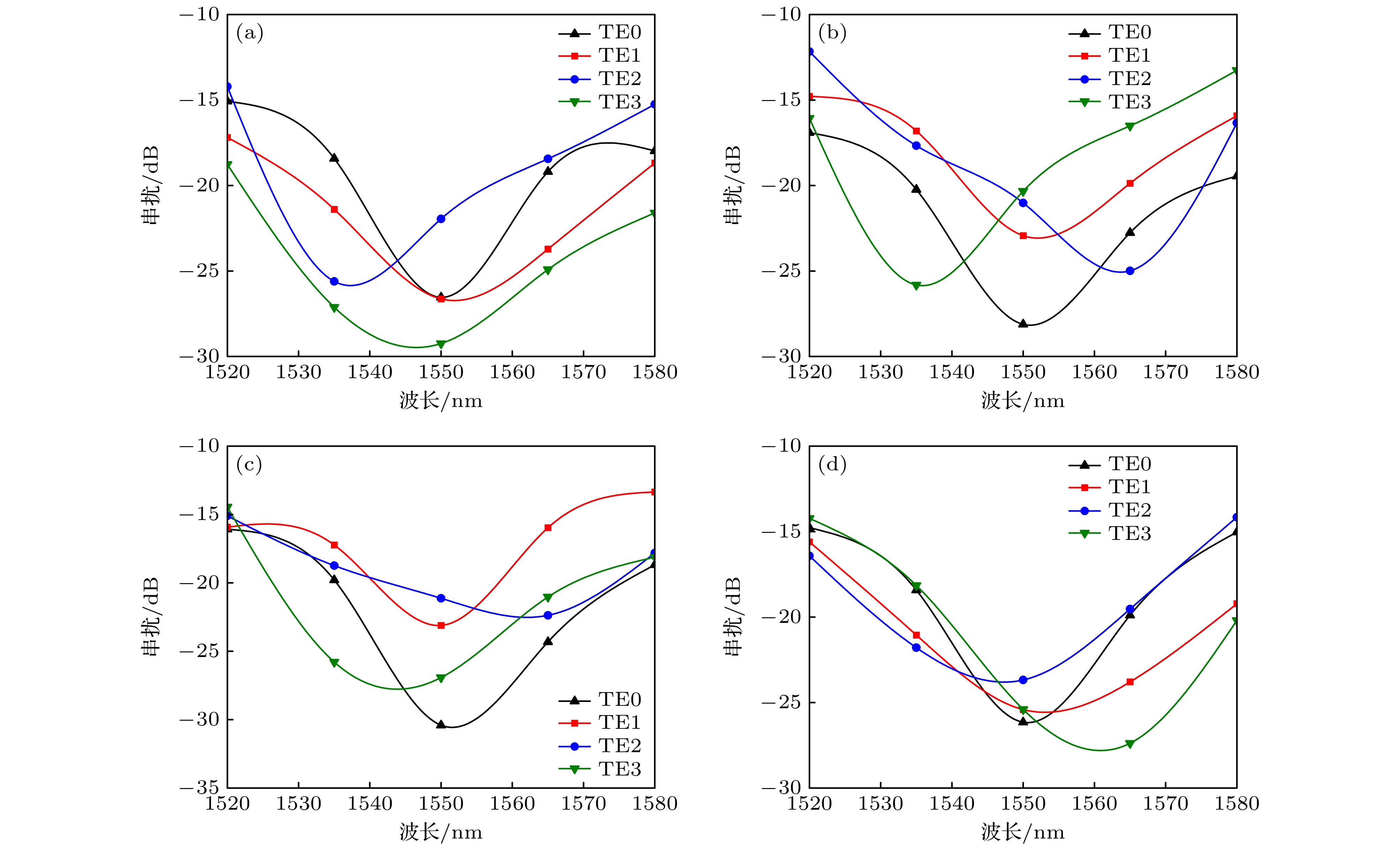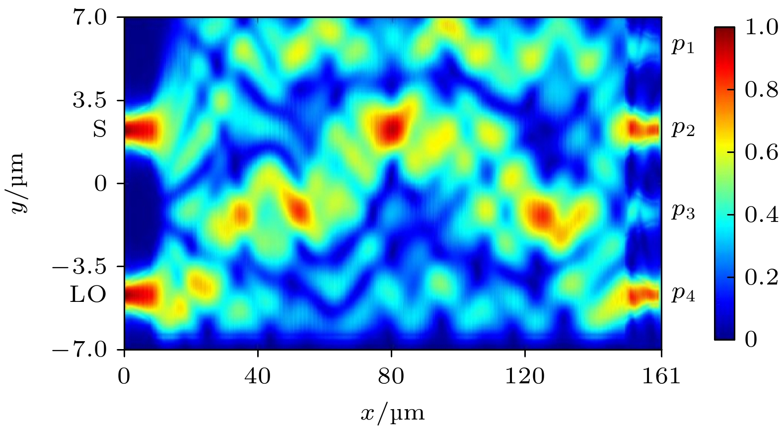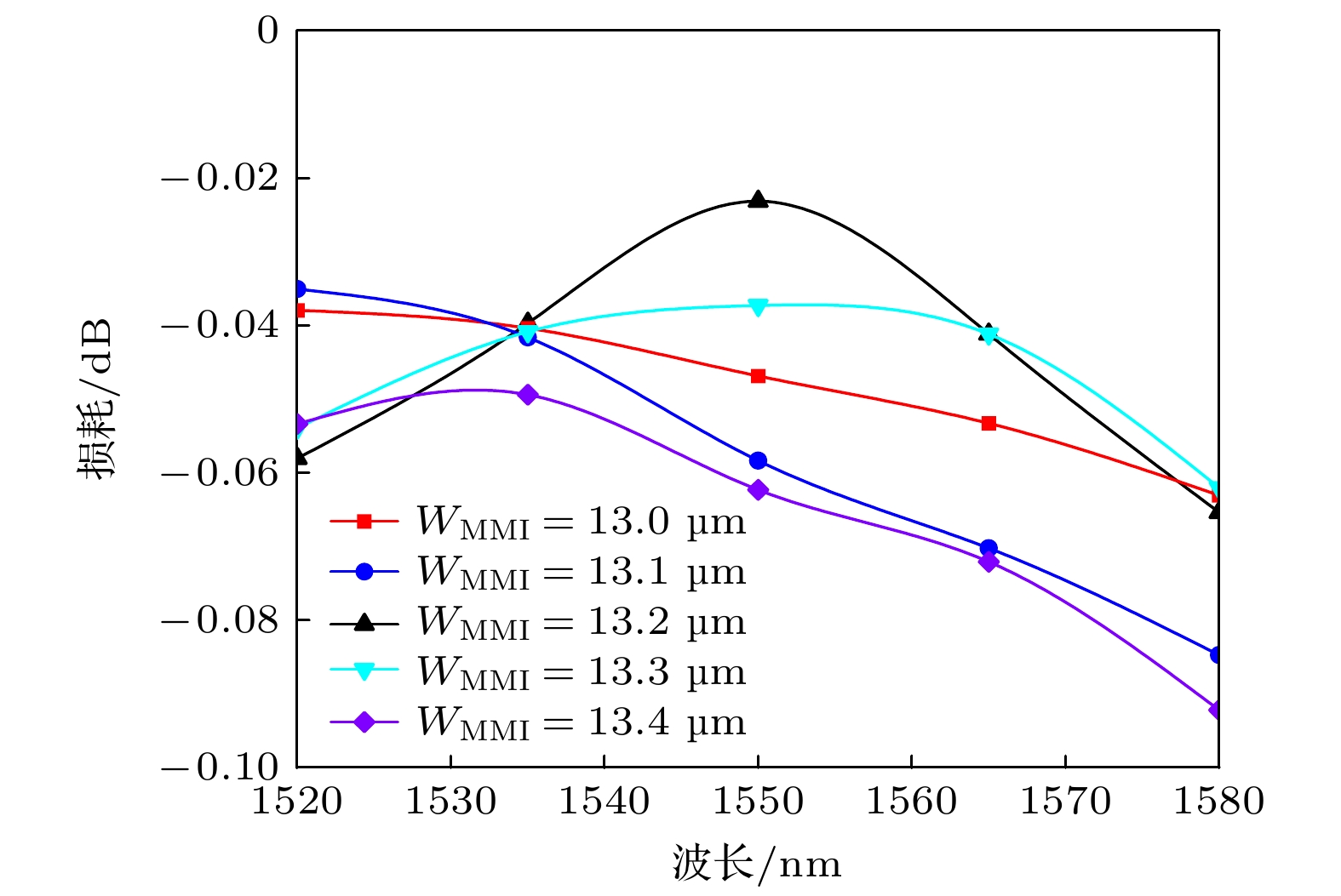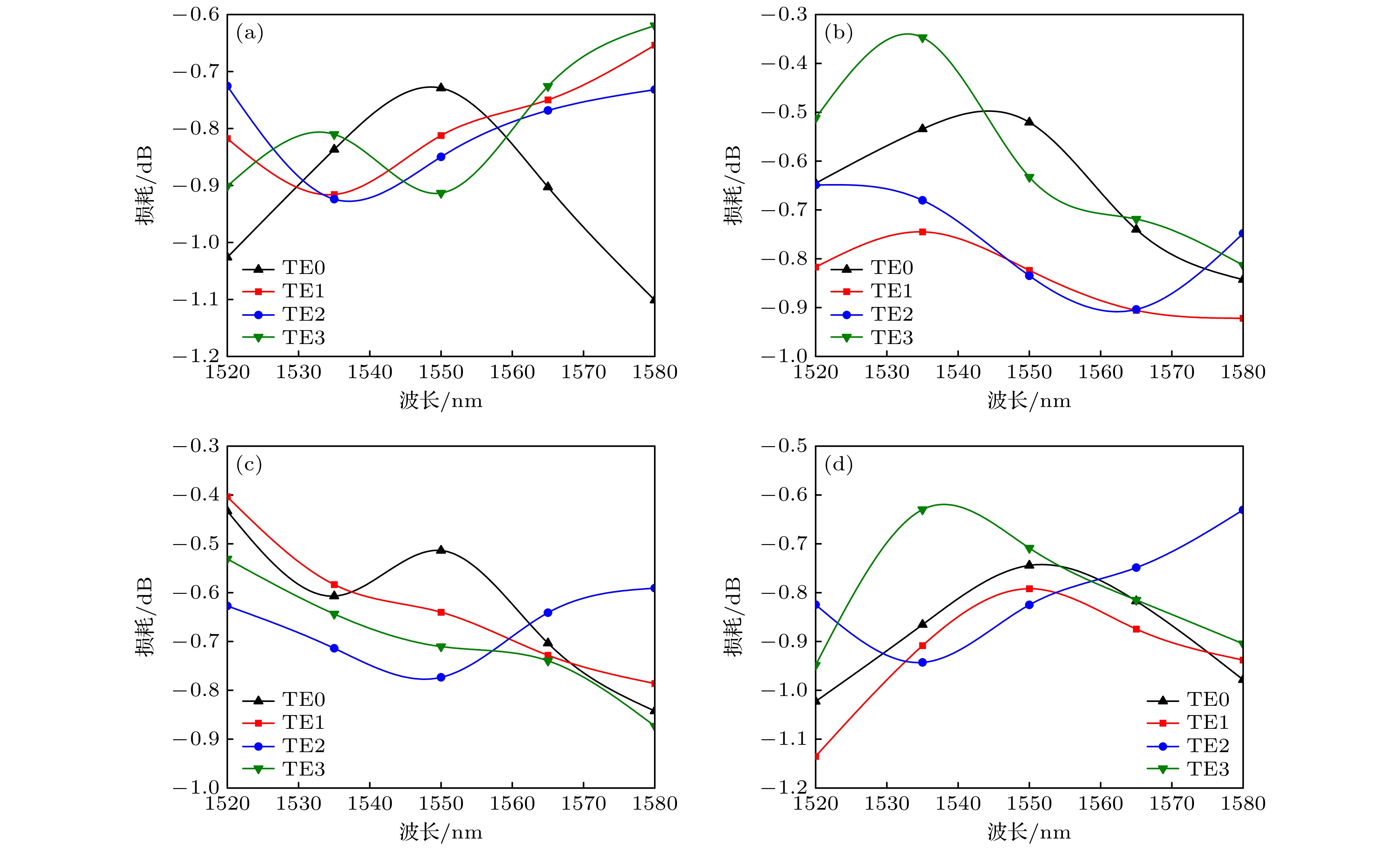 90°optical mixer, as an essential part of coherent optical communication and heterodyne detection, improves polarization discrimination and anti-interference capabilities, increases receiver sensitivity, and permits demodulation of higher-order modulation forms. The disadvantages of traditional 90° optical mixers, however, include their high precision needs, size, mode mismatch restrictions, polarization sensitivity, and single functionality. Utilizing a lithium niobate platform, a multimode interference (MMI) structure, and a micro-thermoelectric electrode array, and with the help of the finite difference time domain (FDTD) method, a multipurpose device that combines 90° optical mixing and mode separation capabilities is designed in this work. According to the results, when no voltage is applied across the micro-thermoelectric electrodes, the multipurpose device acts as a 90° optical mixer. The common-mode rejection ratios of all four outputs are all above –30 dB, phase errors are below 4°, and the losses in the wavelength range of 1520–1580 nm exceed –13.862 dB. When a voltage is applied across the micro-thermoelectric electrodes, TE0, TE1, TE2, and TE3 modes are separated by the multipurpose device acting as a mode splitter. In addition to controlling crosstalk fluctuation within 8.8 dB, the minimum loss divergence between modes is less than 0.024 dB. Research findings indicate that the physical characteristics of optical field interference within the MMI structure enable perfect phase matching and energy distribution across a wide spectrum range, even when no voltage is supplied across the micro-thermoelectric electrode terminals. By controlling the interference superposition process inside the multi-mode region and improving broadband 90° optical mixing parameters, the stable phase-matching conditions are maintained across the wide spectrum. The lithium niobate-based linear electro-optic effect (Pockels effect) modifies the waveguide refractive index distribution through an external electric field when a voltage is applied across the micro-thermoelectrodes. By changing the light field’s coupling path and propagation mode inside the MMI structure, the mode-separating integrator can precisely achieve mode separation, thereby confirming the efficiency of the electro-optic effect in optical functional control, which meets the isolation requirements for various mode optical signals. Furthermore, a systematical tolerance analysis of the device’s width and length is carried out, demonstrating how structural dimensional deviations affect the mode coupling efficiency and optical field interference circumstances. The integrated broadband 90° optical mixer and mode splitter device described in this paper has excellent process tolerance properties.