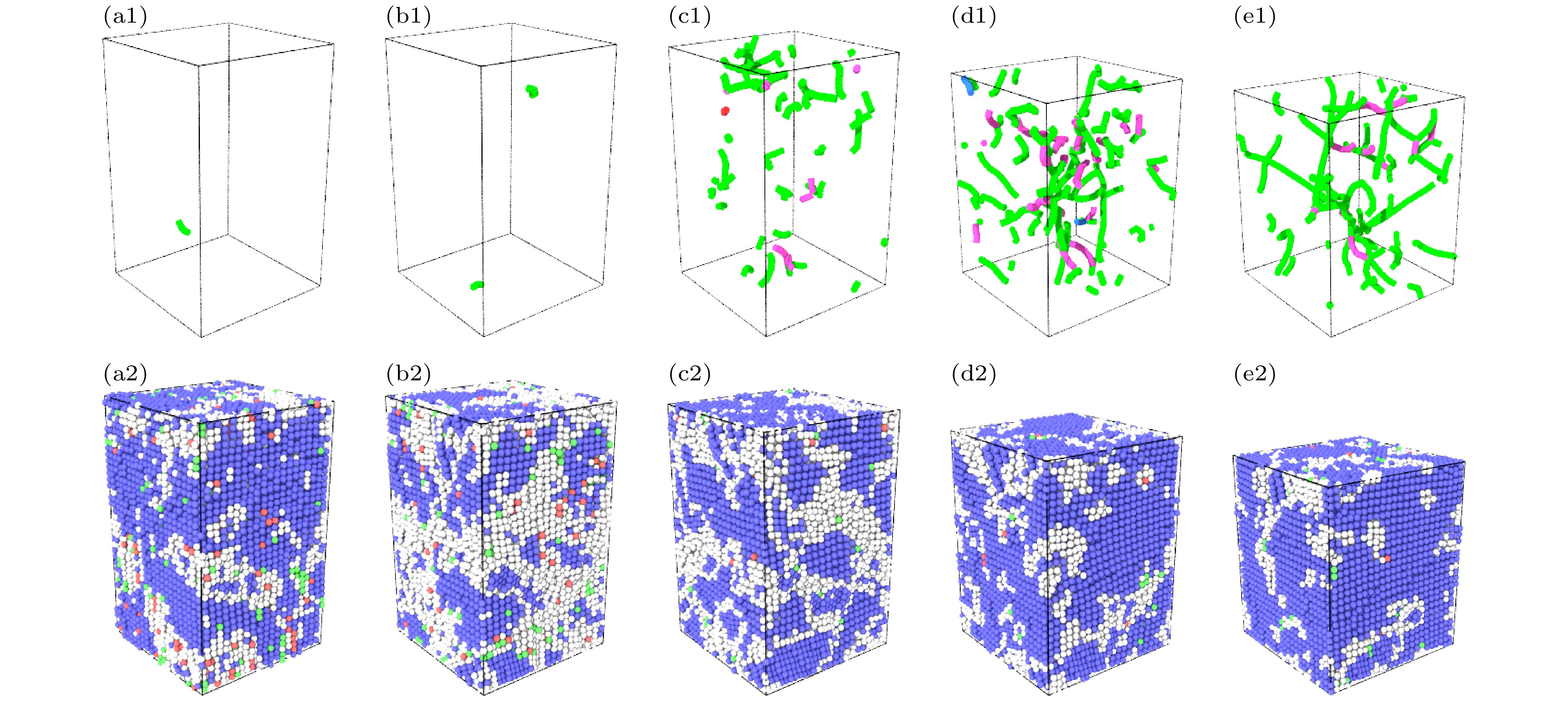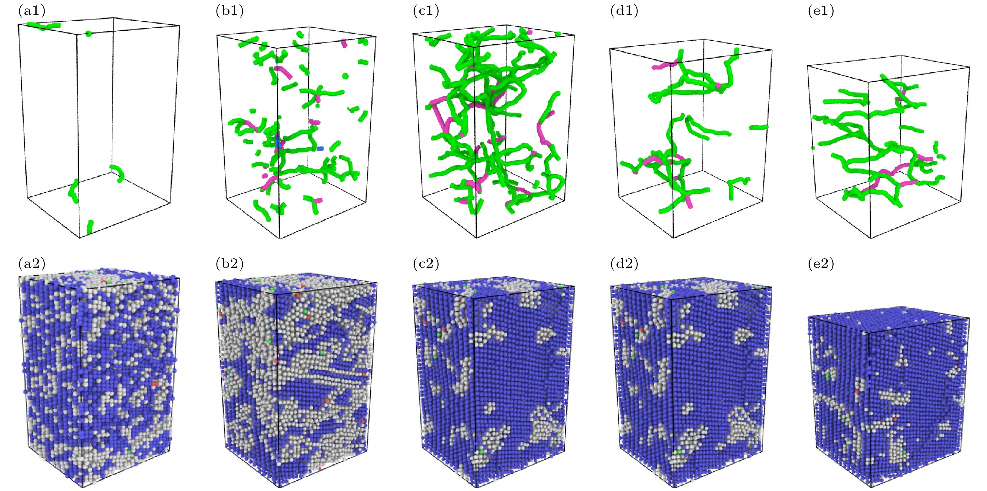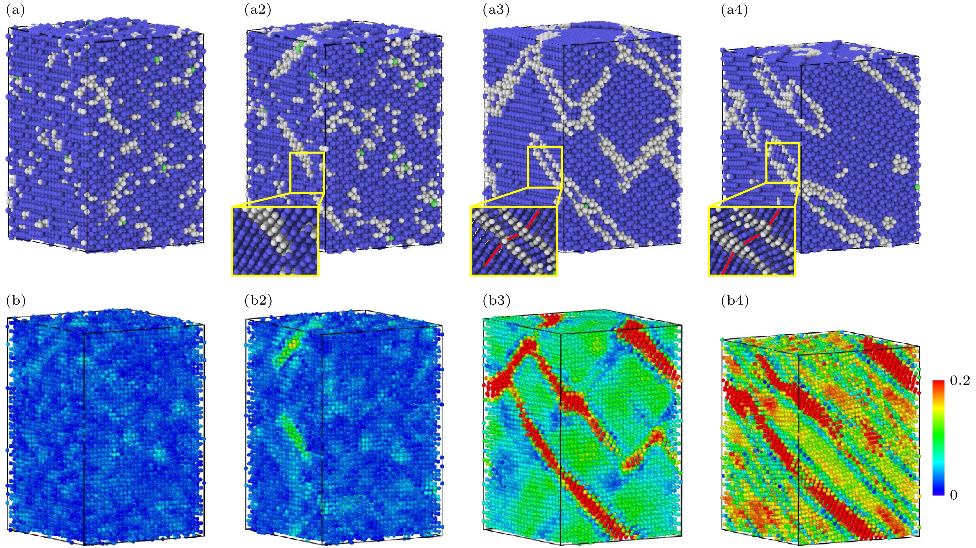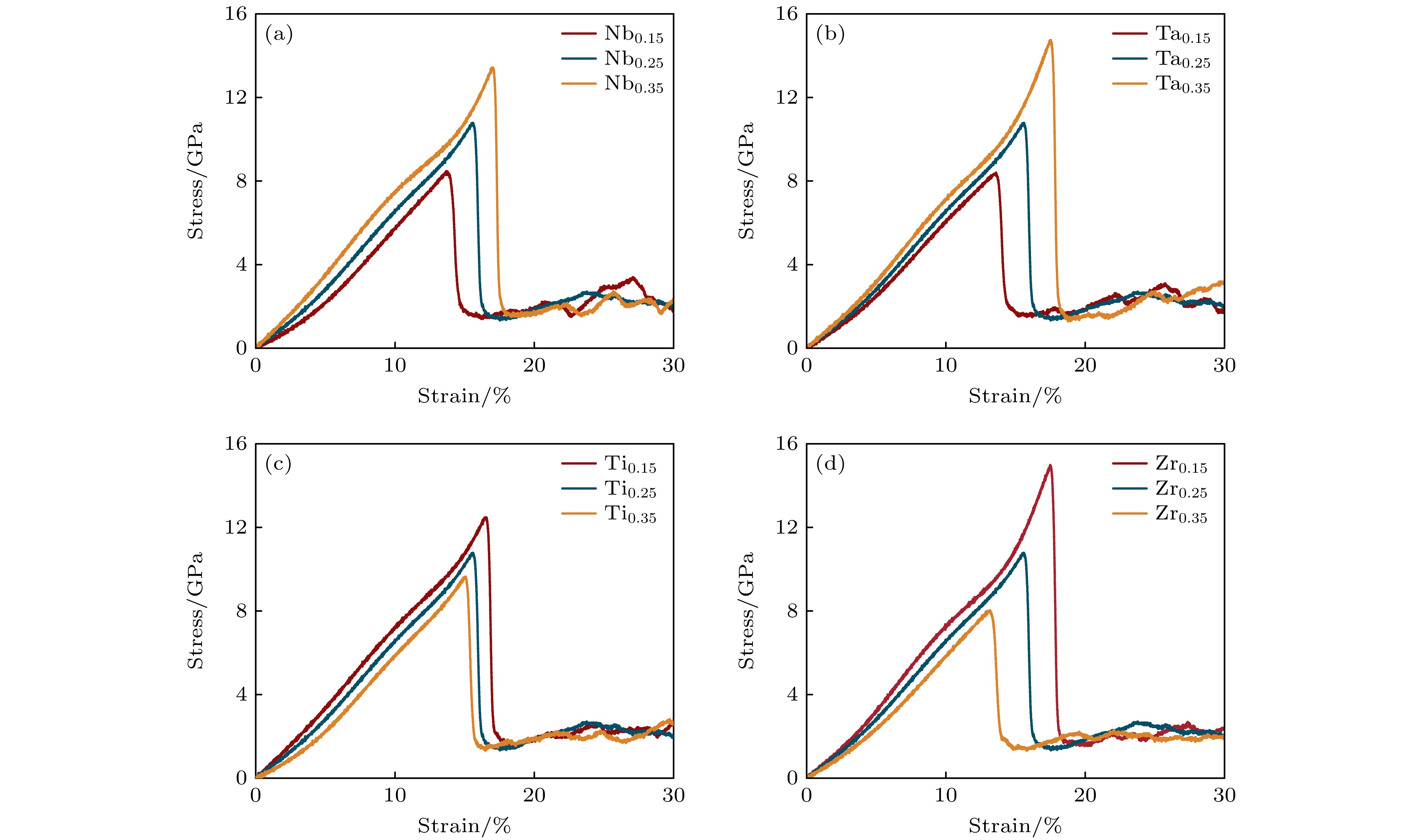 Refractory multi-principal element alloys (RMPEAs)have become a hotspot in materials science research in recent years due to their excellent high-temperature mechanical properties and broad application prospects. However, the unique deformation mechanisms and mechanical behaviors of the NbTaTiZr quaternary RMPEA under extreme conditions such as high temperature and high strain rate are still unclear, limiting its further design and engineering applications. In order to reveal in depth the dynamic response of this alloy on an atomic scale, this study develops a high-accuracy machine learning potential (MLP) for the NbTaTiZr quaternary alloy and combines it with large-scale molecular dynamics (MD) simulations to systematically investigate the effects of crystallographic orientation, strain rate, temperature, and chemical composition on the mechanical properties and microstructural evolution mechanisms of the alloy under compressive loading. The results show that the NbTaTiZr alloy exhibits significant mechanical and structural anisotropy during uniaxial compression. The alloy exhibits the highest yield strength when loaded along the [111] crystallographic direction, while it shows the lowest yield strength when compressed along the [110] direction, where twinning is more likely to occur. Under compression along the [100] direction, the primary deformation mechanisms include local disordering transitions and dislocation slip, with 1/2$ \left\langle{111}\right\rangle $ dislocations being the dominant type. When the strain rate increases to 1010 s–1, the yield strength of the alloy is significantly enhanced, accompanied by a notable increase in the proportion of amorphous or disordered structures, indicating that high strain rate loading suppresses dislocation nucleation and motion while promoting disordering transitions. Simulations at varying temperatures indicate that the alloy maintains a high strength level even at temperatures as high as 2100 K. Compositional analysis further indicates that increasing the atomic percentage of Nb or Ta effectively enhances the yield strength of the alloy, whereas an increase in Ti or Zr content adversely affects the strength. By combining MLP with MD methods, this study elucidates the anisotropic characteristics of the mechanical behavior and the strain rate dependence of disordering transitions in the NbTaTiZr RMPEA under combination of high strain rate and high temperature, providing an important theoretical basis and simulation foundation for optimizing and designing novel material under extreme environments.