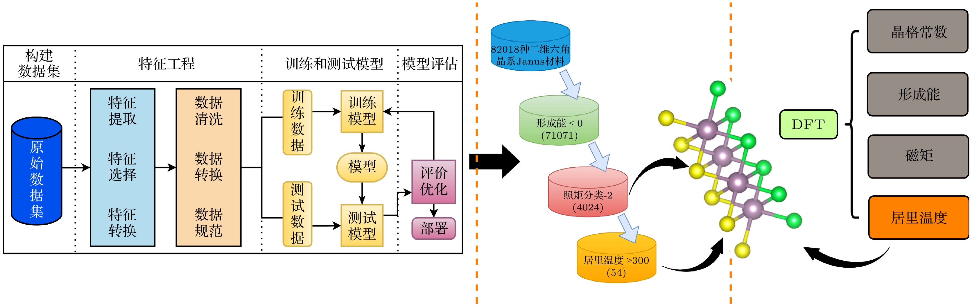 Prediction of high Curie temperature Janus materials based on machine learning and first-principles calculations