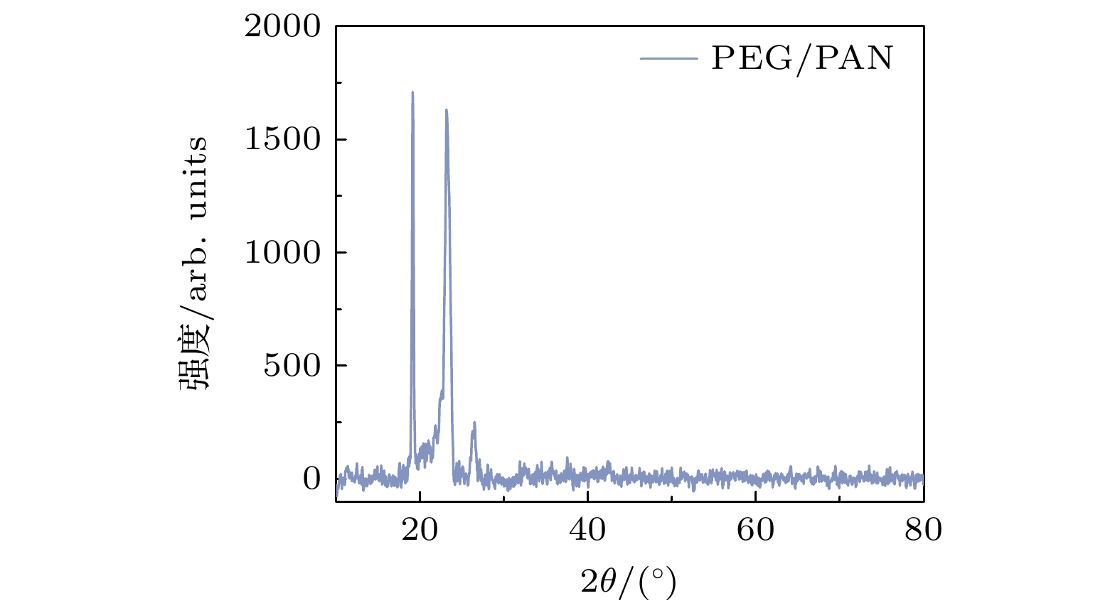 样品名称 Tm/℃ ∆Hm/(J·g–1) Tc/°C ∆Hc/(J·g–1) PEG 25.1 152.4 26.1 146.6 PEG/PAN 21.8 80.6 23.5 71.8 第100次循环 21.8 80.1 23.5 71.3 第200次循环 21.7 79.4 23.4 70.6 第300次循环 21.7 80.3 23.5 71.1 第400次循环 21.9 80.1 23.6 70.0 第500次循环 21.8 79.4 23.6 70.5 -