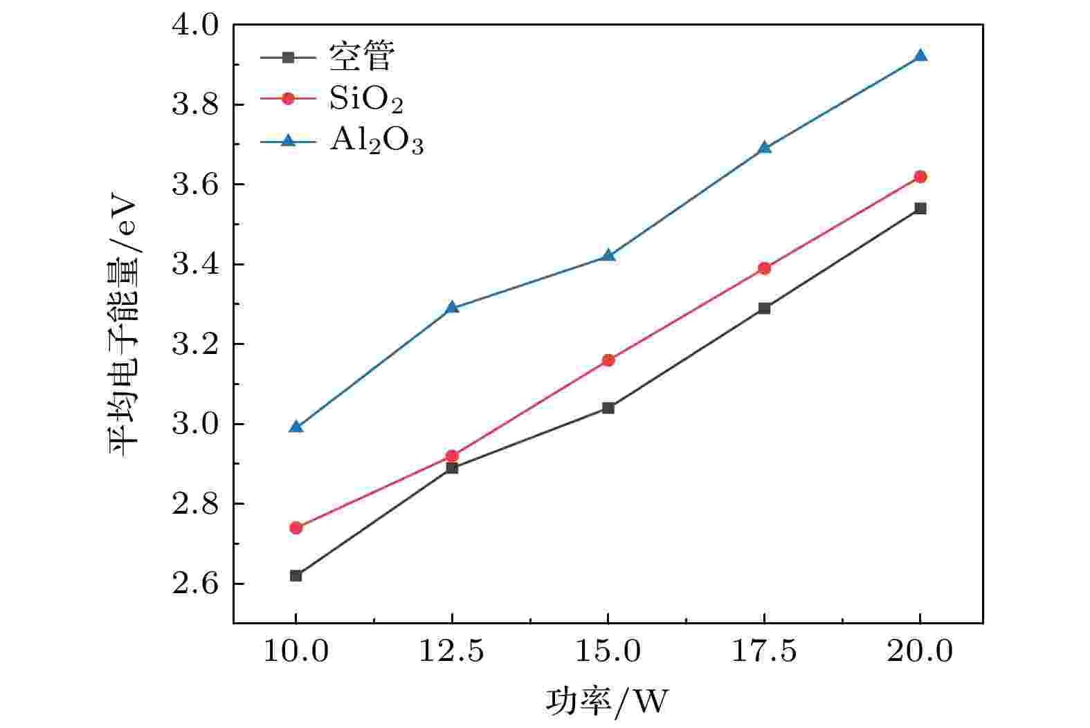 火星原位资源利用是当前深空探测领域的研究热点之一. 采用低温等离子体技术可实现火星大气高浓度CO2的原位转化, 具有环境适应性强、系统效率高等诸多优势. 本研究使用一套同轴填充床介质阻挡放电反应器开展了火星大气CO2放电特性研究, 探究了SiO2与Al2O3填充材料对二氧化碳转化性能及能耗的影响. 与空管放电相比, 采用不同的填充材料会显著影响等离子体的放电特性. 在放电区内填充Al2O3材料提升了电场强度, 促进了CO2的转化和氧气的生成, 实现了12.18%的CO2转化率, 最低能耗为0.36 kWh/g. 通过发射光谱诊断和数值计算发现, 增加放电功率和填充Al2O3提升了平均电子能量, 通过非平衡振动激发态的生成促进了CO2的活化和转化. 研究结果表明, 选择合适的填充材料可以有效提升等离子体火星CO2转化过程的能量效率. 本研究为后续低温等离子体技术在火星大气原位转化领域的应用提供了一定的理论和实验支撑.