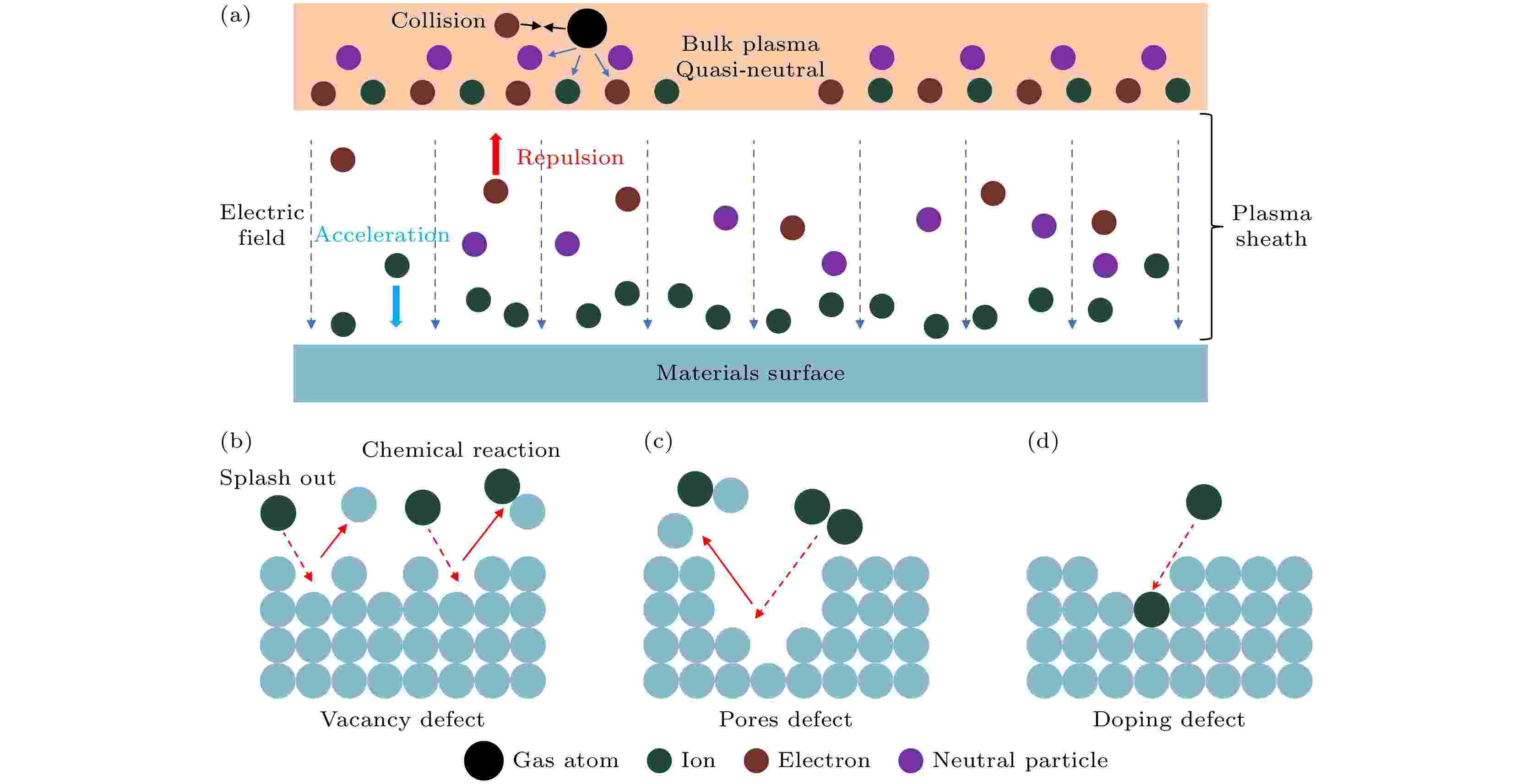 非热等离子体 (non-thermal plasma, NTP) 作为一种在接近室温条件下高效实现材料制备与改性的先进技术, 近年来在能源材料领域备受关注. 由于其电子温度高而整体气体温度低, NTP能够在避免热损伤的前提下, 通过引入空位、杂原子掺杂, 调控孔隙率和表面粗糙程度等多尺度缺陷, 显著改善电极材料的电化学性能. 等离子体-材料表面相互作用是一个复杂的体系, 涉及等离子体与材料之间的相互影响规律, 深入理解该作用机制对实现NTP精准调控材料缺陷类型、密度、空间分布至关重要. 本综述系统总结了NTP在能源材料刻蚀和掺杂领域的应用, 重点阐述了缺陷的生成及其对等离子体与材料表面相互作用的影响. 最后, 分析了NTP技术规模化应用过程中面临的主要挑战并对其未来发展进行了展望.