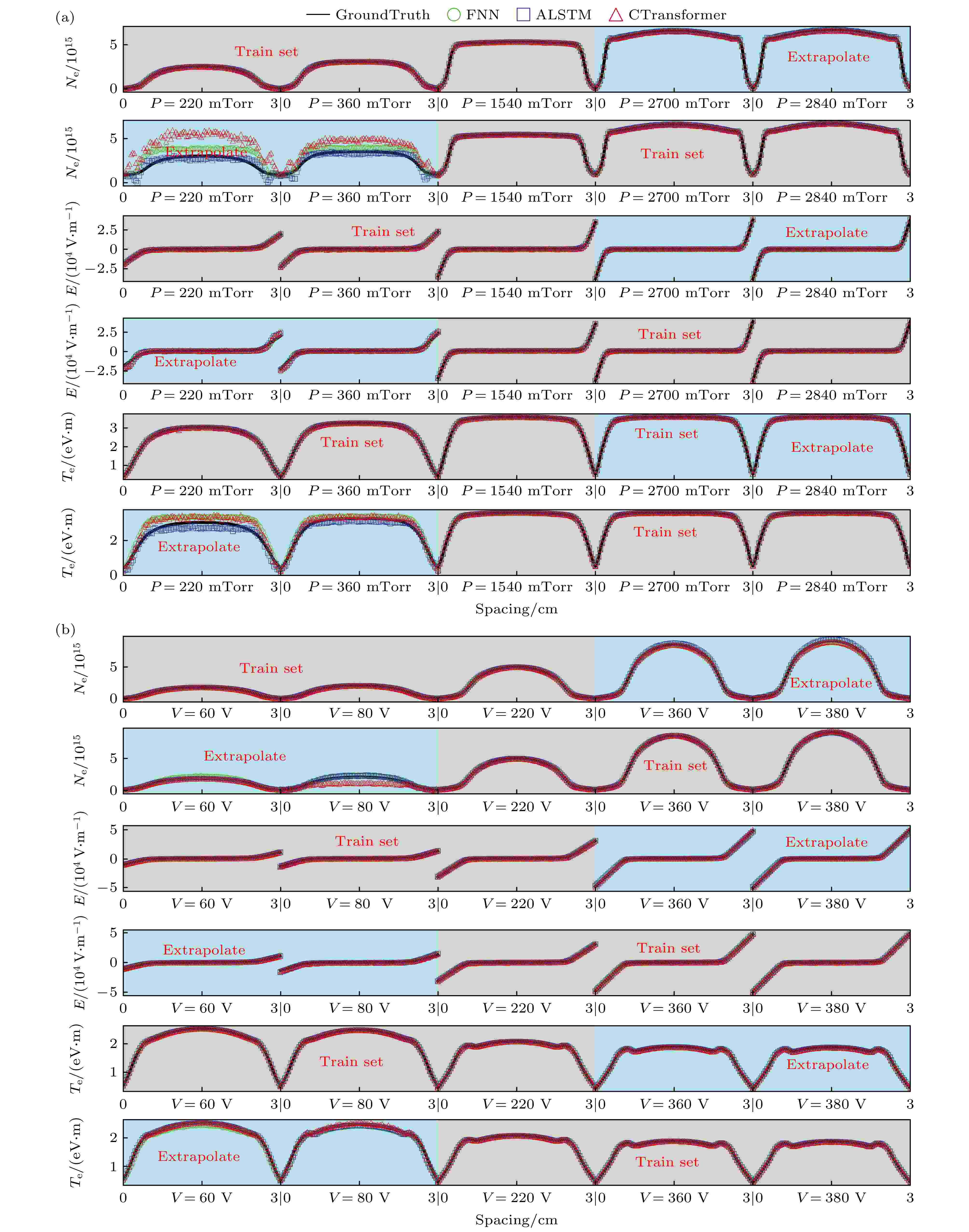 容性耦合等离子体(CCP)的流体模拟对于理解放电物理机制非常重要, 但其高昂的计算成本制约了大范围参数化探索. 为突破该限制, 本文开发了一种深度学习代理模型, 旨在以近瞬时推理速度复现一维CCP流体模型的输出结果. 该模型精确预测了容性耦合氩等离子体流体模拟中关键等离子体参数的空间分布, 包括电子密度、电子温度及电场分布, 并将所需计算时间从数小时压缩至毫秒量级. 除加速优势外, 代理模型学习过程还揭示了根植于等离子体物理的非对称推理能力. 代理模型可从复杂的低压物理域外推至更简单的高压物理域, 反之则不可行, 表明低压状态具有更完整的物理信息. 进一步, 本文建立了一个模型推理的置信边界, 确保预测结果的物理可靠性. 本文的研究为创建高保真、超快速的流体模拟等离子体替代提供了方案.