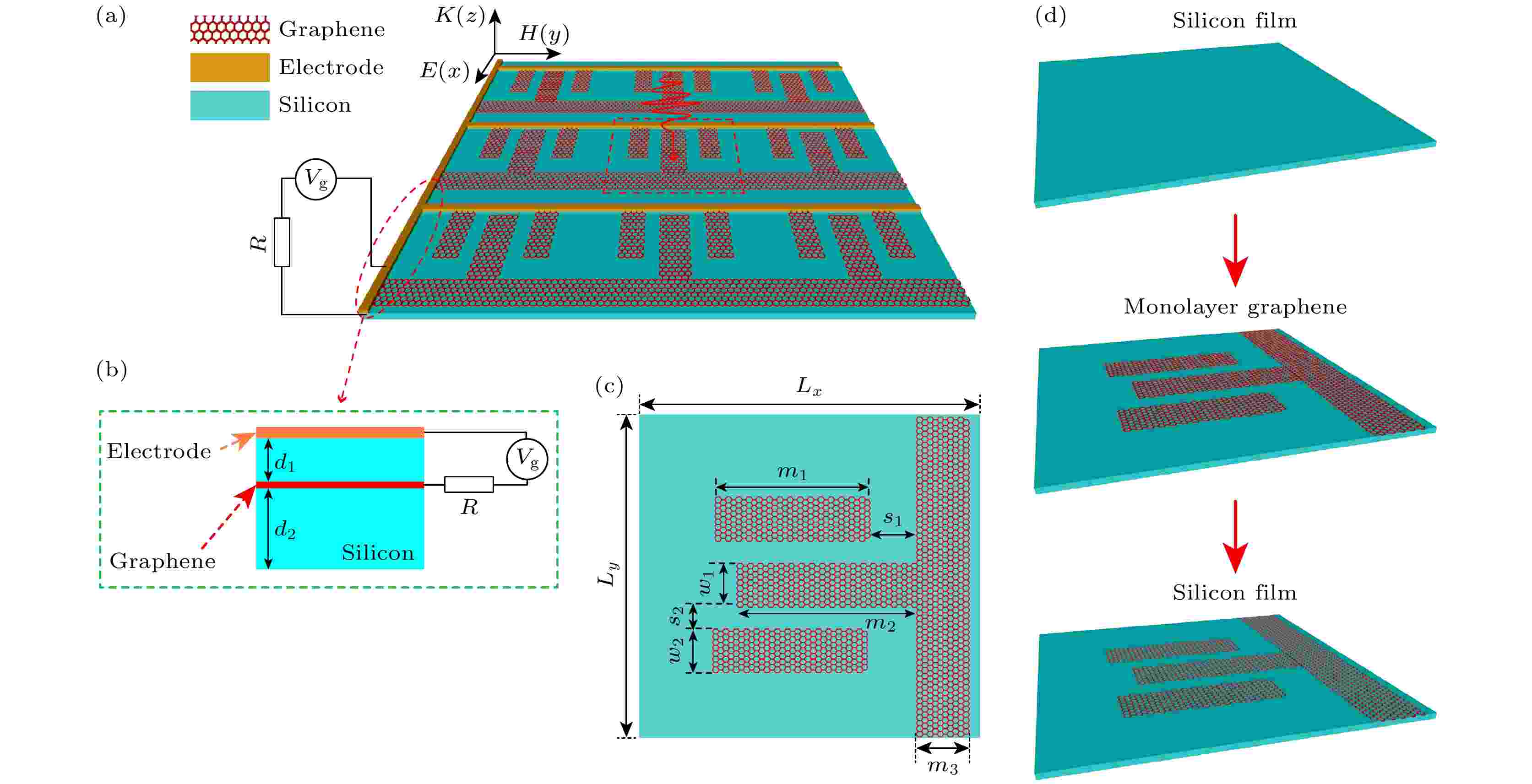 传统的多重等离子体诱导透明效应(plasmon induced transparency, PIT)的产生依赖于多个明暗模之间的耦合. 然而, 为了打破明暗模这一传统机制, 探索一种新的产生方式迫在眉睫. 本文提出一种由纵向石墨烯带和3个横向石墨烯条组成单层石墨烯超表面, 它能够通过两个单PIT之间的协同效应激发出三重PIT. 深入研究发现, 该三重PIT的物理本质源于两个单PIT之间的非相干耦合. 通过调整石墨烯的费米能级和载流子迁移率, 成功实现五频异步光开关向六频异步光开关的动态转换, 其中六频异步光开关的性能非常优异: 当频率点为3.77 THz和6.41 THz时, 调制深度和插入损耗分别达到99.31%和0.12 dB; 当频率点为4.58 THz时, 退相时间和消光比分别为3.16 ps和21.53 dB. 此外, 当调控范围集中在2.8—3.1 THz波段时, 该三重PIT体系能够展现出高达1212的群折射率. 基于以上结果, 说明该石墨烯结构有望为性能优异的慢光设备、光开关等光学器件设计提供新的理论指导.