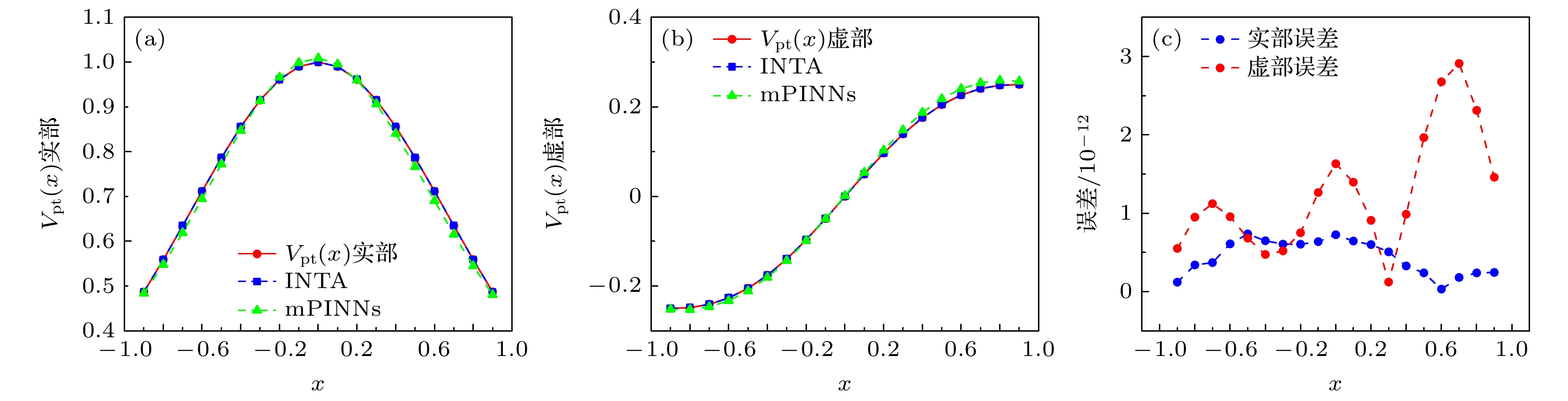 The inverse problem of reconstructing the PT-symmetric potential in a class of (1+1)-dimensional nonlinear Schrödinger equation is investigated in this work. The governing equation is given as follows: \begin{document}$ \text{i}u_t(x,t) + u_{xx}(x,t) + \alpha\left| u(x,t) \right|^2 u(x,t) + \beta\left| u(x,t) \right|^4 u(x,t) + V_{\rm PT}(x) u(x,t) = 0, $\end{document} where u(x, t) denotes the wave function in dimensionless coordinates, and the PT-symmetric potential VPT(x) = V(x)+iW(x) consists of a real part V(x) and an imaginary part iW(x), satisfying the symmetry conditions V(x) = V(–x) and W(x) = –W(x). In this inverse problem, partial boundary values of the wave function are known, while the potential \begin{document}$ V_{\rm PT}(x) $\end{document} is the unknown to be reconstructed. To address this challenge, we construct a three-level finite difference scheme for the corresponding forward problem, discretizing both the wave function and the potential. This approach leads to a nonlinear system of equations that links the known wave data to the unknown potential values. To simplify the computation, we separate the real and imaginary parts of this system and reformulate it as a real-valued nonlinear system of equations. For the numerical solution, we employ an inexact Newton method to iteratively solve the resulting nonlinear system. In each iteration, the Jacobian matrix is approximated numerically. To ensure that the reconstructed potential strictly satisfies the PT-symmetry, a parity correction mechanism is introduced at the end of the iteration process. We conduct numerical experiments under both noise-free (exact data) and noisy (inexact data) conditions. The results indicate that in both cases, the proposed method converges within a limited number of iterations and keeps the reconstruction error within the order of 10–3. These findings verify the effectiveness and robustness of this method in solving inverse problems of PT-symmetric potentials, and provide a new idea and powerful method for related numerical applications.