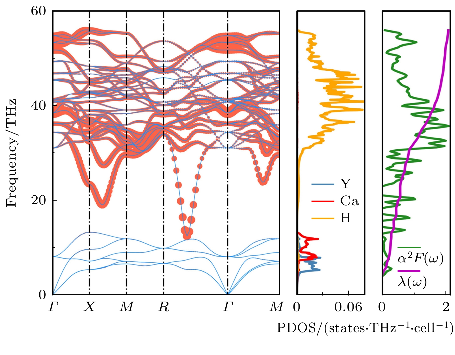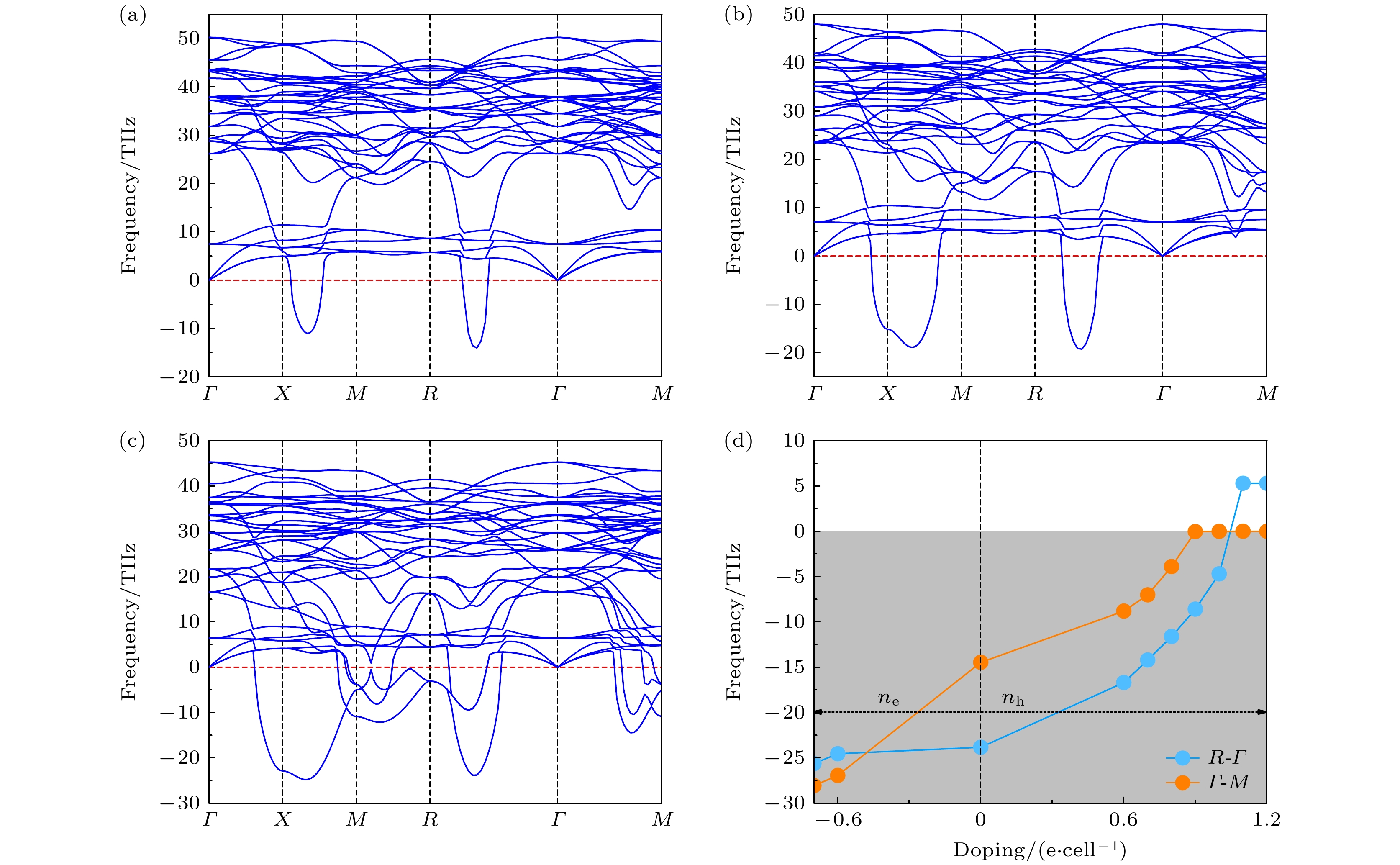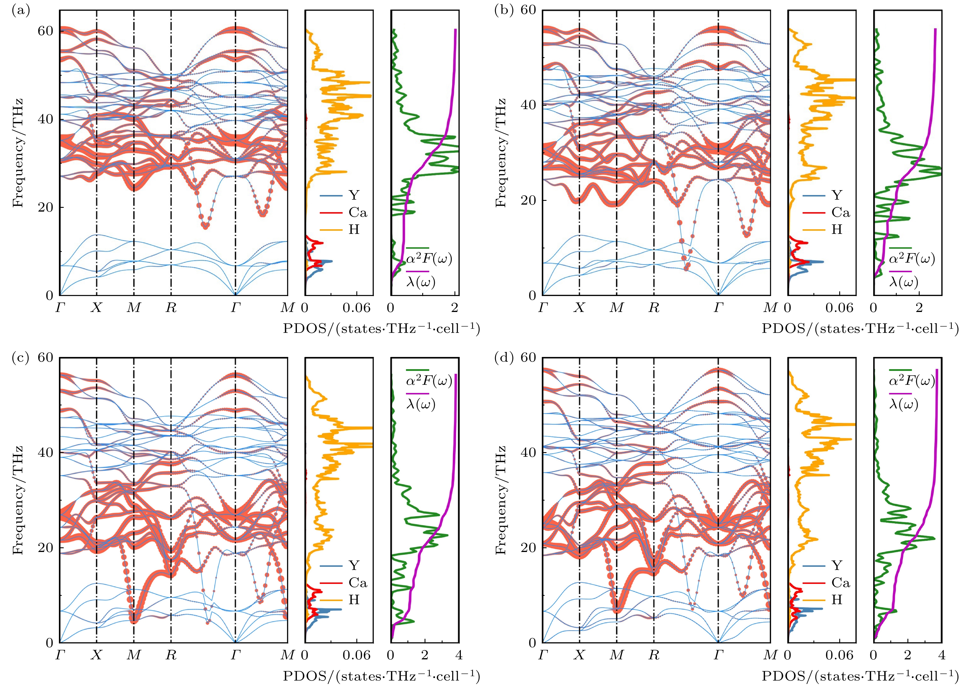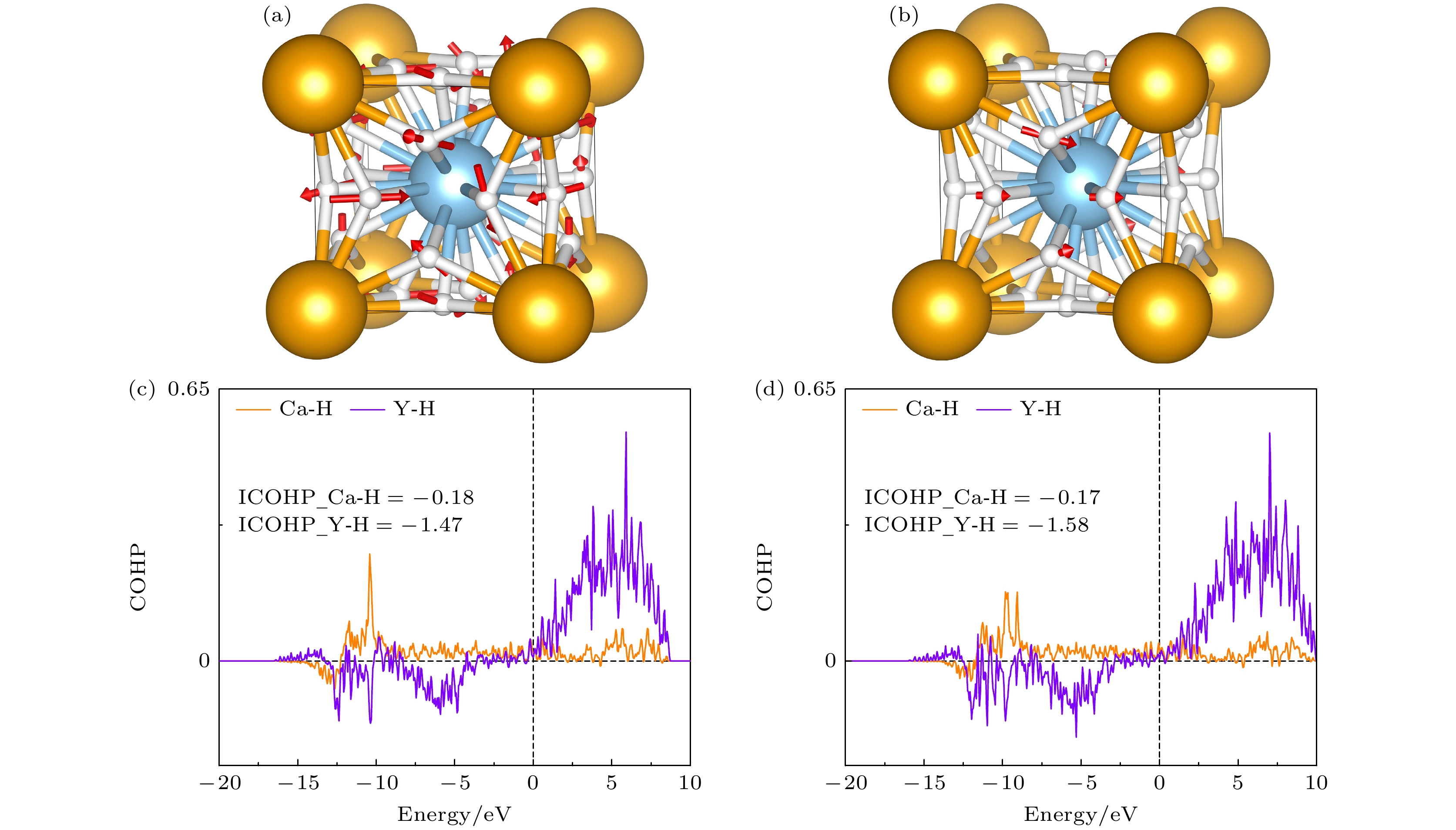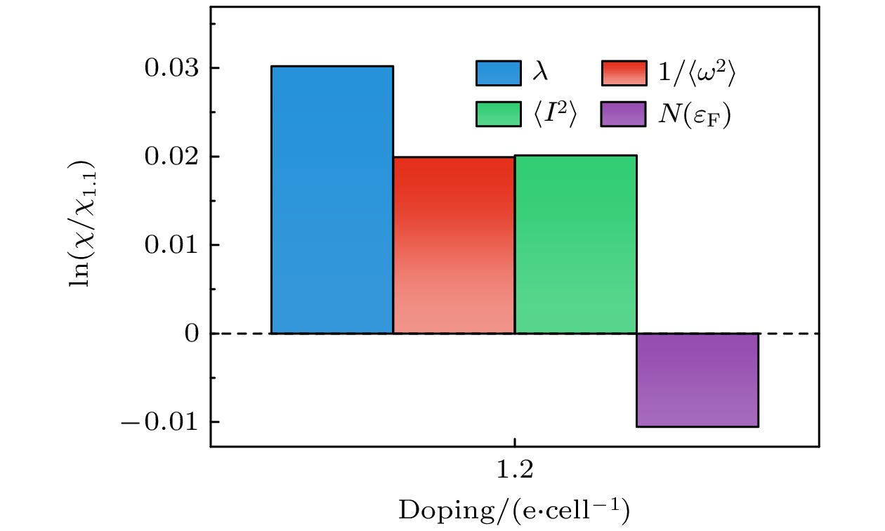 In the past few decades, achieving room-temperature superconductivity has become an unremitting pursuit of scientists. Guided by the “chemical precompression” theory, hydrogen-rich compounds have emerged as the main candidates for high-temperature superconductors, positioning them at the forefront of superconducting materials research. Extensive computational studies have identified numerous binary hydrides with predicted superconducting transition temperatures (Tc) exceeding 200 K, such as CaH6, H3S, MgH6, YH6, YH9, YH10, and LaH10. Significantly, the high-Tc super-conductivities of H3S, LaH10, CaH6, YH6, YH9 have been experimentally confirmed. Compared with binary hydrides, ternary hydrides offer more diverse chemical compositions and structures, potentially leading to enhanced properties. Zhang et al. [Zhang Z, Cui T, Hutcheon M J, et al.2022 Phys. Rev. Lett. 128 047001 ] theoretically designed a series of AXH8-type (A = Sc, Ca, Y, Sr, La, Ba; X = Be, B, Al) ternary hydrides with “fluorite-type” backbone, which were predicted to have high-Tc values under moderate pressure. Among those ternary hydrides, LaBeH8 has been experimentally confirmed to achieve a Tc value of 110 K at 80 GPa. The Tc values of ternary clathrate hydrides of Li2MgH16 and Li2NaH17 have been predicted to greatly exceed the room temperature, while the required stabilization pressures all exceeded 200 GPa. Xie et al. [Xie H, Duan D F, Shao Z J, et al. 2019 J. Phys. Condens. Matter. 31 245404 ] and Liang et al. [Liang X W, Bergara A, Wang L Y, et al. 2019Phys. Rev. B 99 100505(R) ] independently predicted CaYH12 compounds with \begin{document}$ Pm\bar 3m $\end{document} and \begin{document}$ Fd\bar 3m $\end{document} space groups, both of which exhibited high-Tc above 200 K at about 200 GPa. Other ternary hydrides, such as La-B-H, K-B-H, La-Ce-H, and Y-Ce-H, have also been extensively investigated. At current stage, a major focus of superconducting hydrides is to achieve high-temperature superconductivity at lower pressures. In this study, taking \begin{document}$ Pm\bar 3m $\end{document} (CaYH12) as a representative, we systematically investigate the effects of electron and hole doping on the dynamical stability and superconductivity in ternary hydride by first-principal calculations. The \begin{document}$ Pm\bar 3m $\end{document} (CaYH12) exhibits a Tc value of 218 K at 200 GPa, which is consistent with that reported previously. When decompressing to below 180 GPa, imaginary phonons emerge. The analysis of doping simulations demonstrates that the electron doping exacerbates the softening of the imaginary phonons, whereas hole doping eliminates the imaginary frequencies. At the pressures of 130, 100 and 70 GPa, the \begin{document}$ Pm\bar 3m $\end{document} (CaYH12) phase can be stabilized by hole doping at the concentrations of 0.9, 0.8, and 1.1 e/cell, respectively. Further electron-phonon coupling calculations show that the Tc values of \begin{document}$ Pm\bar 3m $\end{document} (CaYH12) at 130, 100 and 70 GPa are 194, 209, and 194 K at the corresponding doping level, which are only 10–20 K less than the Tc at 200 GPa. At the pressure of 70 GPa, Tc slightly decreases to 189 K at a doping level of 1.2 e/cell, primarily due to the reduced ωlog compared with that in the case of 1.1 e/cell. And the enhanced λ at 1.2 e/cell is mainly contributed by the average electron-phonon coupling matrix element \begin{document}$ \langle {I^2}\rangle $\end{document} and average phonon frequency \begin{document}$ {\langle {\omega ^2}\rangle ^{1/2}} $\end{document} , rather than the electronic density of states at the Fermi level N(εF). These results indicate that hole doping represents a promising and effective strategy for optimizing the superconductivity of \begin{document}$ Pm\bar 3m $\end{document} (CaYH12) by maintaining high-Tc at low pressures. Our study paves an avenue for realizing high-temperature superconductors at low pressure.