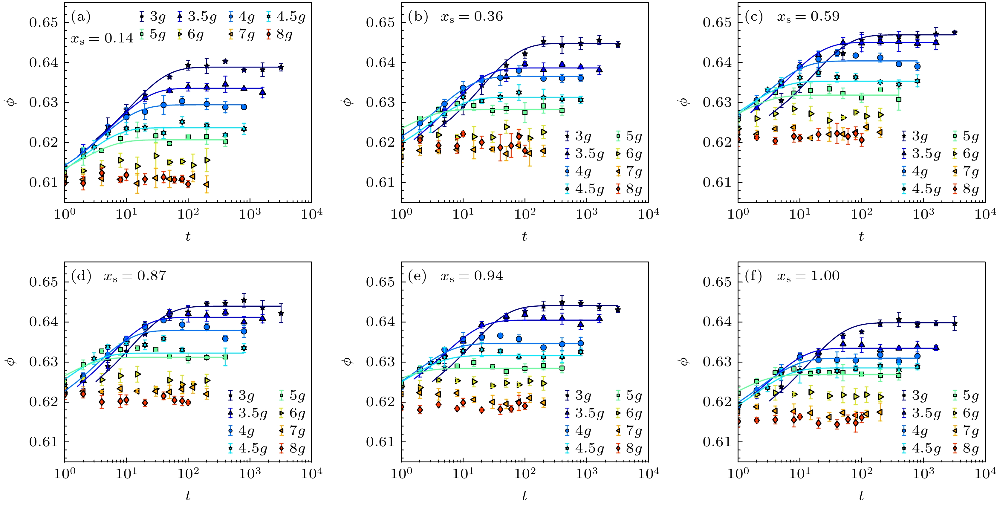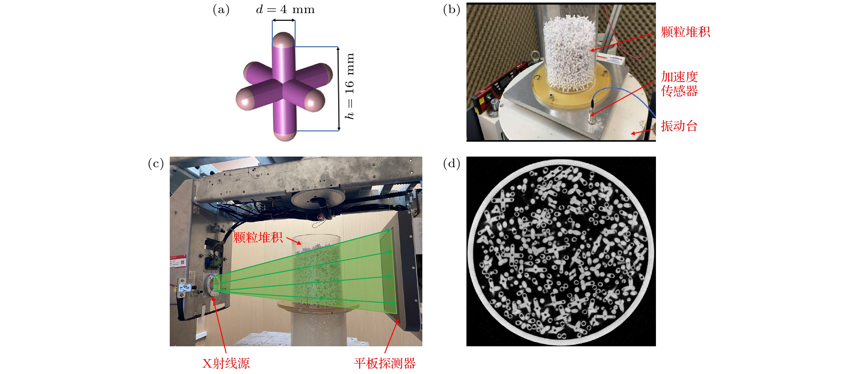 Granular materials are ubiquitous in nature and industrial production. Investigating the structure of packing is crucial for understanding the physical properties of granular materials. Owing to their symmetry and simple geometry, spherical particles have long served as an ideal model for studying granular packing, yielding numerous research outcomes. In recent years, the influence of particle shape on packing structures has drawn considerable attention. Non-spherical particles, characterized by complex shapes, tend to interlock and form stable structures. Their significant geometric cohesion notably affects the stability and porosity of granular packing. To investigate the structural evolution and compaction mechanisms of three-dimensional concave particles (hexapod-shaped) under external tapping, focusing on the role of geometric cohesion in enhancing mechanical stability, we employ hexapod-shaped particles that are composed of three mutually orthogonal spherocylinders in this study. The granular system subjected to consecutive tapping can reach a stationary state. In the densifying process of the system, packing structures with different volume fractions will be formed. Meanwhile, by combining with X-ray tomography, we can obtain the microstructure. The findings reveal that the volume fraction of “hexapod” particle packing is significantly lower than that of hard-sphere systems. The compaction curves of “hexapod” particles across varying tapping intensities are accurately described by the Kohlrausch-Williams-Watt (KWW) law, which is consistent with hard-sphere system, suggesting a relaxation process governed by heterogeneous modes. Furthermore, both the volume fraction of the steady-state granular packing and the average contact number exhibit an inverse relationship with tapping intensity, increasing as the intensity decreases. A detailed statistical analysis of contact points indicates that the compaction process of “hexapod” particles is predominantly influenced by two factors: the augmentation in the number of neighboring contacting particles and the modification of contact forms. These factors collectively enhance the degree of interlocking among hexapods within the system. Specifically, the compaction process is primarily propelled by the escalation in neighboring contacts and the refinement of contact types, particularly the increase in cylinder-cylinder (cc) contact. This rise in cc contact significantly enhances mechanical stability through strengthening geometric interlocking. This study reveals the structural evolution characteristics of non-spherical particles in the compaction process and provide important experimental support for understanding the unique mechanical and dynamic properties of concave particle packing. This research not only enriches the experimental data of granular packing structures but also offers a new perspective for exploring the universal laws of packing for particles of different shapes. This study is to lay a more solid foundation for the theoretical research and industrial applications of granular materials, thereby promoting technological progress and innovation in related fields.