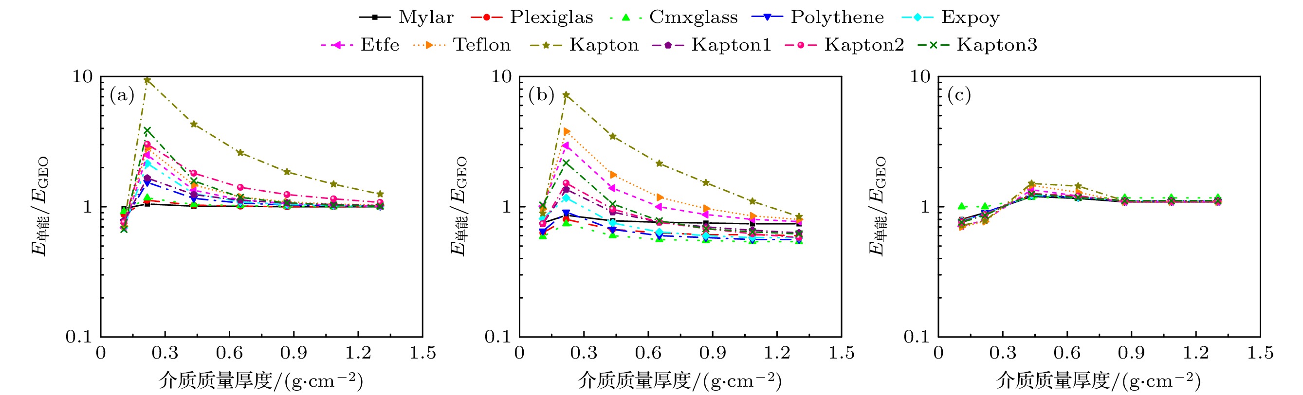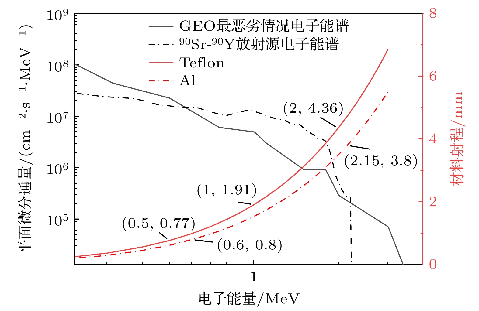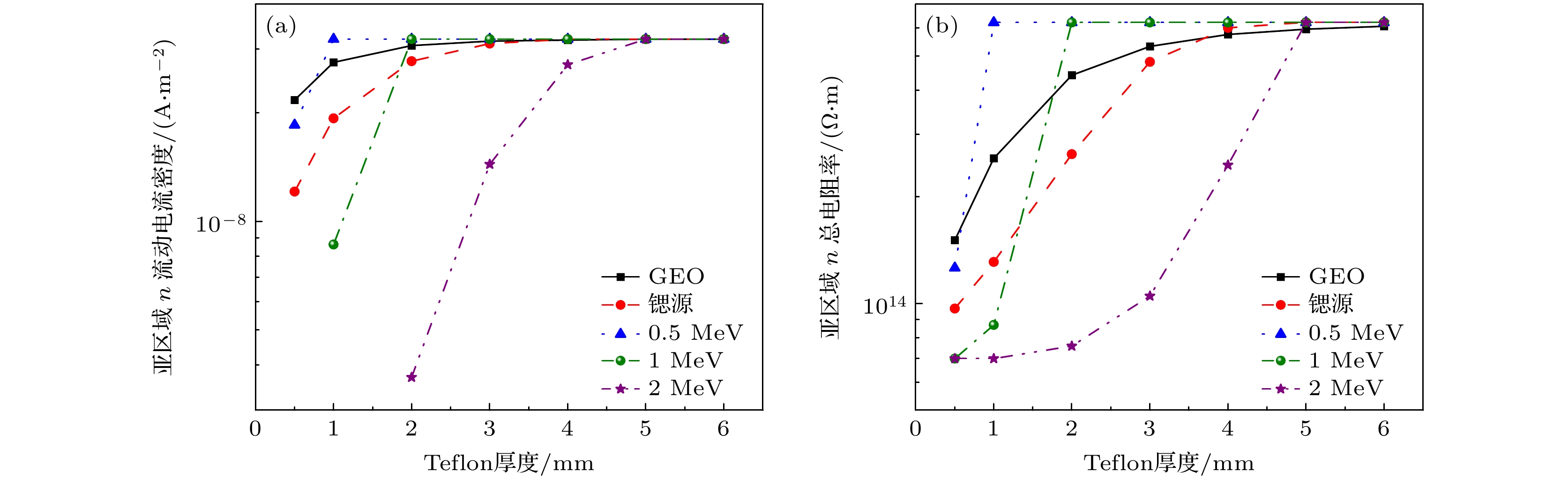 The deep charge-discharge effect in dielectrics induced by high-energy electrons is a major cause of spacecraft anomalies and failures in geosynchronous orbit (GEO) and medium earth orbit (MEO). To evaluate the in-orbit deep charging and discharging behavior of satellite dielectric materials, ground-based simulation testing is essential. However, due to limitations in ground test conditions, it is necessary to conduct a comprehensive analysis of the effectiveness of such evaluations. This paper introduces the key physical model of deep dielectric charging, taking a grounded planar dielectric with an irradiated inner surface as a representative case to analyze the internal charging process and the evolution of critical physical quantities governing deep charging phenomena. In this study, the DICTAT simulation tool is used to investigate the charging effects of three distinct electron sources: strontium-90 decay electrons, monoenergetic electron beams, and GEO ambient electrons. In ground-based simulations, researchers typically use monoenergetic or continuous-spectrum electron beams with flux intensities on the order of pA·cm–2 to irradiate test specimens with varying shielding configurations, dielectric thicknesses, and material compositions, aiming to replicate in-situ deep charging phenomena and assess associated risks. Therefore, the simulations are conducted under electron flux levels representative of GEO orbital conditions. This study focuses on polytetrafluoroethylene (PTFE) dielectric samples under three typical spacecraft shielding configurations: 1) externally mounted on the cabin surface, 2) housed inside the pressurized cabin, and 3) embedded within standalone electronic subsystems, while systematically incorporating variations in dielectric thickness. The results show that the disparity between the electron flux deposited within the dielectric bulk and the flux at dielectric interfaces critically governs the severity of charging under varying irradiation conditions. Two key findings emerge as follows. 1) Discrepancies in electron energy spectra and their influence: the differences in energy spectra between the test electron source and the actual space environment lead to variations in deposited electron flux across different aluminum shielding thicknesses and dielectric depths. This discrepancy influences the equilibrium charging state by changing the current density and conductivity in sub-region-n (the dielectric-ground interface), potentially resulting in either underestimation or overestimation of deep charging effects compared with true space conditions. 2) Effectiveness of different electron sources for simulation: strontium-based sources (e.g. Sr-90 β-decay spectra) effectively replicate the internal charging behavior of Teflon (PTFE) materials on cabin exteriors and inside pressurized compartments under GEO-like electron flux conditions. 0.5 MeV monoenergetic electron beams are suitable for simulating surface dielectric charging on cabin exteriors. However, higher-energy monoenergetic beams exhibit limited applicability at varying dielectric thicknesses. Despite the similar flux intensity used in the tests compared with that in the actual space environment, the differences in energy distribution between the test beams and space electrons can lead to underestimation or overestimation of the charging effects. Based on the simulation results, this work provides recommendations for selecting appropriate test beam parameters under different shielding conditions to improve the accuracy of ground-based evaluations of in-orbit deep dielectric charging.