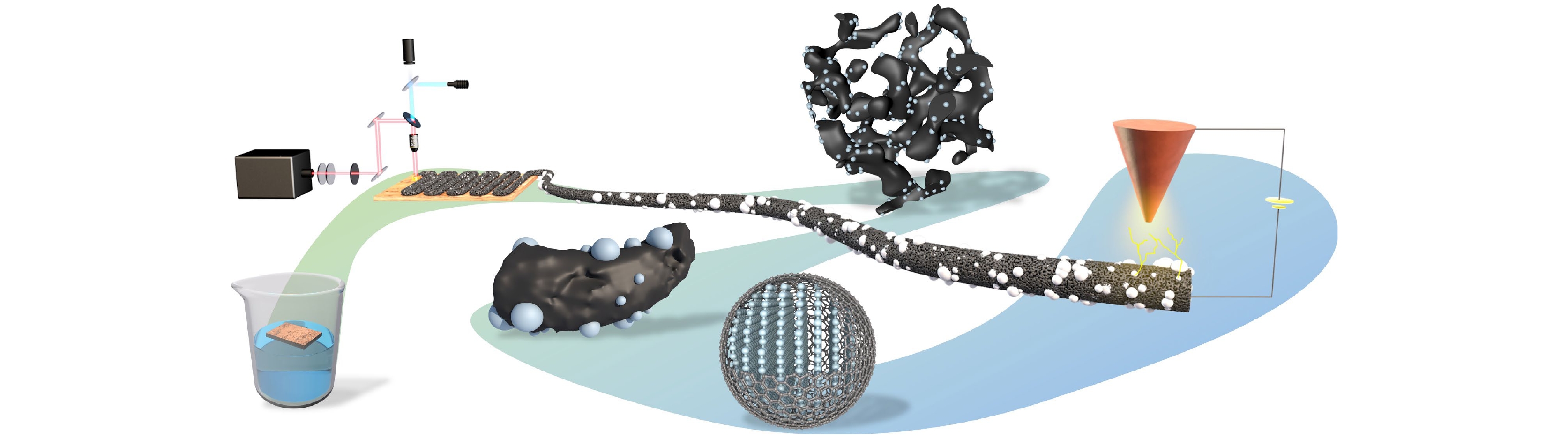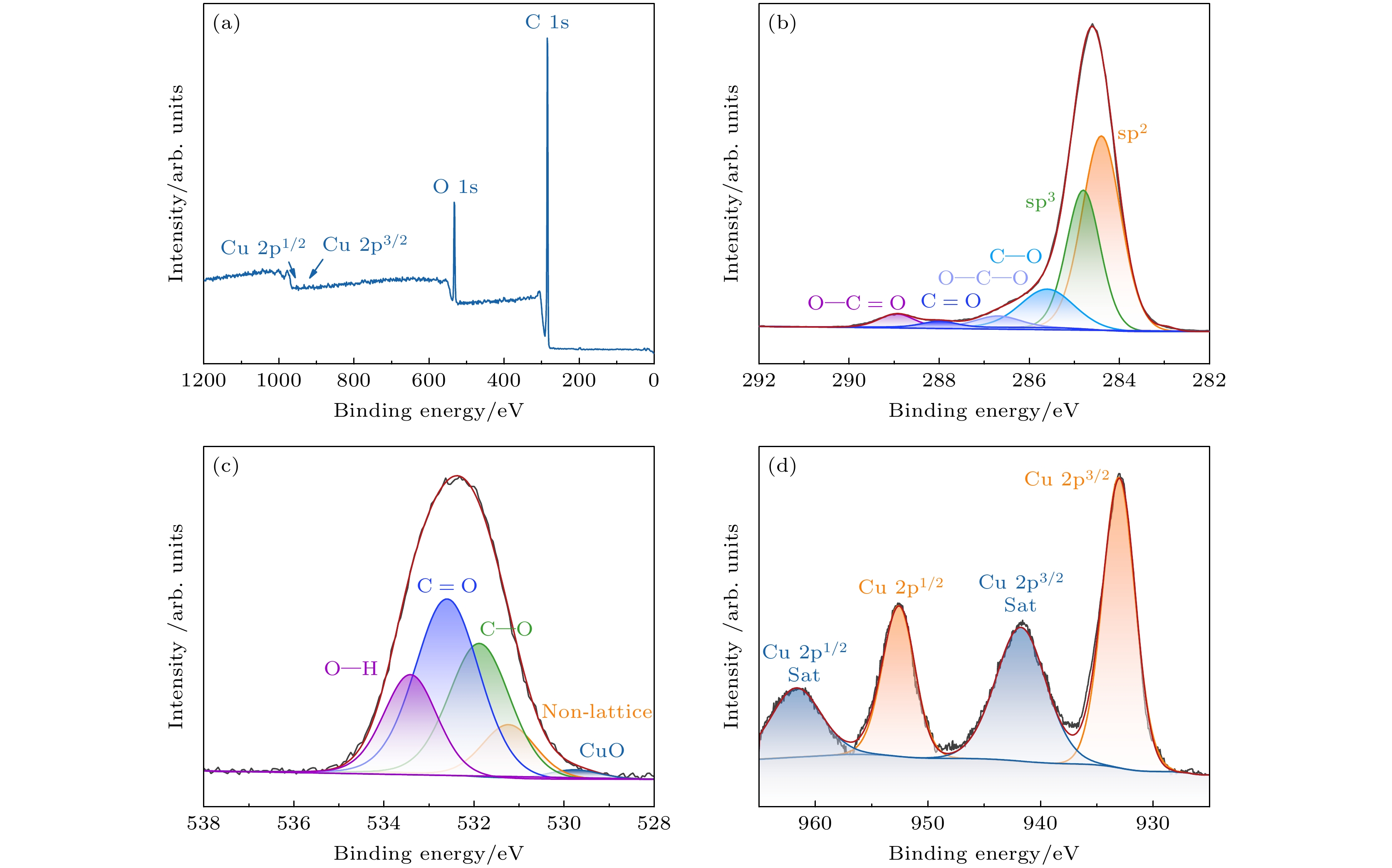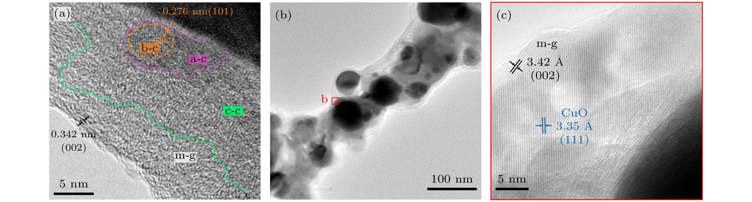 Three-dimensional (3D) graphene materials have excellent electronic emission performance and mechanical stability, showing significant advantages in the field of high current density field emitters. In this study, copper oxide modified three-dimensional graphene composites (LIG/CuO) are prepared in situ by a femtosecond laser one-step method, which realizes the simultaneous regulation of cork carbonization and copper oxidation. Shallow copper-rich precursors are constructed by copper salt infiltration and ascorbic acid reduction. Laser irradiation is used to synchronously induce the carbonization of cellulose into few-layer graphene and the transformation of Cu into CuO, forming a three-dimensional fiber network of microcrystalline graphene coated with CuO nanoparticles (30–80 nm). The structure exhibits excellent field emission performance: the threshold field of preparing pure laser- induced graphene (LIG) is ~2.12 V/μm and the field enhancement factor is ~8223. After optimizing CuO loading, the threshold field of LIG/CuO-5 is reduced to 1.57 V/μm, the field enhancement factor rises up to ~8823, and the ultra-high current density of 22.71 mA/cm2 is achieved at 2.89 V/μm. The density functional theory (DFT) calculations show that the electrons at the heterojunction interface transfer from CuO to graphene, which reduces the work function of graphene from 4.833 eV to 4.677 eV, and the band bending of CuO surface synergistically reduces the tunneling barrier. In addition, the local electric field enhancement effect of CuO nanoparticles and the optimized distribution density synergistically increase the effective emission point density. The performance improvement is mainly attributed to three synergistic effects: 1) the three-dimensional porous graphene network provides abundant tip emission sites; 2) the introduction of CuO nanoparticles reduces the work function of the composite material from 4.833 eV to 4.667 eV, effectively reducing the electron escape barrier; 3) the heterojunction interface forms a directional electron migration channel under a positive bias electric field, combined with the excellent conductivity of LIG, which significantly improves the electron tunneling efficiency.