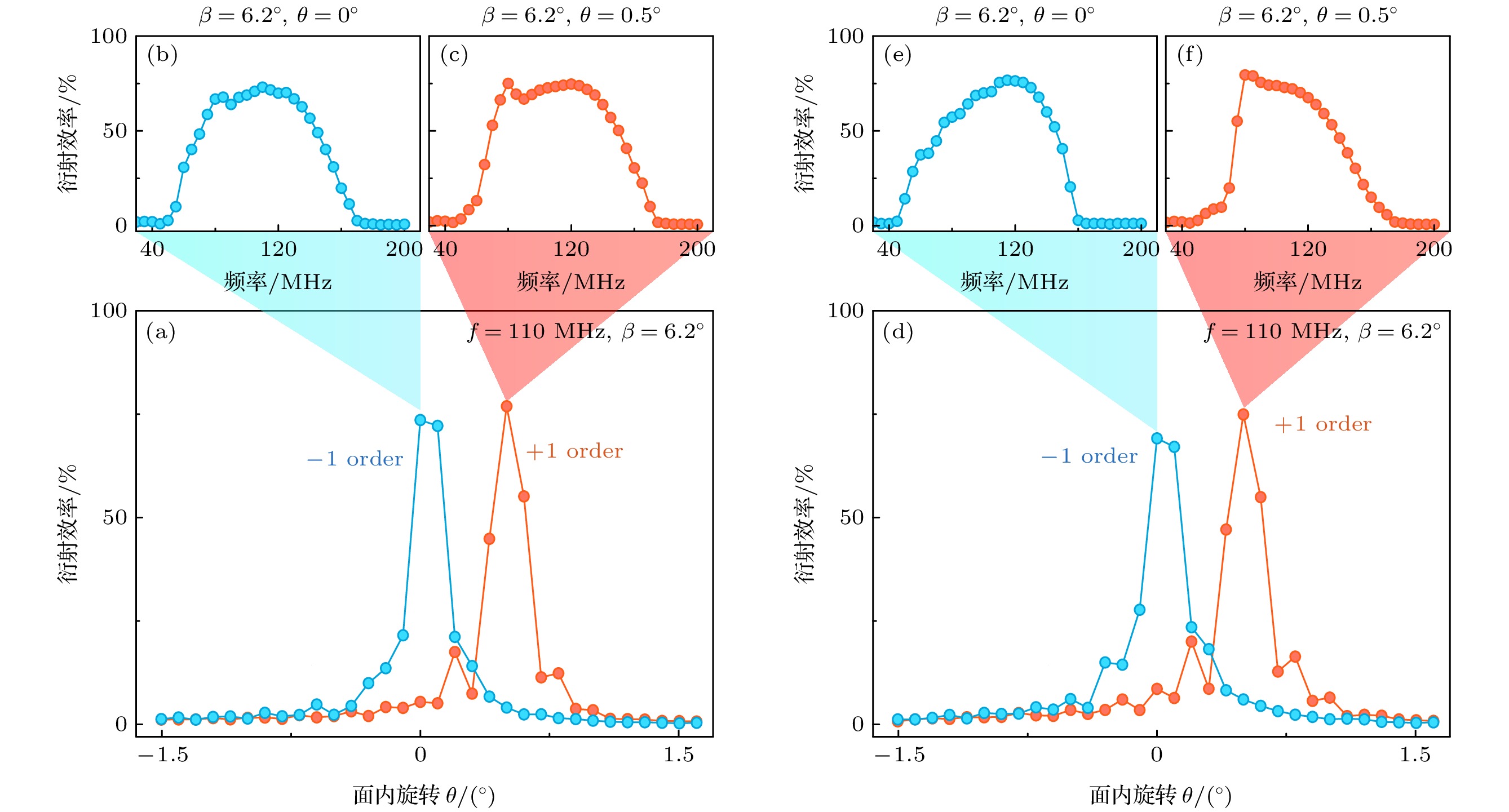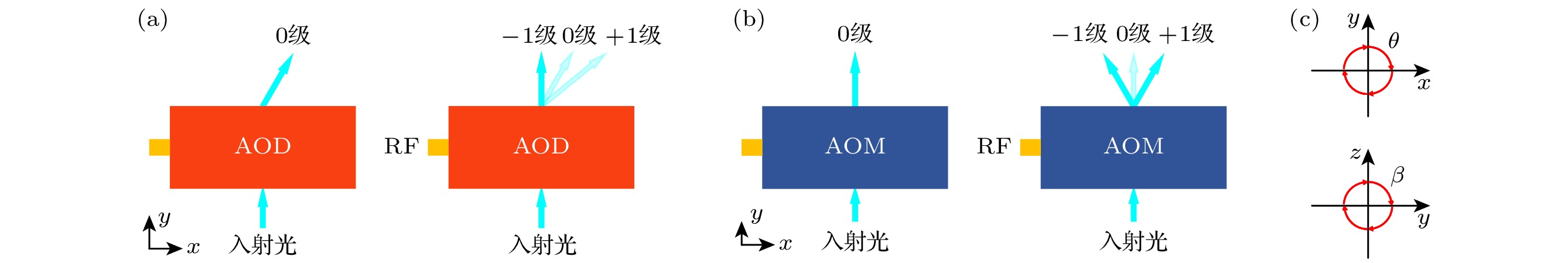 Neutral atom arrays have emerged as one of the most promising physical platforms for quantum computing and quantum information processing due to their precise single-atom control and tunable strong interactions. The acousto-optic deflector (AOD) is a key device for constructing and manipulating neutral atom arrays, enabling rapid and high-precision atom trapping and arrangement. However, TeO2-based anomalous Bragg AODs still face challenges in practical applications, such as unclear broadband diffraction conditions, polarization sensitivity, and low efficiency, which limit their performance in multi-degree-of-freedom control. This study investigates the acousto-optic effects in AOD and acousto-optic modulator (AOM), and reveals their differences in diffraction efficiency, polarization characteristics, and applications. By adjusting the azimuthal angle of the AOD, we measure the efficiency and RF bandwidth of the ±1st-order diffracted beams under horizontal and vertical polarization incident light, and propose an experimental method to determine the broadband diffraction center frequency and diffraction order. Additionally, we systematically characterize the operational parameters of AOM, clarifying their performance mechanisms and application-specific differences compared with those of AOD. The main conclusions are as follows: 1) The beam deflection performance of an AOD is closely related to the ultrasonic mode or acoustic velocity: a lower sound velocity results in a larger deflection angles. For TeO2 crystals, when a shear wave propagates along the [110] axis (sound velocity: 0.617 km/s), the diffraction angle reaches 0.842 mrad/MHz (laser wavelength: 532 nm). In contrast, when TeO2 is used in AOM with a longitudinal wave along the [001] axis (sound velocity: 4.26 km/s), the diffraction angle decreases to 0.133 mrad/MHz under the same wavelength. 2) To achieve high diffraction efficiency and a broad operational frequency range, the AOD must satisfy the phase-matching condition for anomalous Bragg diffraction. Taking the AOD (model: AA DTSX-250) for example, it operates in a unidirectional incident mode: when horizontally polarized light (extro-ordinary light) is incident, only the –1st-order diffracted beam satisfies the anomalous Bragg condition. The beam undergoes polarization conversion to vertically polarized light (ordinary light), enabling high-efficiency broadband deflection (center frequency: 82 MHz, bandwidth: 45 MHz). To support future two-dimensional deflection implementations, the input and output surfaces of the TeO2 crystal are fabricated with slight bevel angles, ensuring collinearity between the –1st-order diffracted beam and the incident beam at the center frequency. In other cases—(i) +1st-order diffraction of horizontally polarized light and (ii) ±1st-order diffraction of vertically polarized light—the anomalous Bragg condition is not met. These beams retain their original polarization and allow only narrowband deflection. These results demonstrate that AODs, leveraging anomalous acousto-optic effects, can achieve high diffraction efficiency, wide frequency tuning ranges, and large deflection angles, making them suitable for high-speed, high-precision beam steering applications. In contrast, AOMs utilize normal acousto-optic effects to perform rapid modulation of beam intensity, frequency, and phase, and are widely used in laser communication and optical fiber transmission. This study provides a detailed technical reference for understanding the operational principles of AODs and their applications in programmable neutral atom arrays.