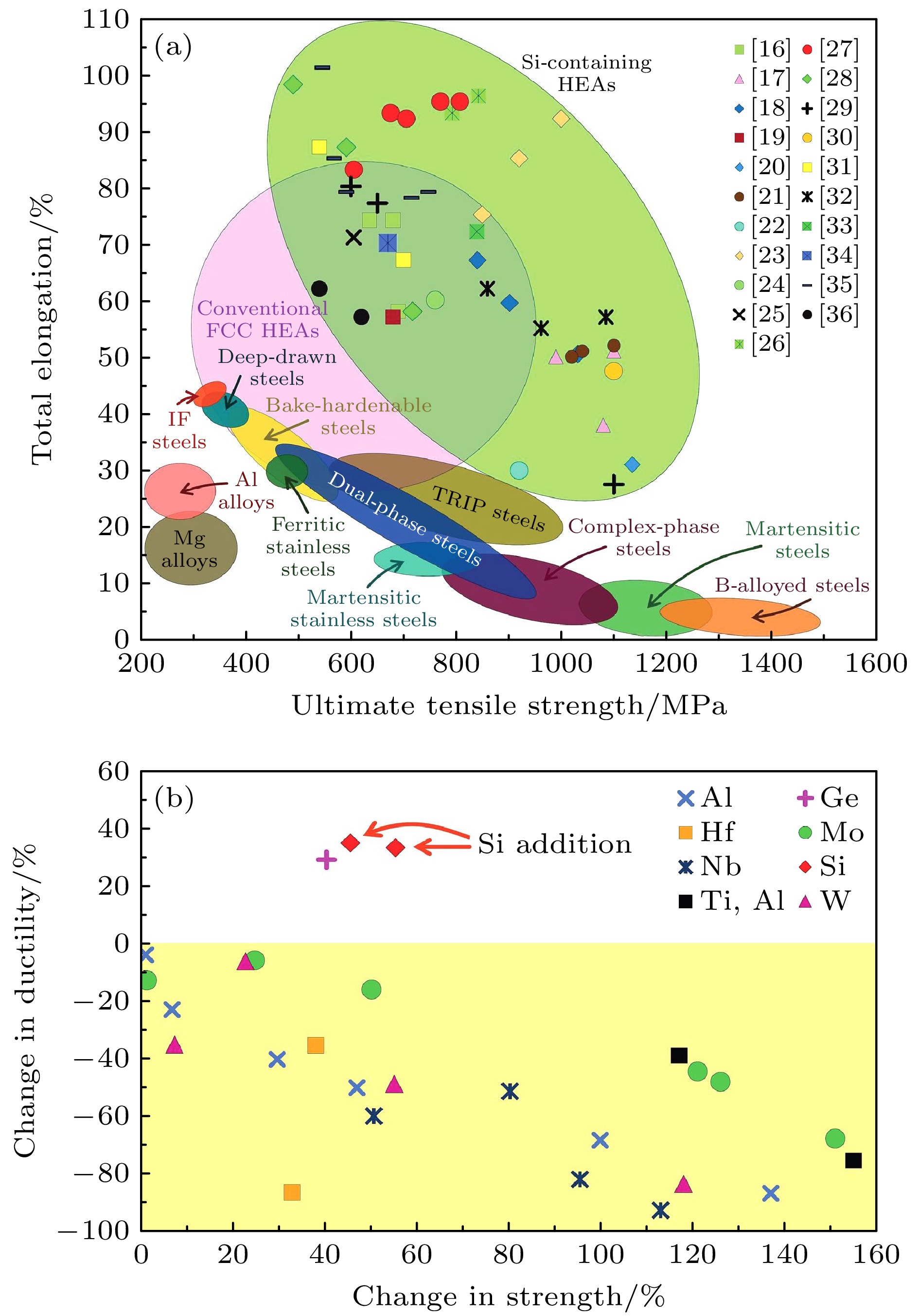 High-entropy alloys (HEAs), representing a significant category of multi-component alloys, have attracted significant attention due to their outstanding mechanical and functional properties. This review focuses on the order-disorder phase transition mechanisms in silicon-based HEAs, systematically addressing the thermodynamic and kinetic regulation principles and their effects on material performance. The research has shown that adding silicon improves atomic size matching and mixing enthalpy, allowing high-entropy alloys to have both ordered and disordered phases, thereby significantly enhancing their mechanical and physicochemical properties. The evolution of ordered and disordered phases is strictly controlled by fabrication processes. Advanced fabrication techniques, such as laser cladding and powder metallurgy, as well as temperature/pressure modulation, can precisely control phase formation and layered structure, achieving synergistic strengthening through multiphase structures. Rapid cooling techniques such as laser cladding suppress the nucleation and growth of brittle intermetallic compounds, which is beneficial for single-phase FCC structures. On the contrary, controlled annealing treatments can induce phase transitions towards ordered BCC/B2 structures, enhancing high-temperature stability. Advanced techniques such as powder plasma arc additive manufacturing (PPA-AM) utilize rapid solidification to refine grain size and effectively disperse second phases. Thermodynamic drivers, particularly the competition between entropy and enthalpy quantified by the parameter Ω, as well as external stimuli such as pressure, provide precise control over the phase transition pathways and final microstructures. Furthermore, the incorporation of sillicon enhances functional performance, including increasing electrical resistivity, customizing magnetic responses, and improved high-temperature oxidation resistance through the formation of Al2O3/SiO2 layers. Despite these advancements, there are still challenges in understanding atomic-scale dynamics of phase transitions and expanding cost-effective manufacturing processes. Future efforts should integrate multiscale characterization, computational modeling, and performance validation under extreme conditions to accelerate the engineering applications of silicon-based HEAs in aerospace, energy storage, and electronic devices.