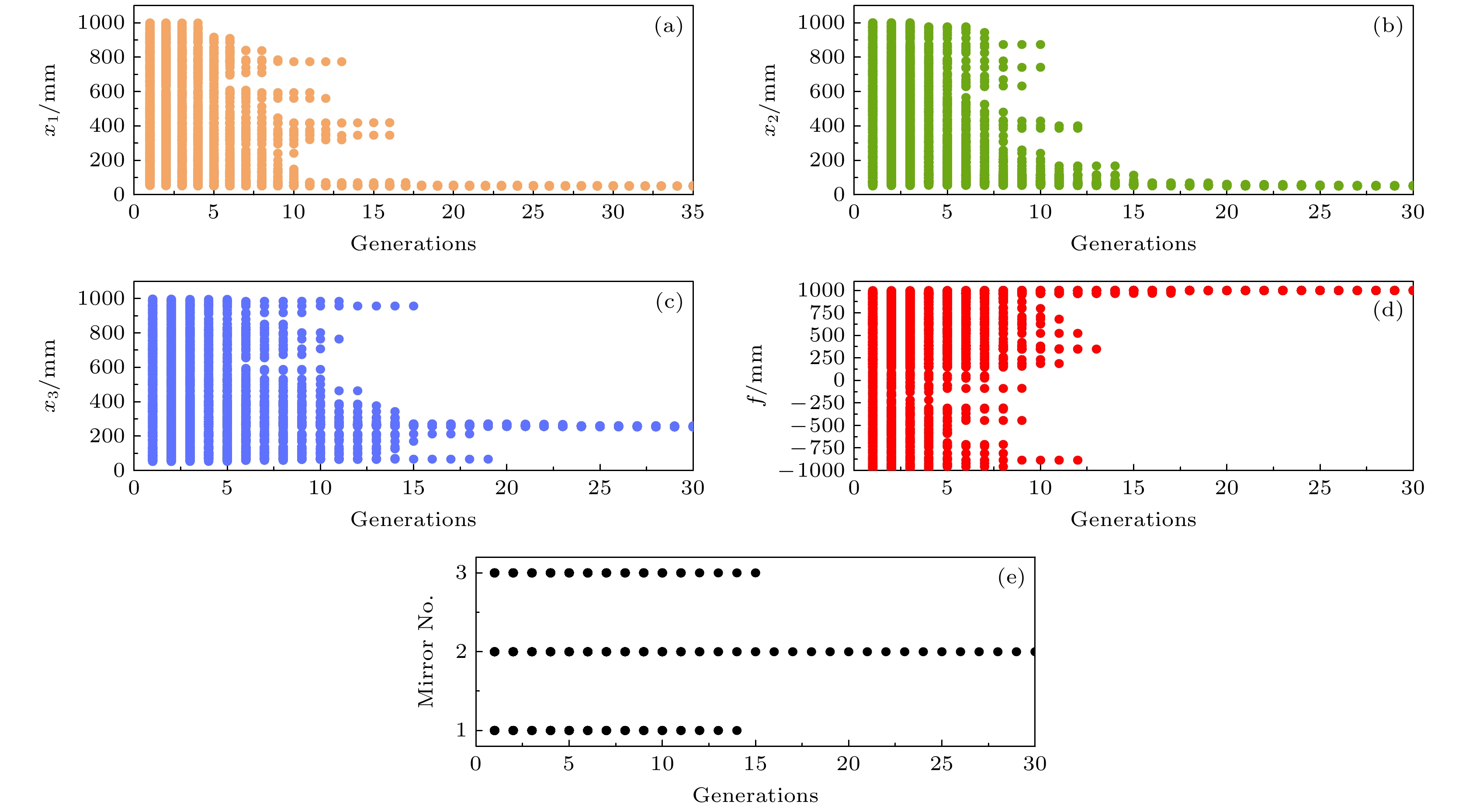 This study presents an optimization method of generating a wide stable-zone, large mode field operation nanosecond laser oscillator based on artificial intelligence algorithms. The work is motivated by the need of the large mode field laser cavities in compact size with variable thermal focal length. A physics model of light field propagation inside the resonator is established by combining thermal lensing tolerance. A multi-objective optimization function is designed to simultaneously balance the beam quality, thermal stability, and cavity compactness. Several algorithms, such as simulated annealing, particle swarm optimization, and genetic algorithms are compared, and ultimately, efficient searching for optimal solutions in complex multi-dimensional parameter spaces is achieved. In the system design, the parameters of cavity segment length, intracavity lens, and Gaussian mirror (VRM) are optimized. Therefore, an optimized cavity structure is experimentally implemented and Q-switching operations are perform. The results demonstrate stable laser output at 100 Hz repetition rate with 190 mJ pulse energy and 7 ns pulse width, and beam quality factors\begin{document}$ M_x^2 $\end{document} = 2.1 and \begin{document}$ M_y^2 $\end{document} = 1.9 respectively, and the total length of the cavity is only 540 mm, which demonstrates the compactness of laser design. Furthermore, numerical simulations are conducted to compare a variety of resonator configurations and assess the influence of different parameters on the cavity’s thermal stability. After the optimization, the thermal stability curve of the laser resonator shows a significant decrease in slope near the large-mode-field region, indicating an improvement in thermal length adaptability. This enhancement is crucial for ensuring long-term stable operation of high-repetition-rate nanosecond laser oscillators. In summary, this study provides an efficient approach for designing compact, thermally stable, large-mode-area resonators, and valuable insights into designing compact laser with high power output.