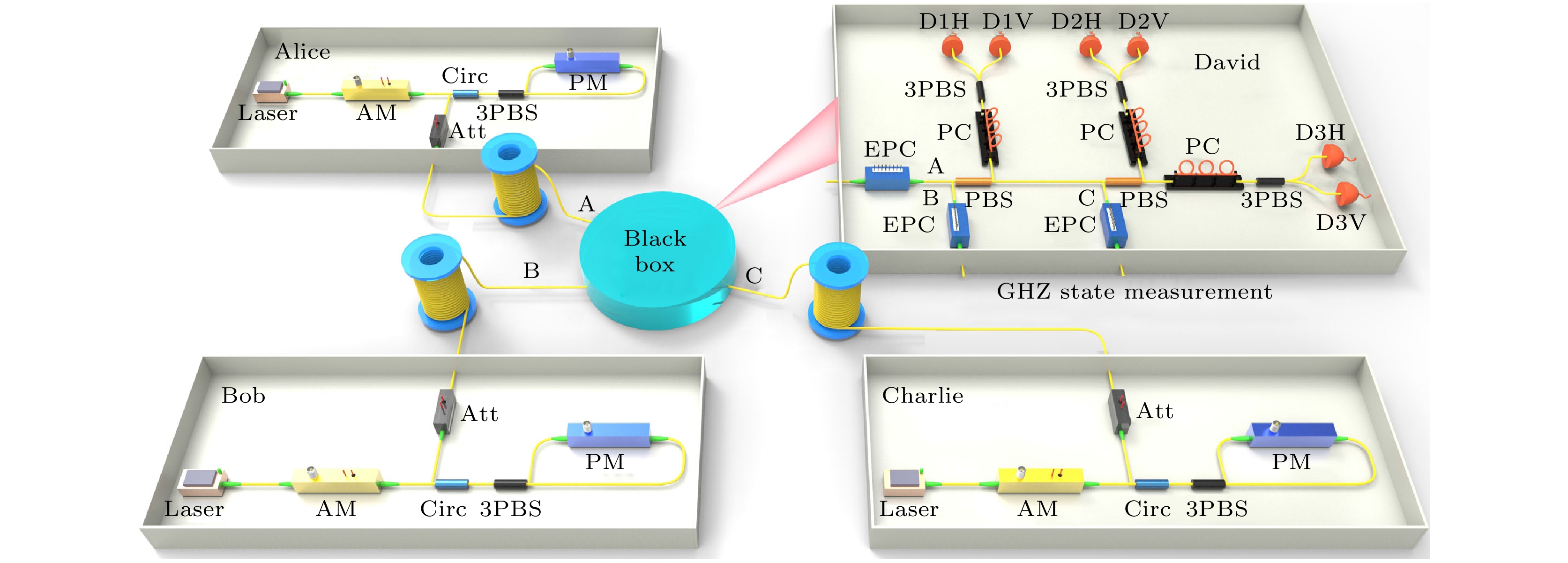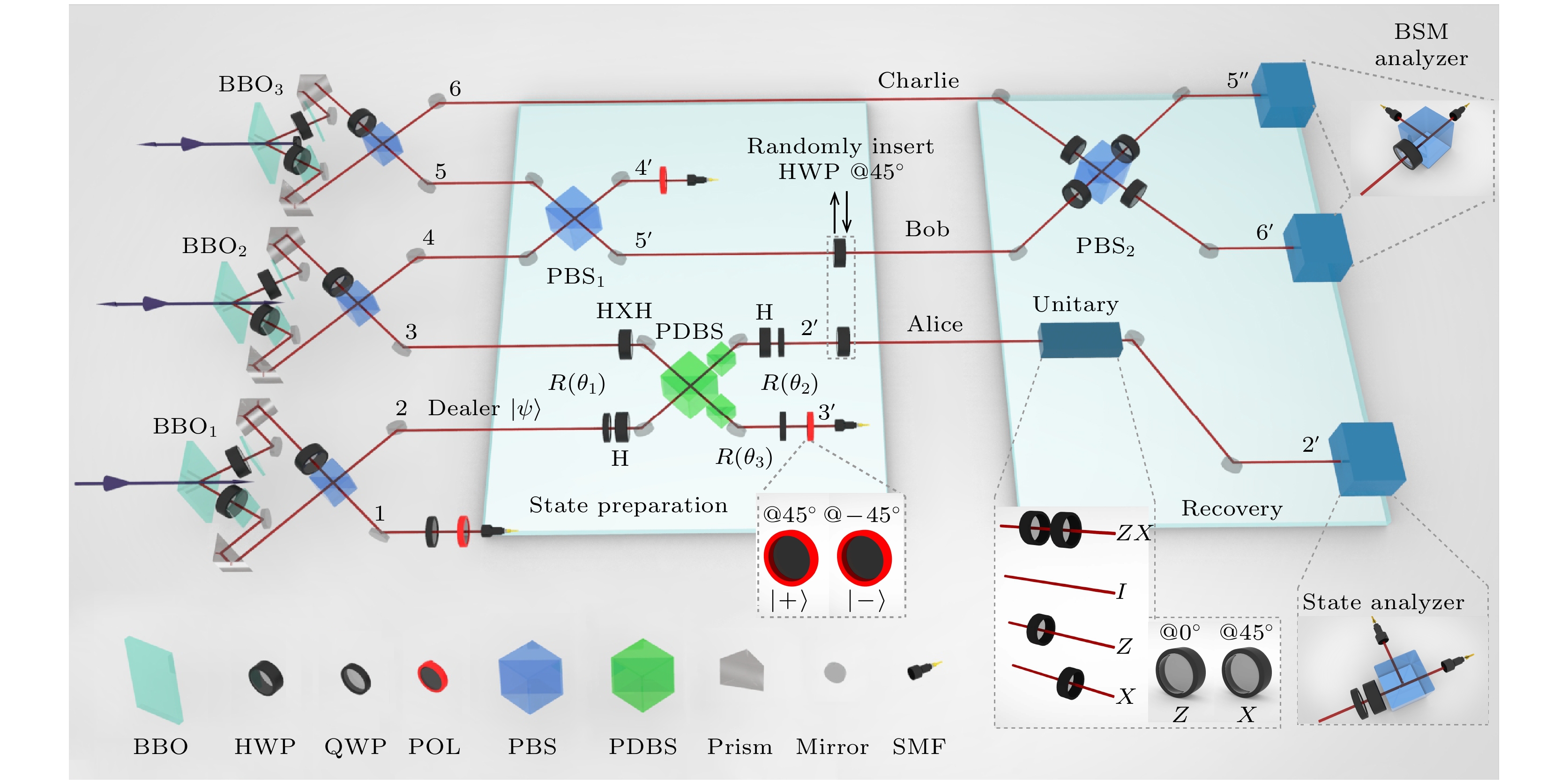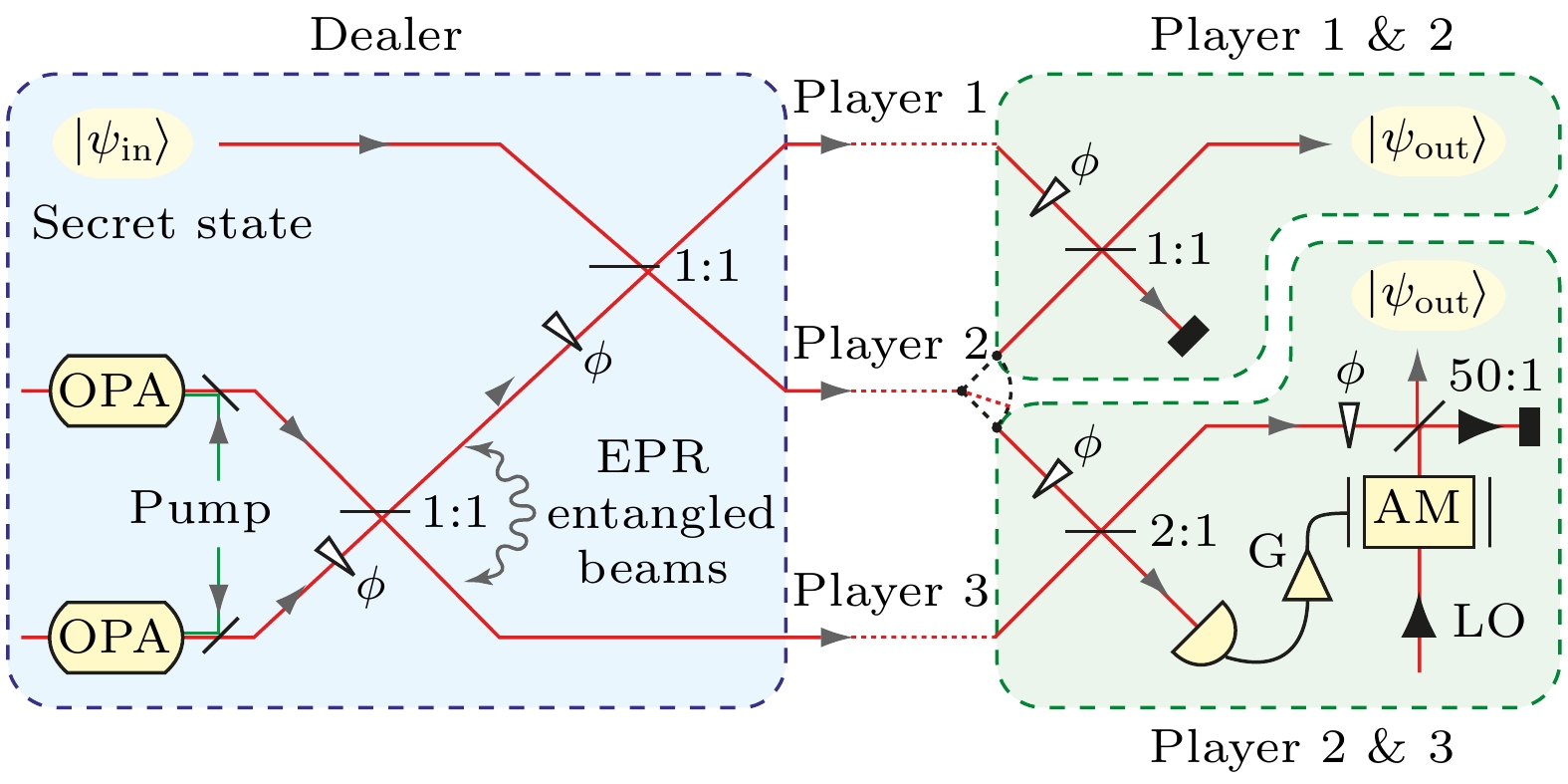 Ghost imaging is closely related to image encryption, since the random speckle patterns are often utilized. In the two-dimensional (2D) case, computational ghost imaging can be realized through \begin{document}$ \boldsymbol{L}\boldsymbol{X}{\boldsymbol{R}}^{\mathrm{T}}=\boldsymbol{Y} $\end{document} , where \begin{document}$ \boldsymbol{X} $\end{document} is a 2D object, \begin{document}$ \boldsymbol{Y} $\end{document} is the bucket detection signals reshaped into a 2D form, and \begin{document}$ \boldsymbol{L} $\end{document} and \begin{document}$ \boldsymbol{R} $\end{document} are two random matrices. In this work, a scenario of flexible image encryption in ghost imaging in the 2D case is proposed. The image is encrypted into the bucket detection signals by arbitrarily arranging the two random matrices (\begin{document}$ \boldsymbol{L} $\end{document} and \begin{document}$ \boldsymbol{R} $\end{document} ) and other two permutation matrices (\begin{document}$ {\boldsymbol{P}}_{1} $\end{document} and \begin{document}$ {\boldsymbol{P}}_{2} $\end{document} ). The permutation matrices are used to disrupt the distribution of the bucket signals. Considering that the specific size of the image may not be square but rectangle, eight ways of image encryption are investigated in this work. Four of them use only one permutation matrix (\begin{document}$ {\boldsymbol{P}}_{1} $\end{document} or \begin{document}$ {\boldsymbol{P}}_{2} $\end{document} ), and they are \begin{document}$ {\boldsymbol{P}}_{1}\boldsymbol{L}\boldsymbol{X}{\boldsymbol{R}}^{\mathrm{T}}={\boldsymbol{Y}}_{1} $\end{document} , \begin{document}$ \boldsymbol{L}{\boldsymbol{P}}_{1}\boldsymbol{X}{\boldsymbol{R}}^{\mathrm{T}}={\boldsymbol{Y}}_{2} $\end{document} , \begin{document}$ \boldsymbol{L}\boldsymbol{X}{\boldsymbol{P}}_{2}{\boldsymbol{R}}^{\mathrm{T}}={\boldsymbol{Y}}_{3} $\end{document} , \begin{document}$ \boldsymbol{L}\boldsymbol{X}{\boldsymbol{R}}^{\mathrm{T}}{\boldsymbol{P}}_{2}={\boldsymbol{Y}}_{4} $\end{document} . The other four use two permutation matrices (\begin{document}$ {\boldsymbol{P}}_{1} $\end{document} and \begin{document}$ {\boldsymbol{P}}_{2} $\end{document} ), and they are \begin{document}$ {\boldsymbol{P}}_{1}\boldsymbol{L}\boldsymbol{X}{\boldsymbol{P}}_{2}{\boldsymbol{R}}^{\mathrm{T}}={\boldsymbol{Y}}_{5} $\end{document} , \begin{document}$ {\boldsymbol{P}}_{1}\boldsymbol{L}\boldsymbol{X}{\boldsymbol{R}}^{\mathrm{T}}{\boldsymbol{P}}_{2}={\boldsymbol{Y}}_{6} $\end{document} , \begin{document}$ \boldsymbol{L}{\boldsymbol{P}}_{1}\boldsymbol{X}{\boldsymbol{P}}_{2}{\boldsymbol{R}}^{\mathrm{T}} $\end{document} \begin{document}$ ={\boldsymbol{Y}}_{7} $\end{document} , and \begin{document}$ \boldsymbol{L}{\boldsymbol{P}}_{1}\boldsymbol{X}{\boldsymbol{R}}^{\mathrm{T}}{\boldsymbol{P}}_{2}={\boldsymbol{Y}}_{8} $\end{document} . Specifically, in experiment, the measurement matrix is generated by the Kronecker product of the random matrices and permutation matrices. According to the 8 ways of image encryption, the 8 measurement matrices are \begin{document}$ {\boldsymbol{A}}_{1}=\left({\boldsymbol{P}}_{1}\boldsymbol{L}\right)\otimes \boldsymbol{R}, $\end{document} \begin{document}$ {\boldsymbol{A}}_{2}=\left(\boldsymbol{L}{\boldsymbol{P}}_{1}\right)\otimes \boldsymbol{R}, $\end{document} \begin{document}$ {\boldsymbol{A}}_{3}=\boldsymbol{L}\otimes \left(\boldsymbol{R}{\boldsymbol{P}}_{2}^{\mathrm{T}}\right) $\end{document} , \begin{document}$ {\boldsymbol{A}}_{4}=\boldsymbol{L}\otimes \left({\boldsymbol{P}}_{2}^{\mathrm{T}}\boldsymbol{R}\right) $\end{document} , \begin{document}$ {\boldsymbol{A}}_{5}=\left({\boldsymbol{P}}_{1}\boldsymbol{L}\right)\otimes \left(\boldsymbol{R}{\boldsymbol{P}}_{2}^{\mathrm{T}}\right) $\end{document} , \begin{document}$ {\boldsymbol{A}}_{6}=\left({\boldsymbol{P}}_{1}\boldsymbol{L}\right)\otimes $\end{document} \begin{document}$ \left({\boldsymbol{P}}_{2}^{\mathrm{T}}\boldsymbol{R}\right) $\end{document} , \begin{document}$ {\boldsymbol{A}}_{7}=\left(\boldsymbol{L}{\boldsymbol{P}}_{1}\right)\otimes \left(\boldsymbol{R}{\boldsymbol{P}}_{2}^{\mathrm{T}}\right) $\end{document} , and \begin{document}$ {\boldsymbol{A}}_{8}=\left(\boldsymbol{L}{\boldsymbol{P}}_{1}\right)\otimes \left({\boldsymbol{P}}_{2}^{\mathrm{T}}\boldsymbol{R}\right) $\end{document} . These measurement matrices are used to form the random speckle patterns which are then projected onto the object. A spatial light modulator (SLM) is employed to load the objects and random speckle patterns. A charge coupled device (CCD) is used to obtain the bucket detection signals. As truncated singular value decomposition (TSVD) is an effective denoising method, it is used to obtain the pseudoinverse matrices of the random matrices used in the decryption process. Only when the pseudoinverse matrices of the random matrices, as well as the correct sequences of the random and permutation matrices, are known in each way, can the image be successfully decrypted. Otherwise, image decryption will not be successful. The structural similarity (SSIM), peak signal-to-noise ratio (PSNR), and correlation coefficient (CC) are used to evaluate the quality of the decrypted images. The SSIMs of object and the 2D bucket detection signals are very low, indicating the successfully encryption. The PSNRs and CCs of the successfully decrypted images are better than those of unsuccessful images. The successfully decrypted images clearly reconstruct the image of the object, while the unsuccessful images are in a mess. Our method provides a new idea of image encryption in ghost imaging, and image encryption is therefore enhanced and made flexible. Moreover, the present protocol can be combined with other image encryption techniques to form a more flexible protocol, which also has some application prospects in other image processing such as watermarking and image hiding.