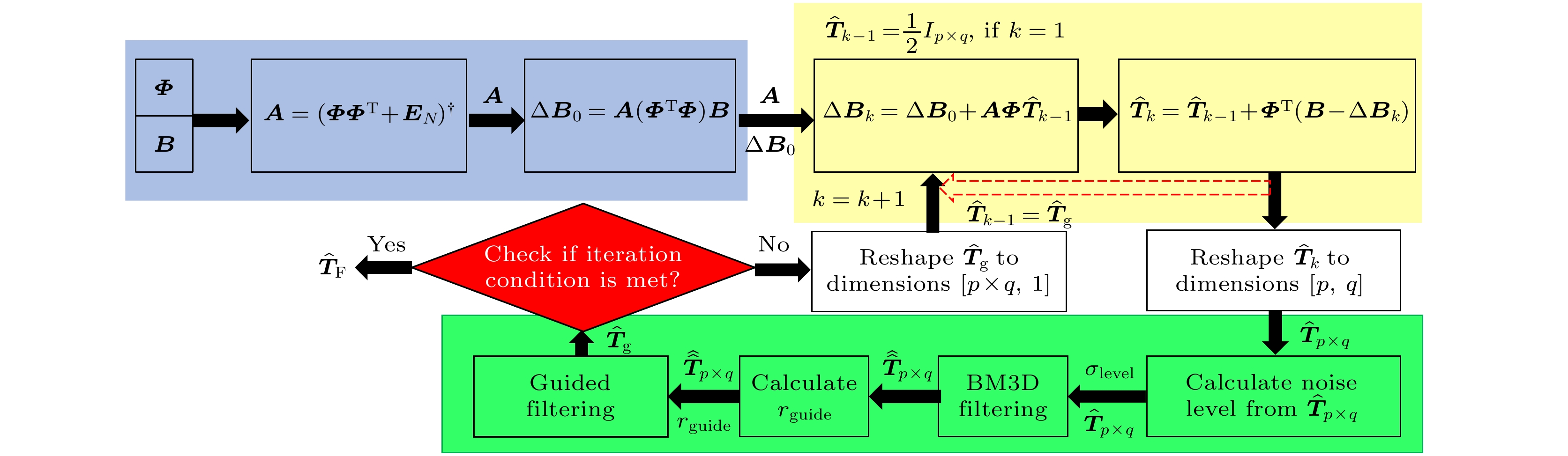 This paper introduces an adaptive blind noise dynamic filtering for ghost imaging reconstruction (ABNDF-GIR), a novel method of optimizing ghost imaging data with a limited number of measurements, significantly improving image quality and peak signal-to-noise ratio (PSNR). To address the challenges of noise and undersampling, we first enhance the stability of the measurement matrix by using pseudoinversion and a unit matrix, and calculate correction terms for bucket detector observations to optimize the reconstruction process. A balanced all-one column vector is used as the initial value to accelerate convergence. For iterative computation, we propose a novel filtering and denoising technique, the adaptive denoising window-based guided filtering with BM3D (ADW-BG), which integrates blind noise estimation, block matching and 3D filtering, and guided filtering. This dynamic filtering method effectively preserves important details during each iteration, and can achieve high-quality target reconstruction even with fewer measurements. Extensive simulations and experimental results verify that our method is significantly superior to traditional filtering methods and various compressiv sensing algorithms, especially in edge preservation and texture detail enhancement. The proposed technique provides a key technical advancement for the application of ghost imaging in fields such as remote sensing and medical imaging, showing significant advantages in real-world imaging scenarios.