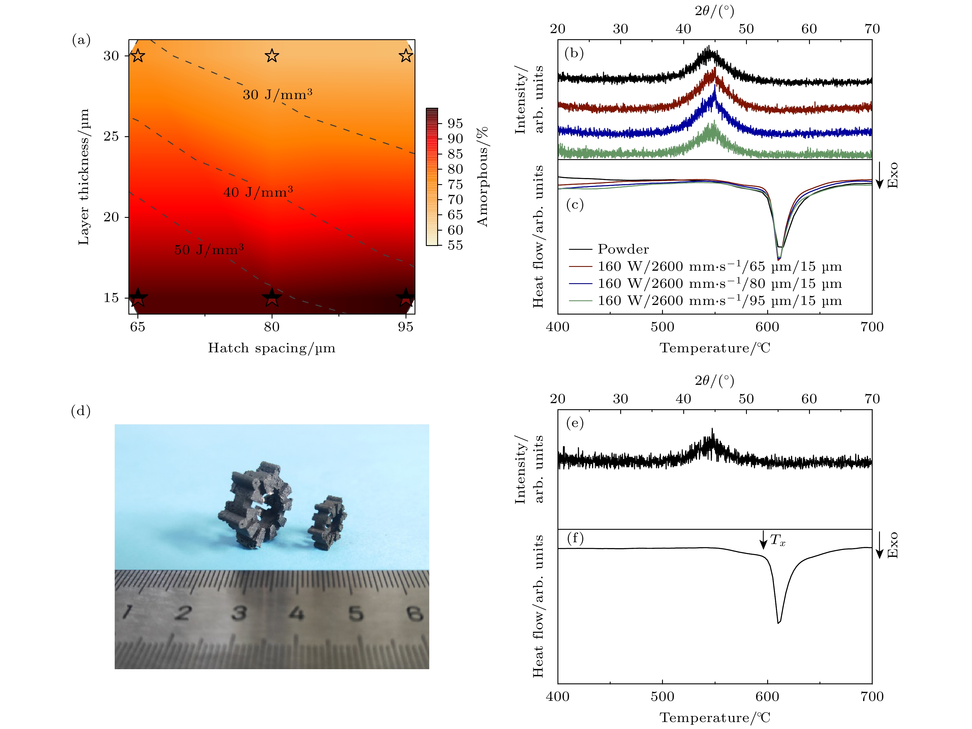 Fe-based amorphous alloys have exceptional properties such as low coercivity and core loss. In recent years, the development of amorphous alloys by using selective laser melting (SLM) technology has become the focus of attention. However, the glass-forming ability (GFA) and mechanical properties pose challenges for fabricating Fe-based amorphous alloys with complex geometries. This work aims to establish fundamental processing-(micro) structure-property links in Fe-based amorphous alloys processed by selective laser melting (SLM). With that purpose, a low-energy-input melt pool is achieved and the overlap quality between adjacent melt tracks and successive deposition layers is enhanced, through optimization of printing parameters. The Fe-based amorphous alloy is obtained with a high relative density of 94.3% and low coercivity of 0.5 Oe. Furthermore, the saturation magnetization of the printed alloy increases to 0.89 T compared with that of the powder feedstock. This work overcomes the mutual constraint between the GFA and part quality in fabricating of complex-structure Fe-based amorphous alloys, and is of great significance for promoting the application of Fe-based amorphous alloys.