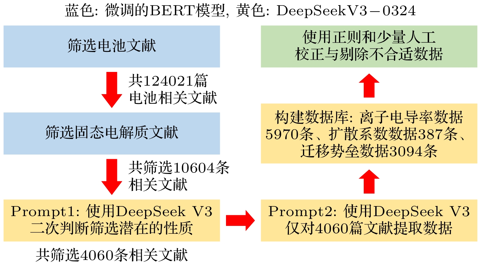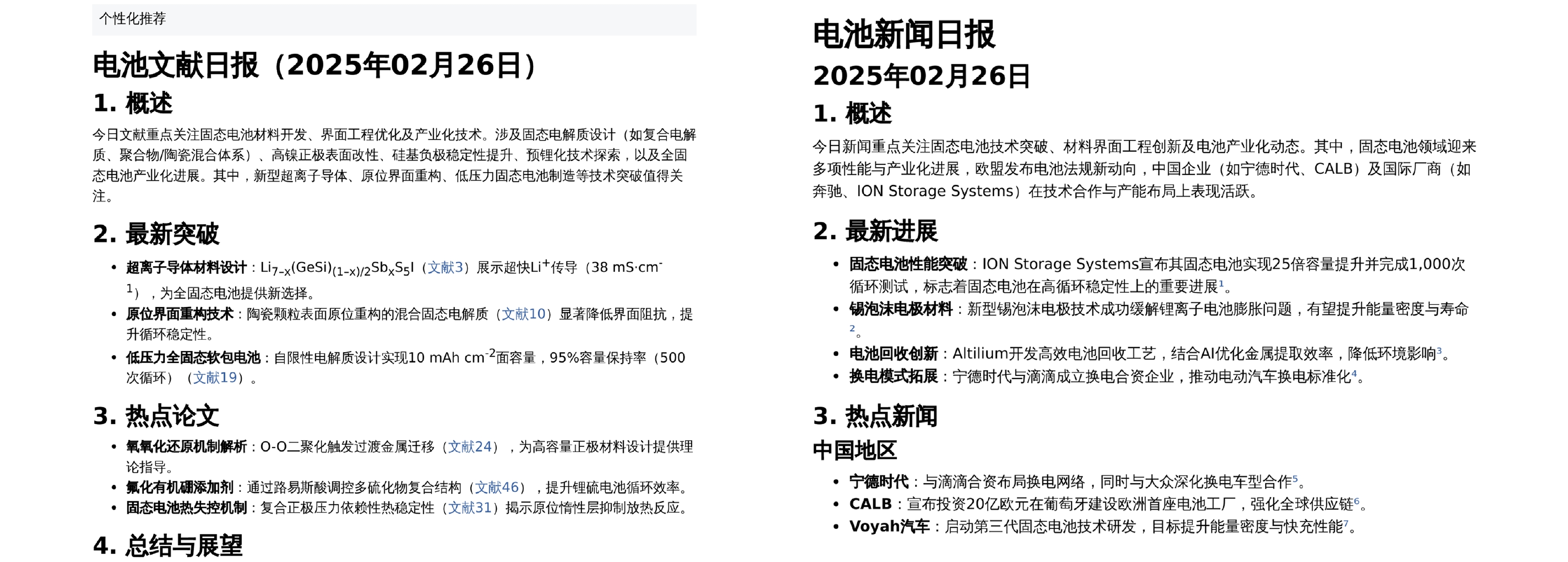 The emergence of large language models has significantly advanced scientific research. Representative models such as ChatGPT and DeepSeek R1 have brought notable changes to the paradigm of scientific research. While these models are general-purpose, they have demonstrated strong generalization capabilities in the field of batteries, especially in solid-state battery research. In this study, we systematically screen 5309268 articles from key journals up to 2024, and accurately extract 124021 papers related to batteries. Additionally, we comprehensively search through 17559750 patent applications and granted patents from the European Patent Office and the United States Patent and Trademark Office up to 2024, identifying 125716 battery-related patents. Utilizing these extensive literature and patents, we conduct numerous experiments to evaluate the structured output capabilities of knowledge base, contextual learning, instruction adherence, and language models. Through multi-dimensional model evaluations and analyses, the following points are found. First, the model exhibits high accuracy in screening literature on inorganic solid-state electrolytes, equivalent to the level of a doctoral student in the relevant field. Based on 10604 data entries, the model demonstrates good recognition capabilities in identifying literature on in-situ polymerization/solidification technology. However, its understanding accuracy for this emerging technology is slightly lower than that for solid-state electrolytes, requiring further fine-tuning to improve accuracy. Second, through testing with 10604 data entries, the model achieves reliable accuracy in extracting inorganic ionic conductivity data. Third, based on solid-state lithium battery patents from four companies in South Korea and Japan over the past 20 years, this model proves effective in analyzing historical patent trends and conducting comparative analyses. Furthermore, the model-generated personalized literature reports based on the latest publications also show high accuracy. Fourth, by utilizing the iterative strategy of the model, we enable DeepSeek to engage in self-reflection thinking, thereby providing more comprehensive responses. The research results indicate that language models possess strong capabilities in content summarization and trend analysis. However, we also observe that the model may occasionally experience issues with numerical hallucinations. Additionally, while processing a large number of battery-related data, there is still room for optimization in engineering applications. According to the characteristics of the model and the above test results, we utilize the DeepSeek V3-0324 model to extract data on inorganic solid electrolyte materials, including 5970 ionic conductivity entries, 387 diffusion coefficient entries, and 3094 migration barrier entries. Additionally, it includes over 1000 data entries related to chemical, electrochemical, and mechanical properties, covering nearly all physical, chemical, and electrochemical properties related to inorganic solid electrolytes. This also means that the application of large language models in scientific research has shifted from auxiliary research to actively promoting its development. The datasets presented in this paper may be available at the website:
