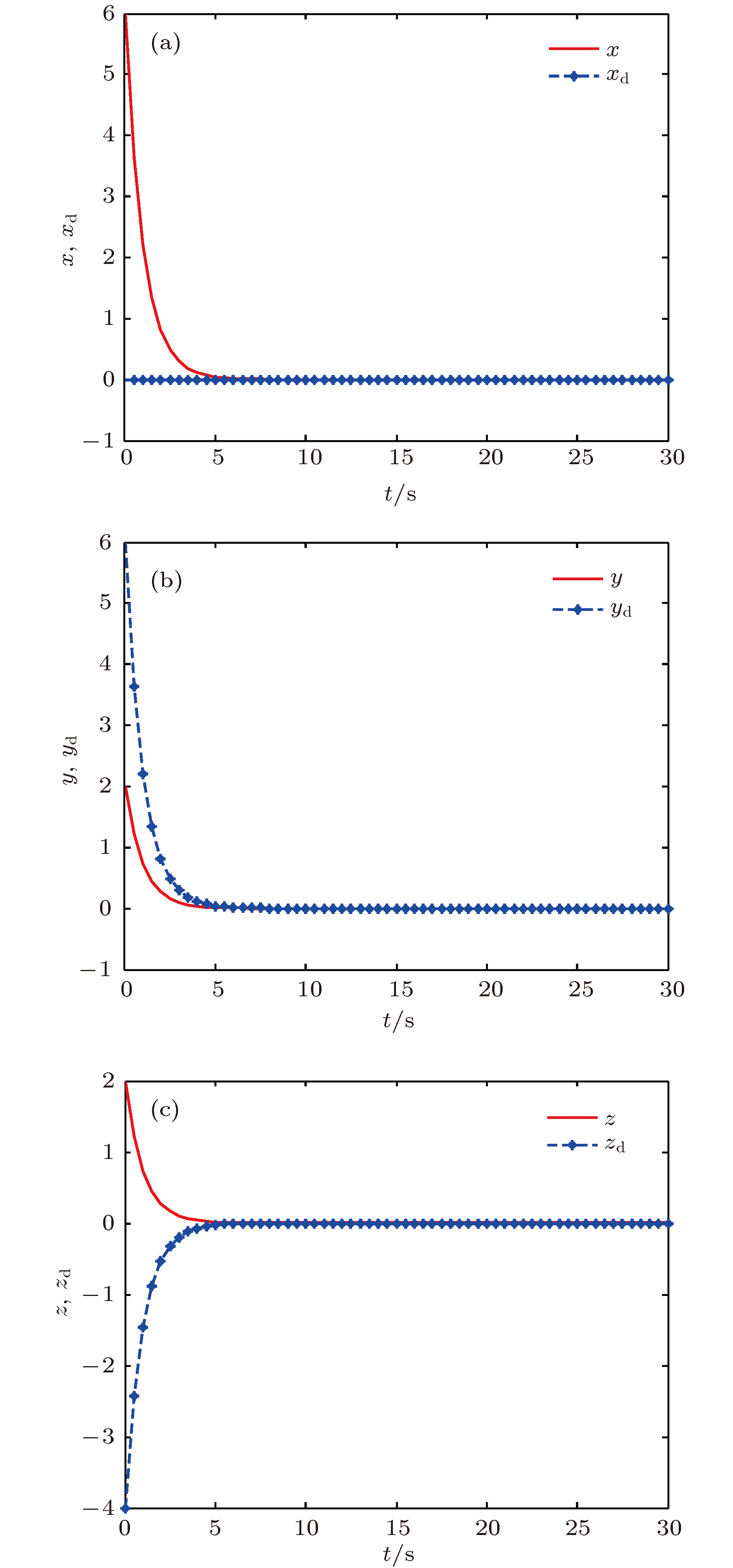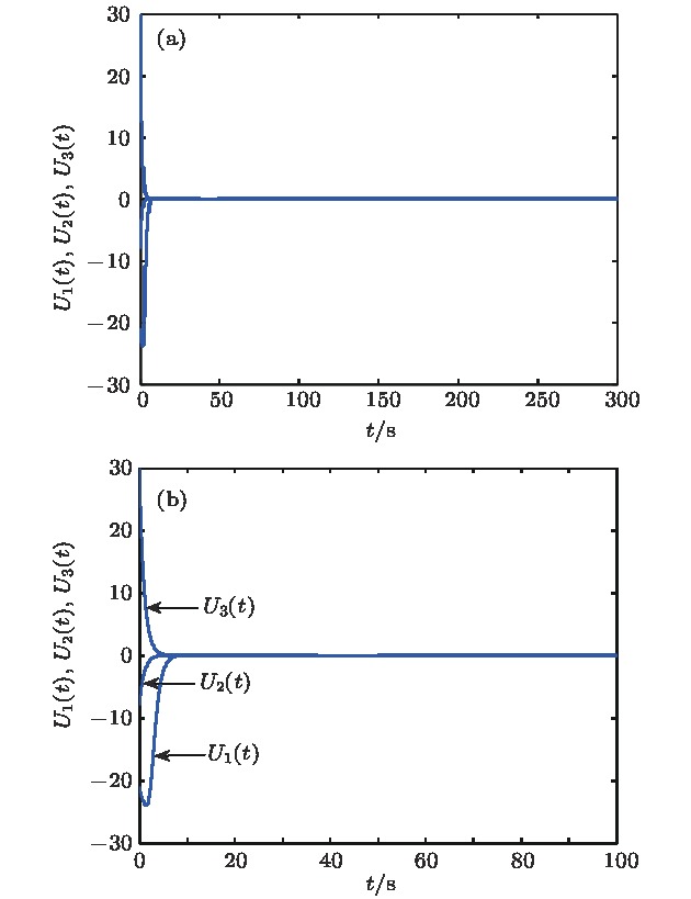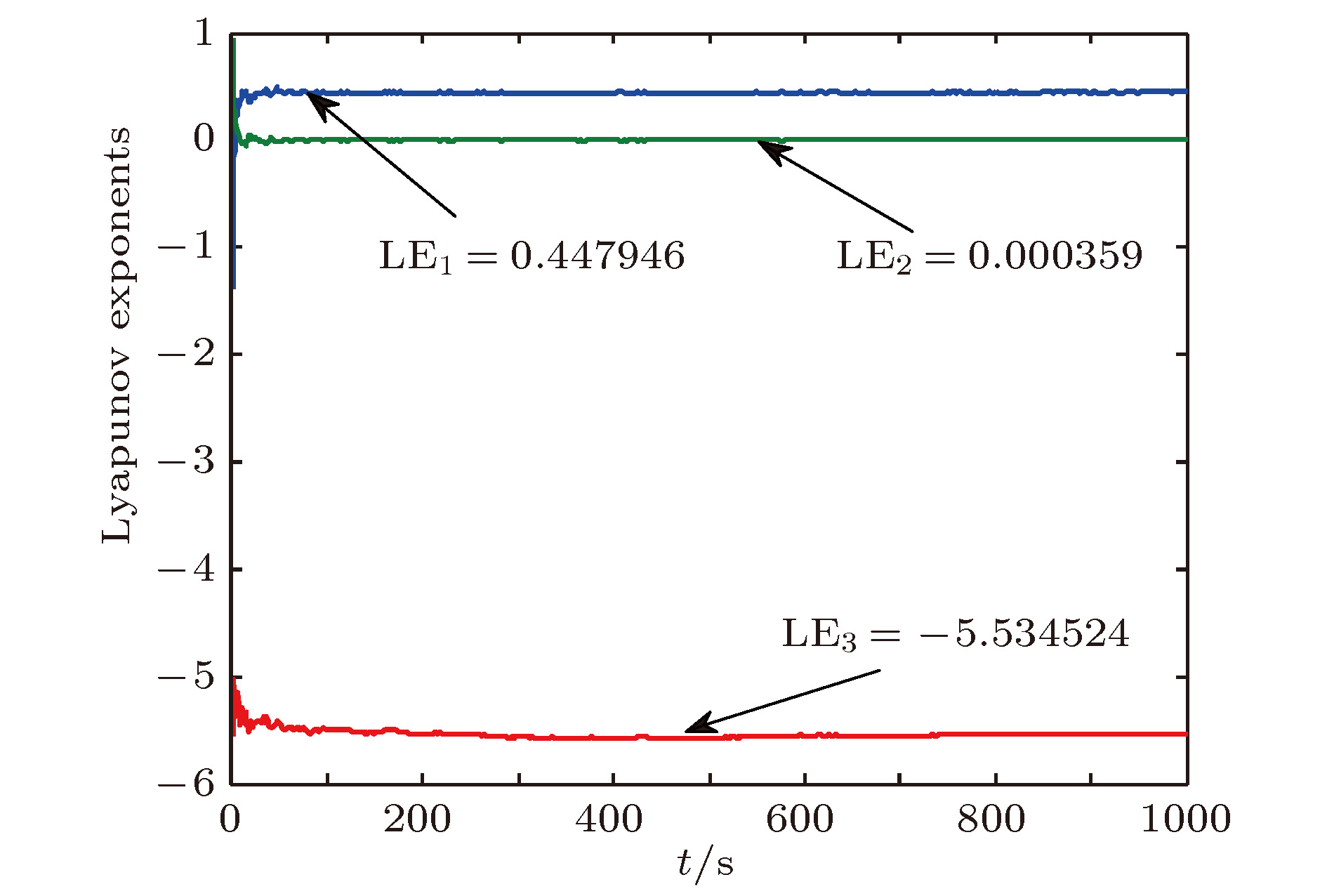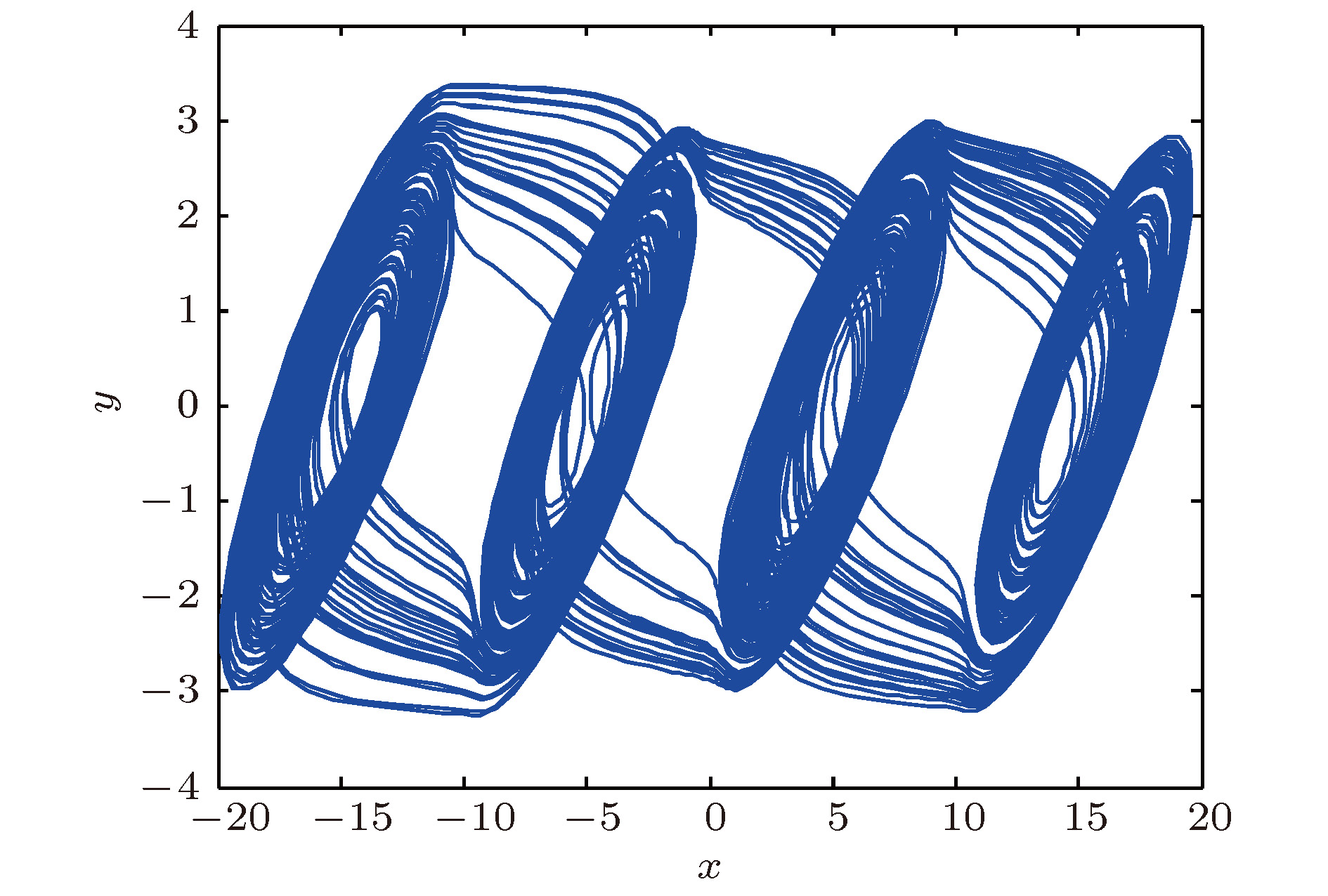 平衡点 特征值 平衡点的类型 ${Q_0}\left( {0,0,0} \right)$ $67.2809$,$ - 0.5730 \pm {\rm{i3}}{\rm{.9544}}$ Ⅰ ${Q_{1,2}}\left( { \pm 10,0,0} \right)$ $67.2809$,$ - 0.5730 \pm {\rm{i3}}{\rm{.9544}}$ Ⅰ ${Q_{3,4}}\left( { \pm 20,0,0} \right)$ $67.2809$,$ - 0.5730 \pm {\rm{i3}}{\rm{.9544}}$ Ⅰ ${Q_{5,6}}\left( { \pm 30,0,0} \right)$ $67.2809$,$ - 0.5730 \pm {\rm{i3}}{\rm{.9544}}$ Ⅰ ${Q_{7,8}}\left( { \pm 40,0,0} \right)$ $67.2809$,$ - 0.5730 \pm {\rm{i3}}{\rm{.9544}}$ Ⅰ ${Q_{9,10}}\left( { \pm 50,0,0} \right)$ $67.2809$,$ - 0.5730 \pm {\rm{i3}}{\rm{.9544}}$ Ⅰ ${Q_{11,12}}\left( { \pm 5,0,0} \right)$ $ - 6.2777$,$0.1389 \pm {\rm{i3}}{\rm{.5671}}$ Ⅱ ${Q_{13,14}}\left( { \pm 15,0,0} \right)$ $ - 6.2777$,$0.1389 \pm {\rm{i3}}{\rm{.5671}}$ Ⅱ ${Q_{15,16}}\left( { \pm 25,0,0} \right)$ $ - 6.2777$,$0.1389 \pm {\rm{i3}}{\rm{.5671}}$ Ⅱ ${Q_{17,18}}\left( { \pm 35,0,0} \right)$ $ - 6.2777$,$0.1389 \pm {\rm{i3}}{\rm{.5671}}$ Ⅱ ${Q_{19,20}}\left( { \pm 45,0,0} \right)$ $ - 6.2777$,$0.1389 \pm {\rm{i3}}{\rm{.5671}}$ Ⅱ ${Q_{2{\rm{1}},2{\rm{2}}}}\left( { \pm 55,0,0} \right)$ $ - 6.2777$,$0.1389 \pm {\rm{i3}}{\rm{.5671}}$ Ⅱ -