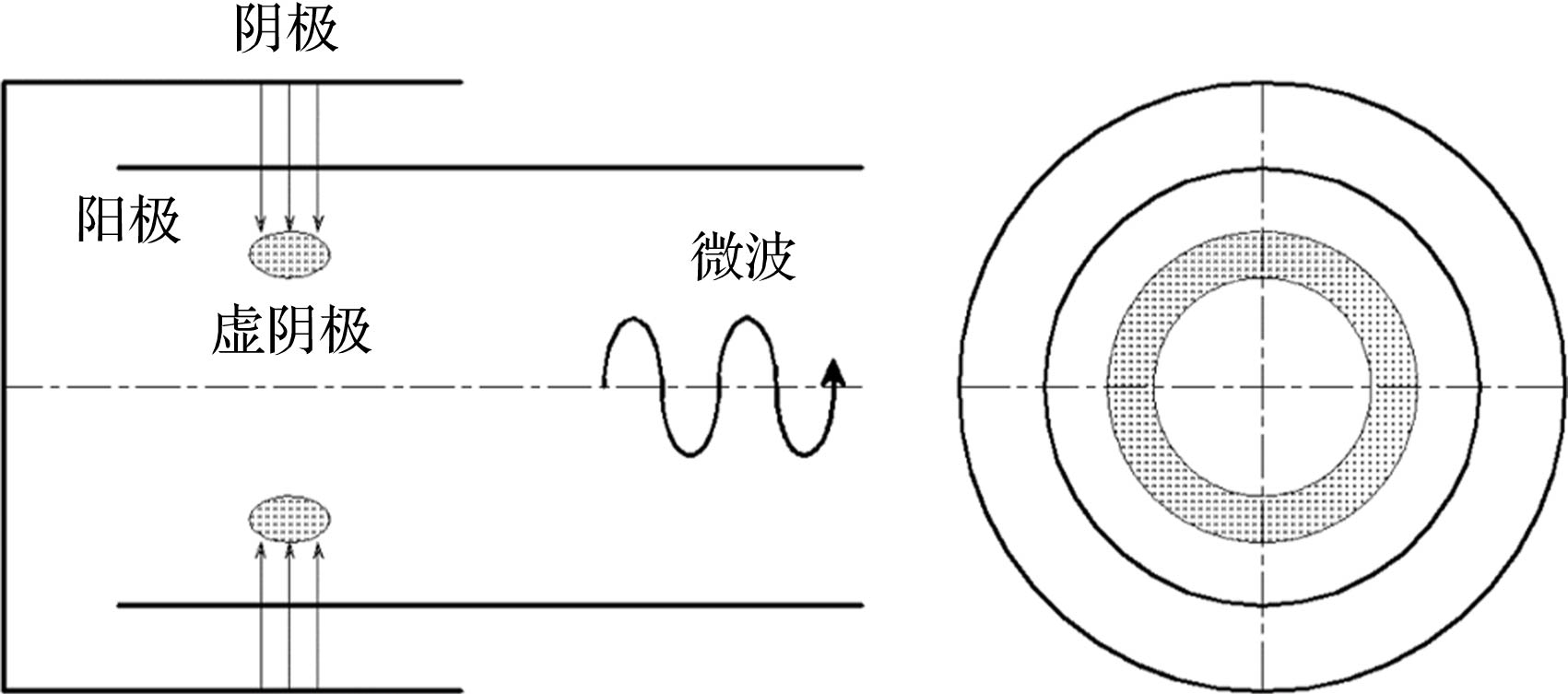 11mode. When the transmission of the anode mesh is low, the beam intensity of the reflected electron beam can be weakened due to the absorption of the metal mesh, and the TE