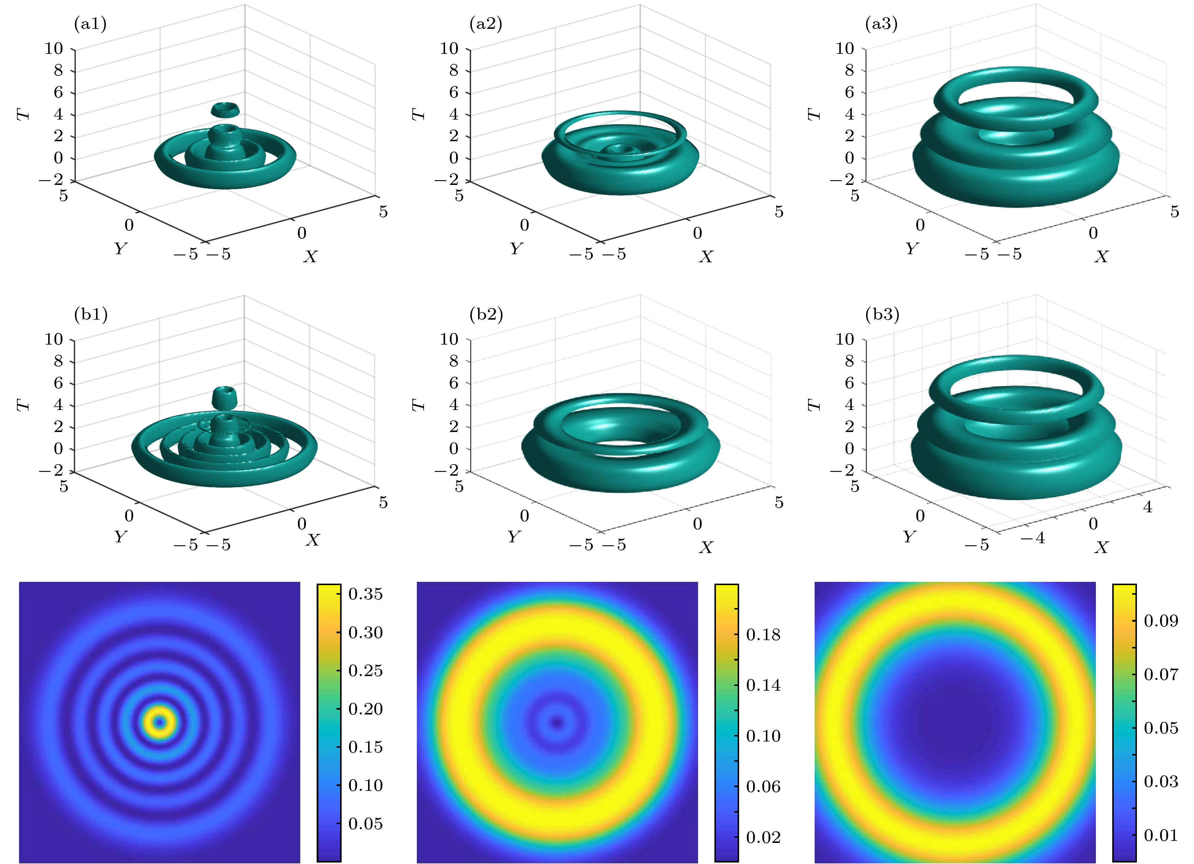 Based on the (3+1)-dimensional free-space Schrödinger equation, the analytical solutions to the equation for the propagating properties of two three-dimensional collinear self-decelerating Airy-elegant-Laguerre-Gaussian(AELG) light beams in free space are investigated. The different mode numbers, the mode index for each of the collinear beams, weight factor of combined beam, and initial phase difference will affect the profiles of the wave packets, and thus giving the method to control the spatiotemporal profiles during propagation. The spatiotemporal profiles will rotate if none of the mode parameters are equal to zero, and there are vortices in the center of the phase distribution curve. If the mode parameters are positive numbers, the profiles of the beams will rotate in a helical clockwise direction. Otherwise, if the mode parameters are negative numbers,they will rotate in a helical anticlockwise direction during propagation. The wave packets will also rotate when the relative phase is varied. However, the rotation principles of these two rotation characteristics are completely different. The spatiotemporal hollow self-decelerating AELG wave packets can be attained if the mode numbers of the collinear AiELG wave packets are the same. Multi-ring structure evolves into single-ring structure along radial direction with their propagation distance increasing during propagation, which makes the hollow part expand continuously.