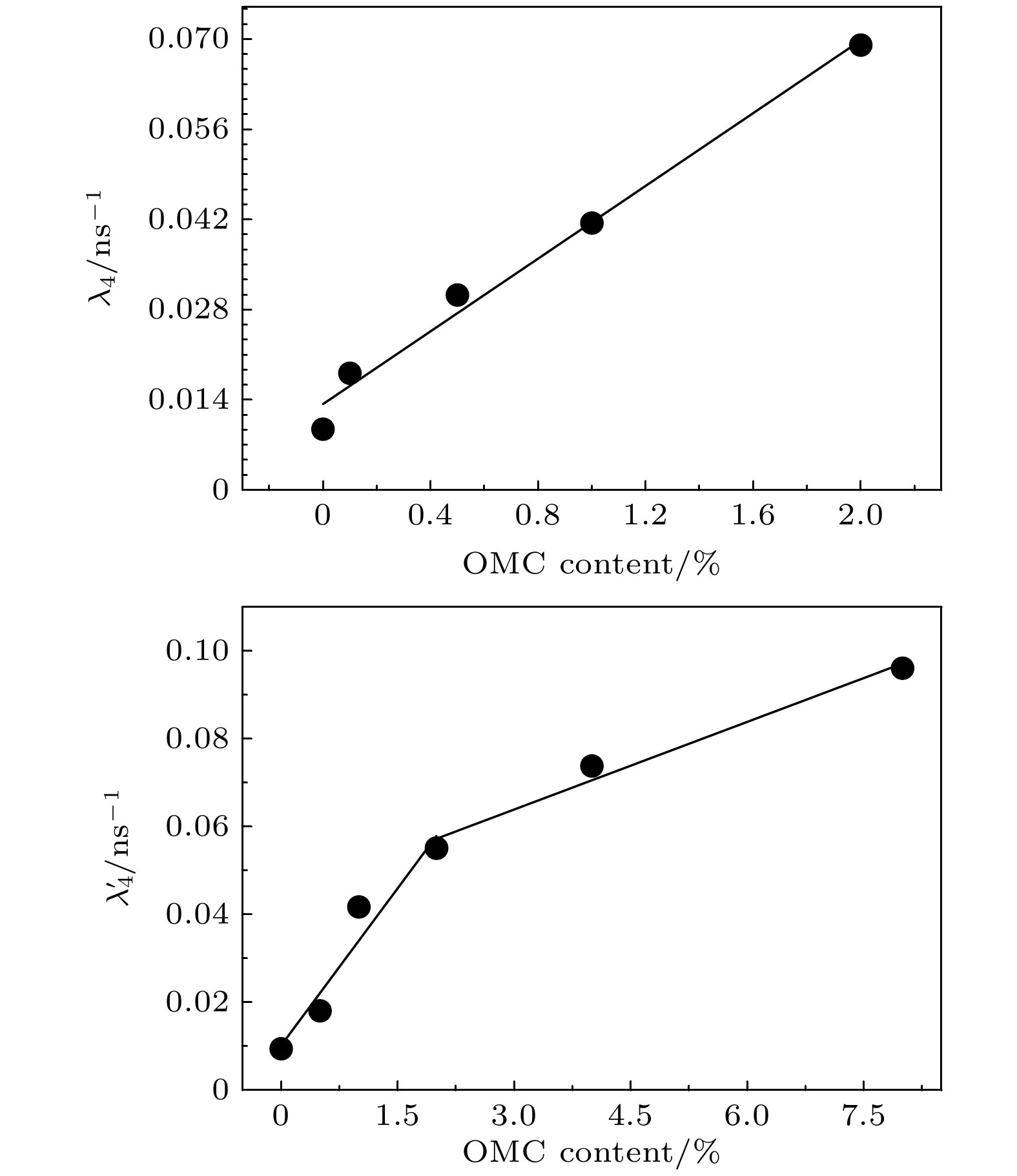of these three compounds decrease. The annihilation rate of o-Ps lifetime varying with OMC and CuO content can be better fitted by one or two straight lines, The values of reaction rate constant K in OMC/SBA-15, OMC@SBA-15 and CuO@SBA-15 are