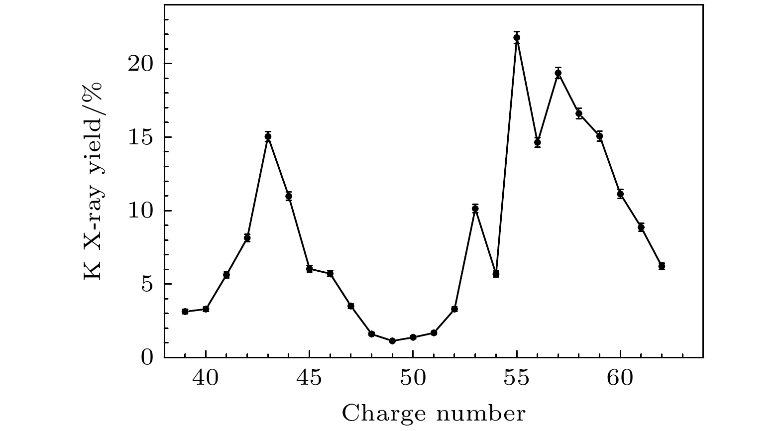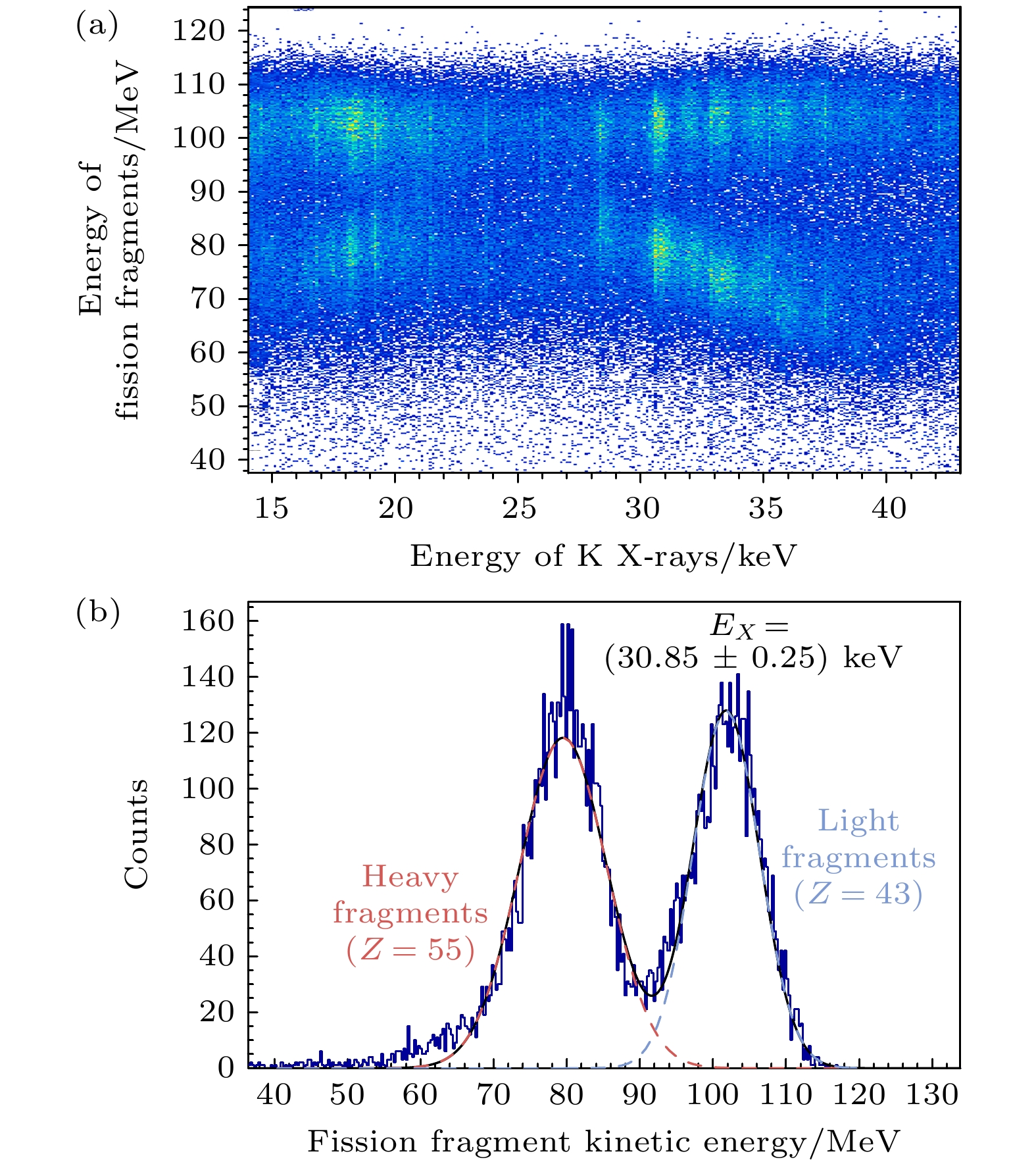 \begin{document}$(\langle \rm TKE\rangle) $\end{document}, and its dispersion (\begin{document}$ {\sigma }_{{\mathrm{T}}{\mathrm{K}}{\mathrm{E}}} $\end{document}) of fission fragments are determined each as a function of nuclear charge. The kinetic energy distribution of light fragments shows a pronounced odd-even effect, with even-Z elements exhibiting kinetic energy enhanced by about 0.48 MeV compared with odd-Z fragments. The peak of the \begin{document}$(\langle\rm TKE\rangle) $\end{document} distribution is nearly Z = 52–53, while the minimum of the \begin{document}$ {\sigma }_{{\mathrm{T}}{\mathrm{K}}{\mathrm{E}}} $\end{document} appears near Z = 56, indicating the significant influence of deformed shells in the highly asymmetric fission region. The post-neutron kinetic energy distribution of fission fragments from 252Cf (sf) is calculated by using the GEF model and CGMF model. The CGMF model effectively reproduces the overall trend of kinetic energy as a function of charge number, while the results of the GEF calculation are systematically higher than the experimental values. Nonetheless, these two phenomenological models make it difficult to quantitatively describe the kinetic energy distribution of fission fragments accurately. In this study, the insights into K X-ray emissions and kinetic energy-nuclear charge relationships provide valuable reference data for independently measuring the fission yields and verifying the theoretical models of fission."> K X-ray emission and kinetic energy-nuclear charge relationship of <sup>252</sup>Cf spontaneous fission - 必威体育下载