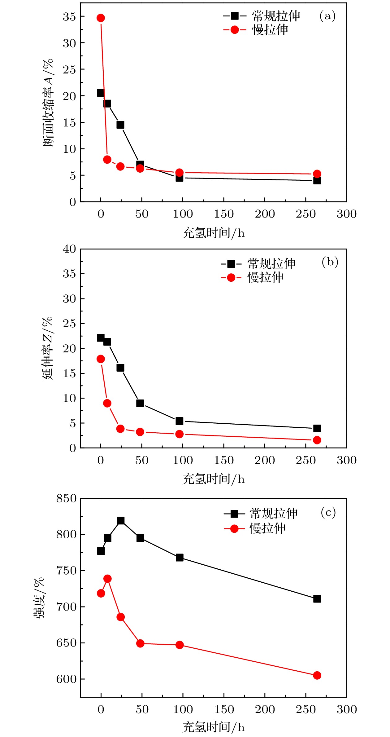 The Ti-2.5Al-2Zr-1Fe used as hull structural material, is susceptible to hydrogen embrittlement induced by corrosion and hydrogen evolution in marine environments. Considering the long-term service of ships, the hydrogen embrittlement behavior under slow strain rate is crucial for evaluating the alloy’s service performance and ensuring long-term ship structural safety. In order to investigate the hydrogen embrittlement mechanism of Ti-2.5Al-2Zr-1Fe alloy under slow strain rate conditions, this study combines slow tension and constant displacement loading techniques to systematically evaluate the attenuation of mechanical properties and the dynamic changes in hydrogen embrittlement sensitivity of hydrogen-containing Ti-2.5Al-2Zr-1Fe alloy. Employing scanning electron microscopy (SEM), we thoroughly analyze the microstructural features of fracture surfaces. Meanwhile, the close correlation between the brittle zone at the fracture site and the macroscopic distribution of hydrogen atoms is elucidated by using secondary ion mass spectrometry (SIMS). Additionally, theoretical analysis based on diffusion equations reveals a notable increase in hydrogen diffusion distance within the Ti-2.5Al-2Zr-1Fe alloy as hydrogen charging time increases. Further, using the dislocation-hydrogen interaction model, we derive a critical strain rate threshold $ {\varepsilon _0} = {{\left( {30RT} \right)} {/ } {\left( {\rho DE} \right)}} $ for dislocation-mediated hydrogen transport in titanium alloys. When the externally applied strain rate ε falls below this threshold, dislocations efficiently capture and transport hydrogen atoms, enhancing hydrogen diffusion depth and significantly augmenting the alloy’s hydrogen embrittlement sensitivity, thereby accelerating material embrittlement. The Vickers-hardness (HV) test further elucidates the dual nature of hydrogen’s influence on titanium alloy properties: although moderate hydrogen content slightly enhances surface hardness, exceeding a specific threshold leads to a major negative influence on plasticity, far exceeding the benefits of surface hardening, resulting in a substantial decline in overall mechanical performance. To comprehensively decipher the hydrogen embrittlement mechanism of Ti-2.5Al-2Zr-1Fe alloy, transmission electron microscopy (TEM) is employed to analyze the phase composition in regions of high hydrogen concentration, crack tips, and their vicinities. The analysis results indicate that no direct precipitation of hydrides is observed; instead, hydrogen atoms preferentially accumulate in the β-phase, prompting microcrack propagation along β-phase boundaries. According to the aforementioned experimental data and microstructural analysis, we propose that the hydrogen embrittlement mechanism in Ti-2.5Al-2Zr-1Fe alloy is primarily governed by the HEDE mechanism. Furthermore, when the strain rate falls below ε0, it synergizes with the dislocation-mediated hydrogen transport mechanism, vastly expanding the influence scope of the HEDE mechanism and exacerbating the alloy’s hydrogen embrittlement sensitivity.
