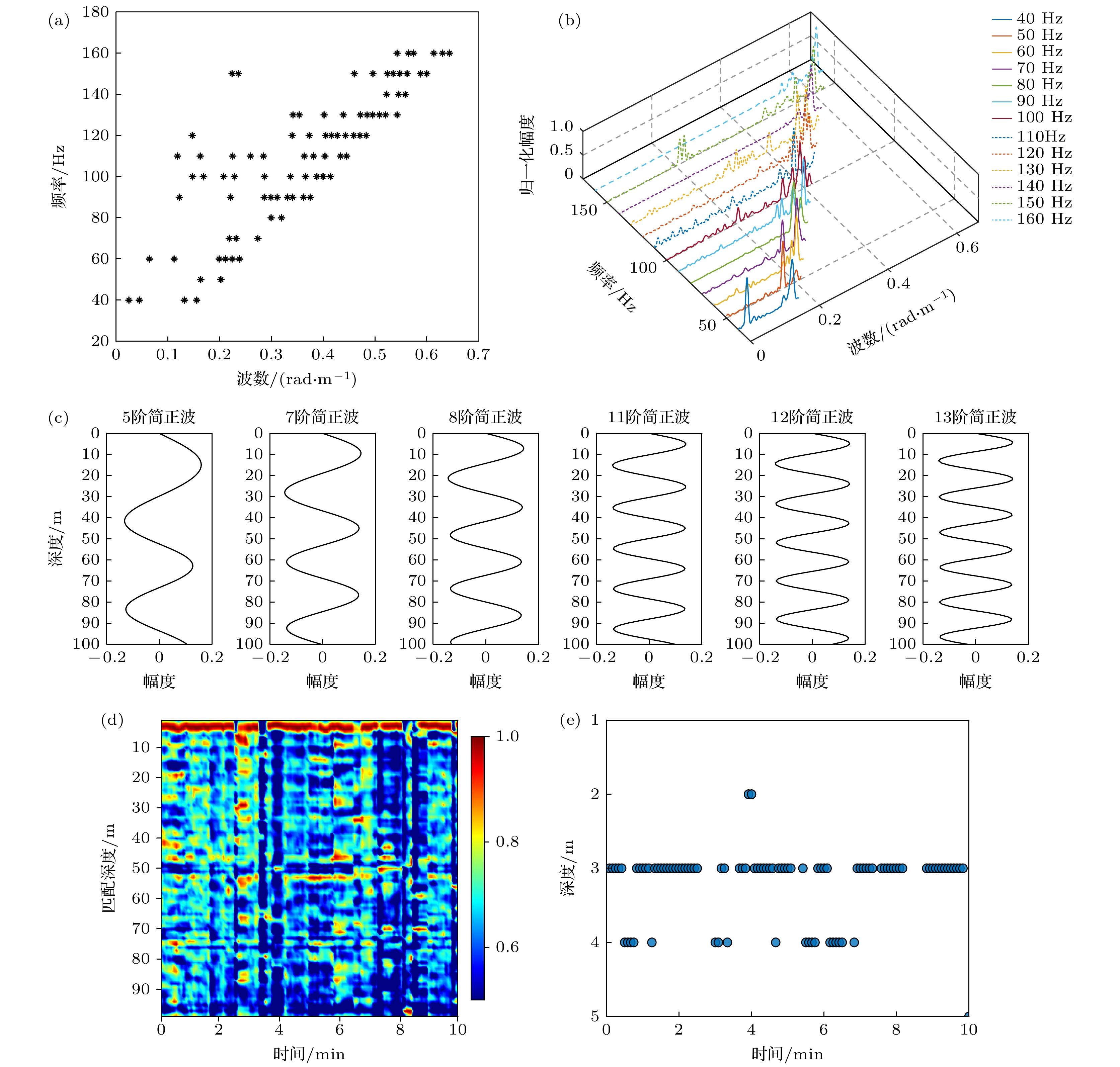 A novel target depth estimation method based on normal mode intensity match is proposed for shallow water environment by using horizontal array to overcome the performance degradation observed in traditional approaches under the condition that seabed parameters are not matched. Firstly, horizontal wavenumbers and normal mode intensities are estimated through wavenumber domain beamforming. Secondly, modal function of normal mode inversion is performed by solving the modal function characteristic equation by using the finite difference method. Thirdly, the match degree between inverted and estimated normal mode intensities is evaluated to estimate target depth. The numerical simulation results show that the proposed method can accurately estimate the target depth in shallow water scenarios without knowing the seabed parameters. Furthermore, the performance of the method is analyzed under different conditions including different seabed parameters, array apertures and source frequencies. The results reveal three conclusions: 1) the mismatch of seabed parameters has no influence on the method; 2) the effective performance of full depth source estimation requires no less than 128 array elements, a frequency band range of 50–150 Hz, and the signal-to-noise radio of the element on a horizontal line array exceeding –10 dB; 3) the method has robust performance against sound speed profile mismatch. Finally, the feasibility of the proposed method is validated by the experimental data received by a horizontally towing 77-element array during the shallow-water sea trial in the South China Sea.