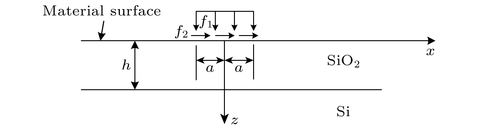 The rapid advancement of micro-nano acoustic devices has led their core acoustic structures to shrink to the nanoscale level. The influence of surface effects on the mechanical properties of thin-film materials on a nanoscale becomes increasingly prominent, and the classical elasticity theory struggles to accurately describe their mechanical behavior on this scale. In this paper, a mechanical model of nano-SiO2/Si heterostructured thin films that considers surface effects is developed using surface elasticity theory. This model incorporates the key parameter of surface energy density. In this paper, a mechanical model of heterostructured nano-SiO2/Si films is developed using the surface elasticity theory, incorporating surface effects through the introduction of surface energy density as a key parameter. Using the Fourier integral transform method, analytical expressions for stress and displacement fields under surface traction are systematically derived, revealing the influence of surface effects on the mechanical behavior of materials on a nanoscale by comparing the analytical solution with that from the classical theory. The results show that when the surface stress distribution deviates by 3% from that predicted by the classical theory, the microscopic properties of the material become significant, and the surface effect cannot be ignored in a range of five times the width of the excitation region 2a. As the size of the excitation region decreases, the surface effect is significantly increases and the stress distribution within the excitation region and near the boundary becomes more concentrated than the counterparts in the classical theory. The shear stress is no longer zero, and an extreme value is observed at the boundary, which is significantly different from that predicted by the classical theory of elasticity. The transverse and longitudinal displacements are reduced compared with those from the classical theory, and the surface stiffness and deformation resistance of the material are greatly enhanced. Significant surface effects occur on nano-heterostructure thin films, leading to large deviations in stress and displacement distributions from the results of elasticity theory. Therefore, the classical elasticity assumptions are no longer applicable in the corresponding nanoscale range. The results demonstrate that the propagation of ultrahigh-frequency nano- length acoustic waves in nanoscale solid film surfaces is significantly affected by the scale effect. The failure of the classical elastic wave theory on a nanoscale is of great value for the study of nanoscale acoustic theory. Furthermore, these findings provide a theoretical basis for the subsequent development of more precise models of interfacial effects and a more detailed investigation of the influence of the film-substrate modulus ratio.