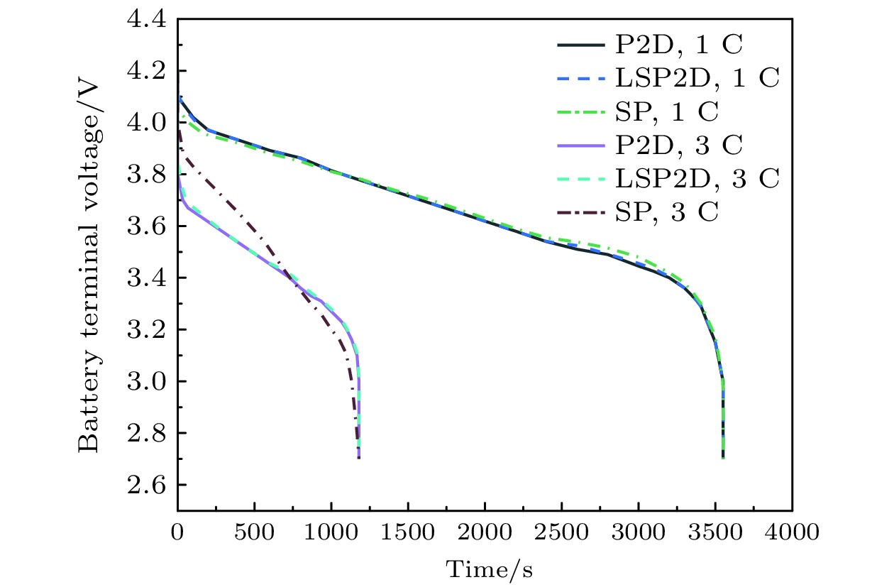 假设3: 液相扩散过程用体积平均法近似精度随着Padé近似的阶数增长 近似阶数增大, 其所需的变量也会相应增加, 计算难度增大 正负极为LiyMn2O4/LixC6的锂离子电池单元 [46,48] LSP2D