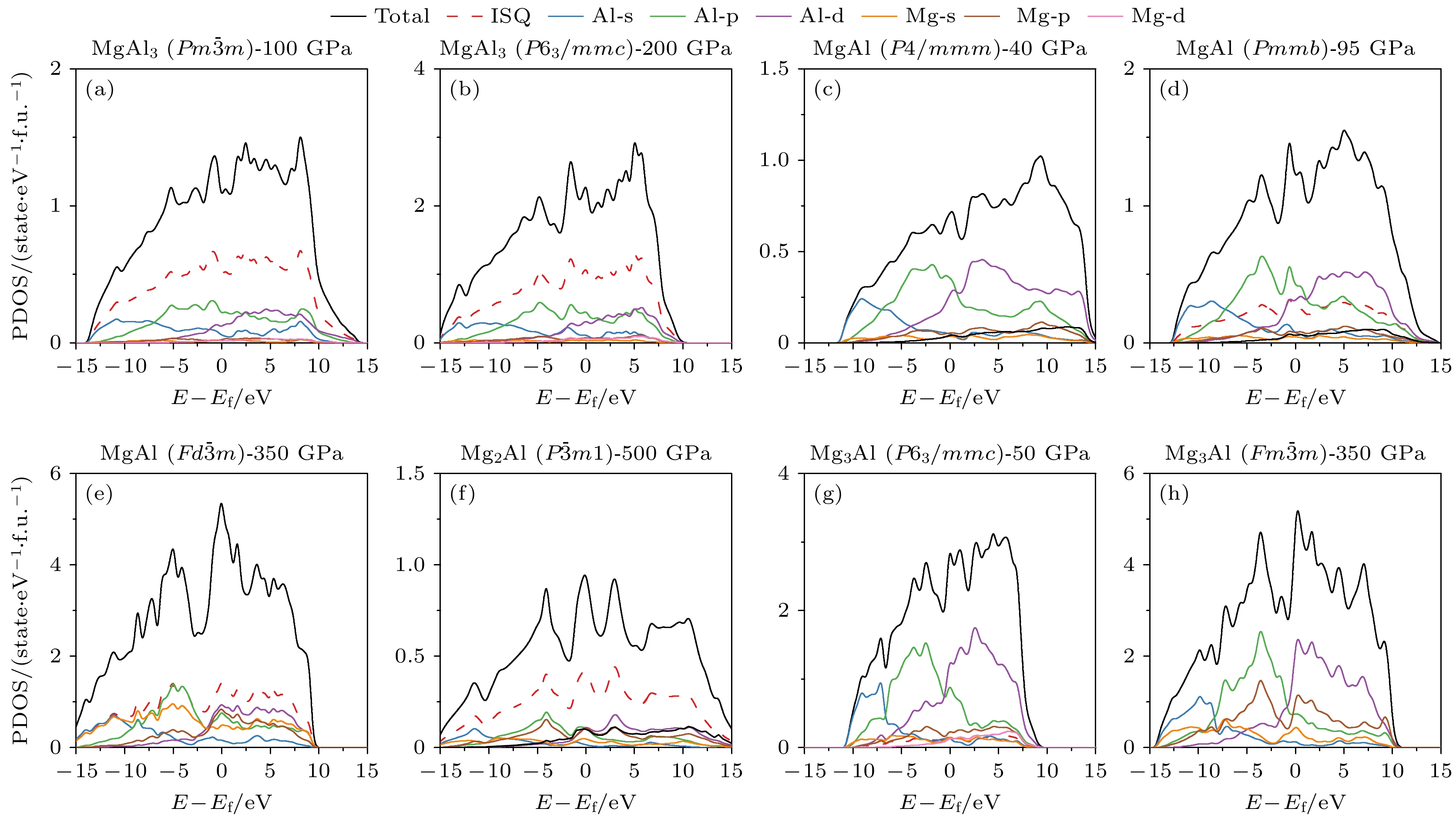 Phase Mg/atom Al/atom ISQ/(e·site–1) ISQ/(e·cell–1) Pm${\bar {3}} $m MgAl3 (100 GPa) +1.48 +1.07 0.39 4.68 P63/mmc MgAl3 (200 GPa) +1.45 +1.65 ISQ1: 1.69; ISQ2: 1.57;